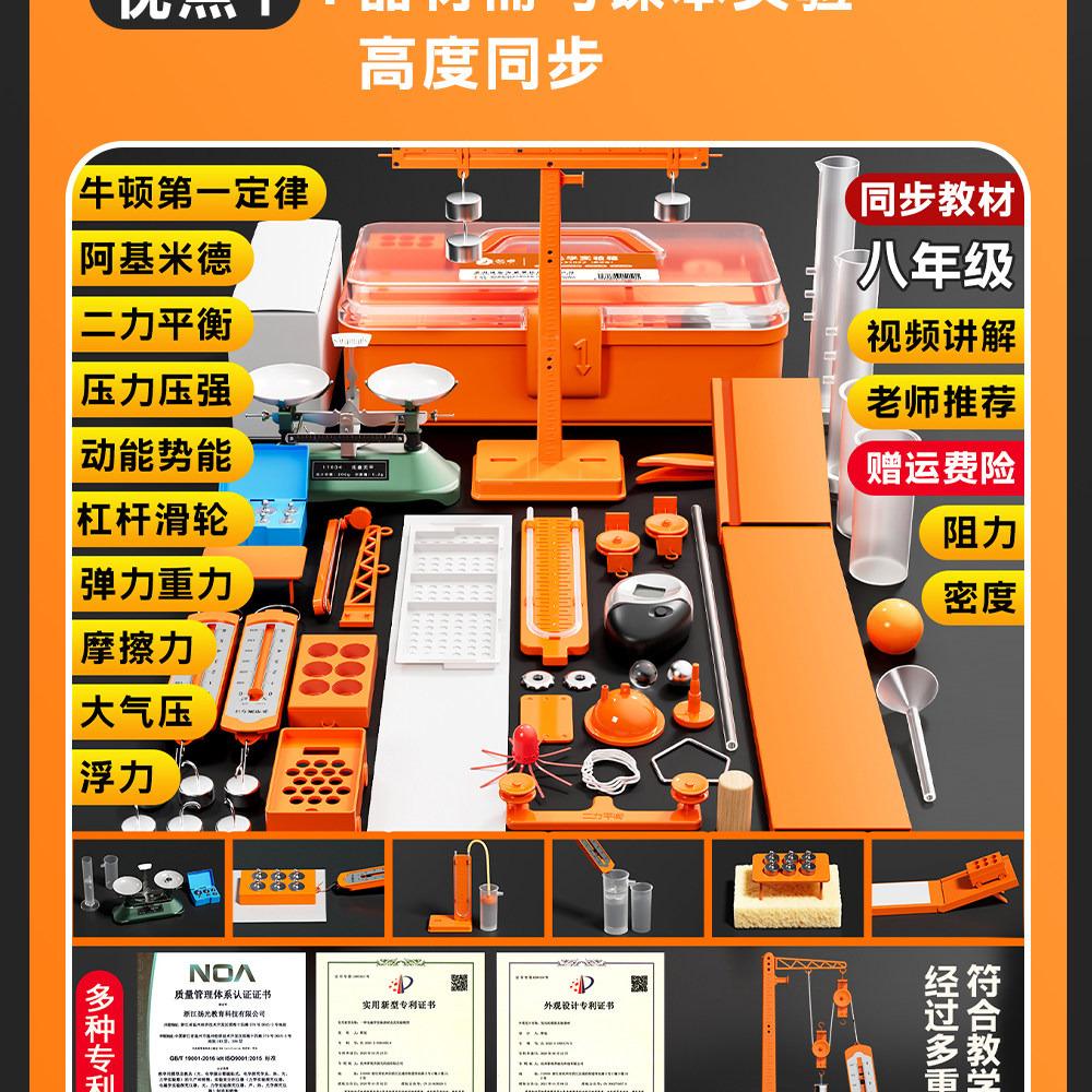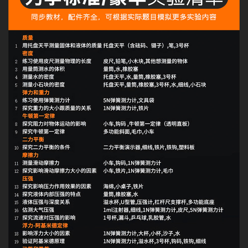 Complete Set of Junior High School Physics and Mechanics Experiment Equipment, Second Semester, Eighth Grade, People's Education Press Edition, Friction, Newton's First Law, Pressure, Lever, Balance, Pulley, Instrument Tool Set, Experiment Box