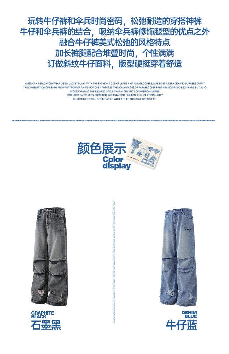 Bjhg Reckless American-Style Straight-Leg Vintage Jeans for Men, Autumn and Winter Street Style, Cool Workwear Paratrooper Pants