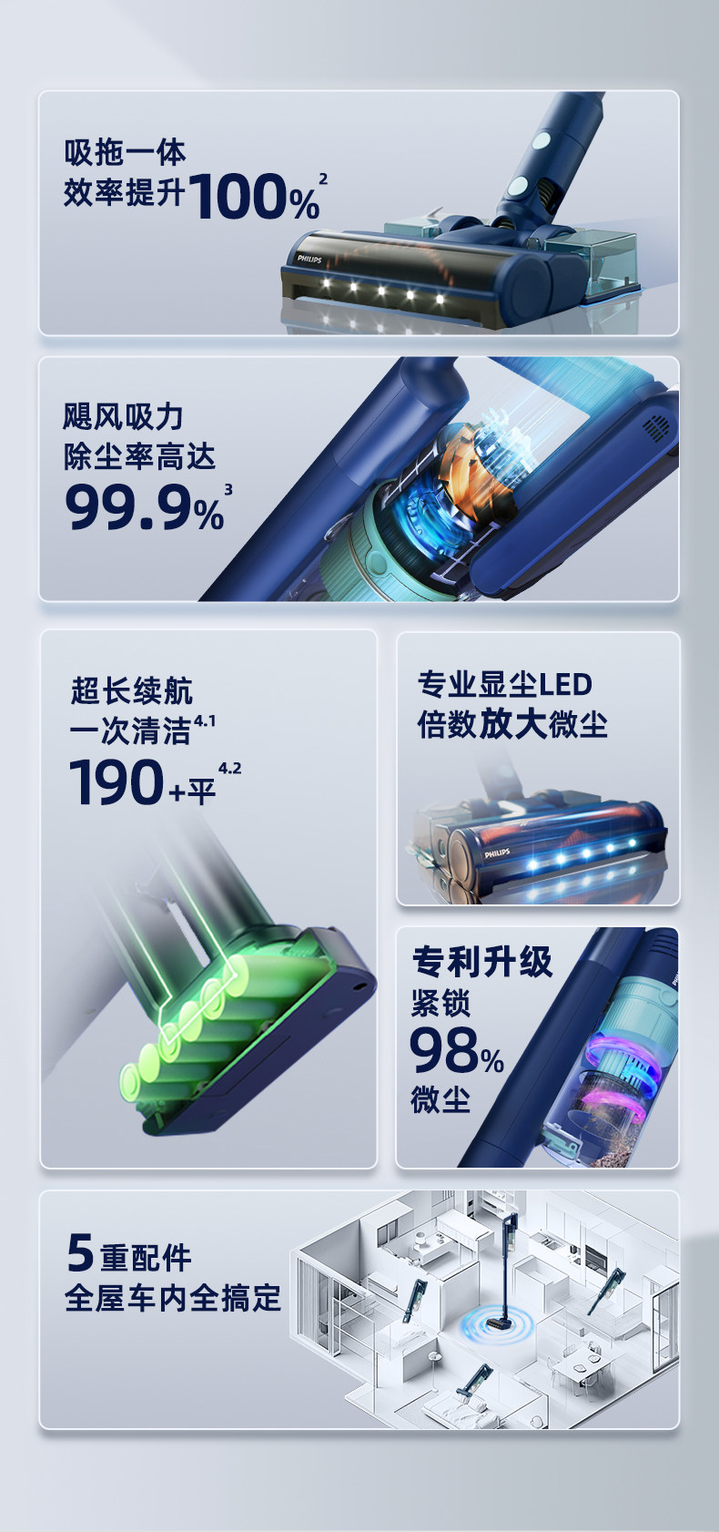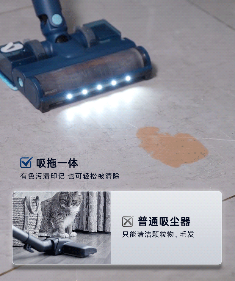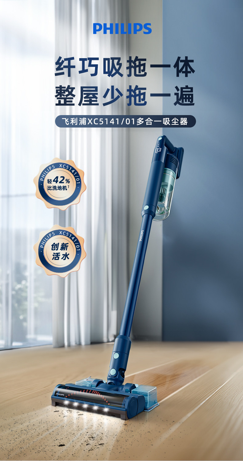 Philips Vacuum Cleaner for Home Use, Large Suction Power, All-In-One Suction and Mopping, Small Wireless Handheld Vacuum Cleaner for Initial Cleaning 5141