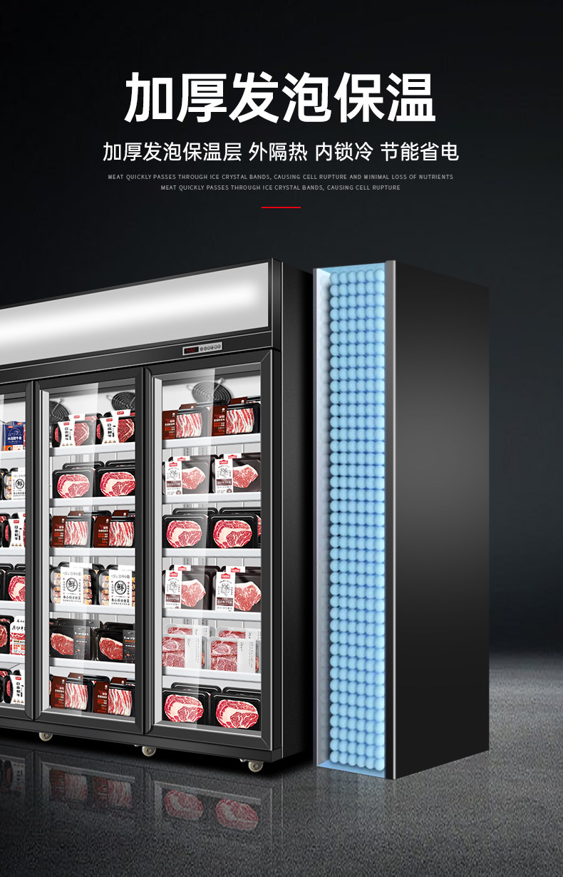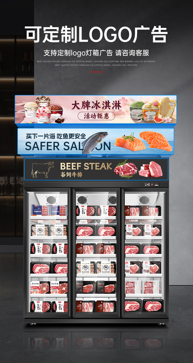 Ice-Casting Freezer Display Cabinet Commercial Quick-Freezing Cabinet for Meat, Steak, Frozen Products, Ice Cream, Durian, Low-Temperature Vertical Freezer Refrigerator