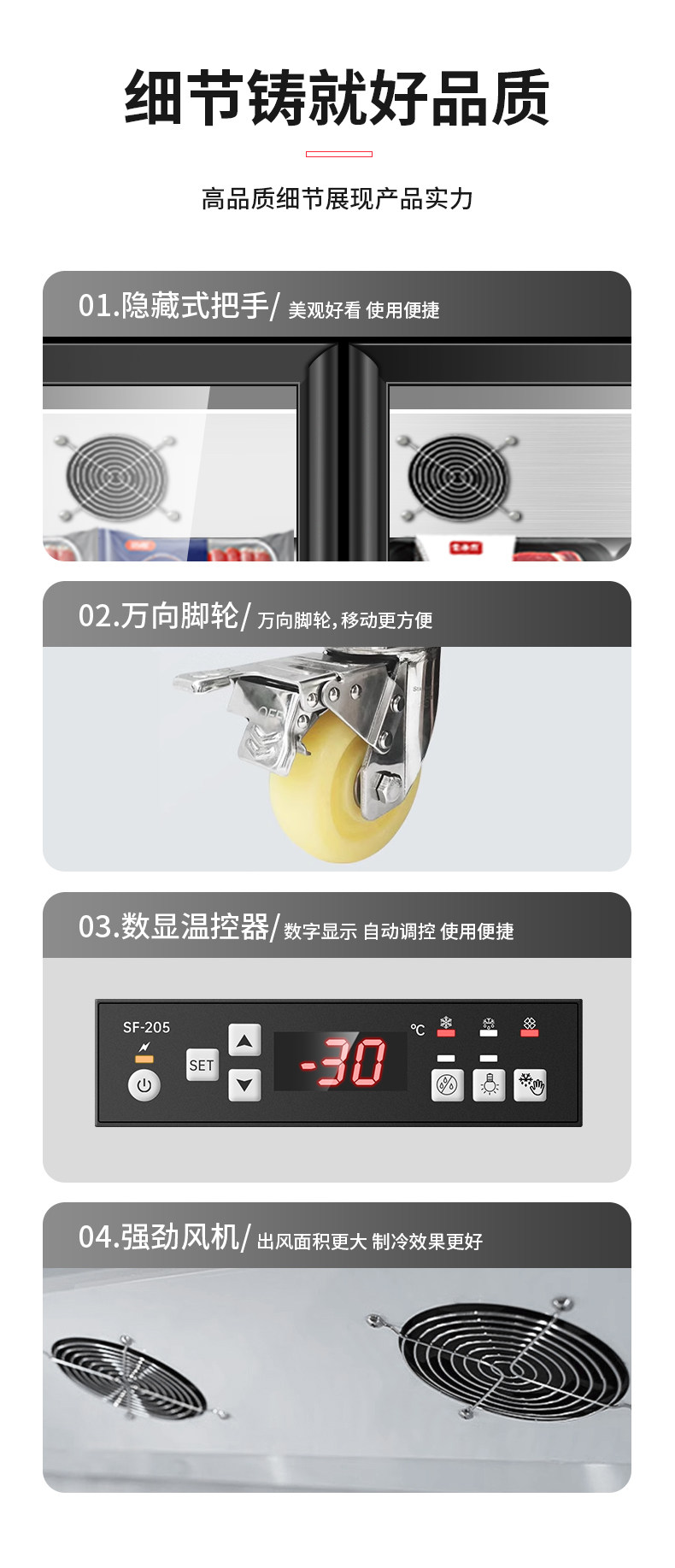 | Color Classification | 【-5℃~5℃Single-Door, Top-Mounted Unit with Defogging Function, 620*700*2060, Featuring Tri-Color Lighting,【-5 ℃ ~5 ℃ Double Door Unit with Defogging Function, 1240*700*2060, Tri-Color Lighting,【-5℃~5℃Three-Door Top-Mounted Unit with Defogging Function, 1860*700*2060, Featuring Tri-Color Lighting,【-5℃~5℃Four-Door Unit with De-Fogging Function, 2480*700*2060, Featuring Tri-Color Lighting,Single Door Freezer [-22~0℃Black Unit with Defogging Function, 620*700*2060, Tri-Color Lighting,Double Door Freezer [-22~0℃Black Unit with Defogging Function, 1240*700*2060, Tri-Color Lighting,Three-Door Freezer [-22~0℃Black Unit with Defogging Function, 1860*700*2060, Tri-Color Lighting,Four-Door Freezer [-22~0℃Black Unit with Defogging Function, 2480*700*2060, Tri-Color Lighting,✅(Upgrade) Single Door Quick Freezing [-30~0℃Black Unit with Defogging Function, 620*700*2060, Tri-Color Lighting,✅(Upgrade) Double Door Quick Freezer [-30~0℃Black Unit with Defogging Function, 1240*700*2060, Tri-Color Lighting,✅(Upgrade) Three-Door Quick-Freezing Cabinet [-30~0℃Black Unit with Defogging Function, 1860*700*2060, Tri-Color Lighting,✅(Upgrade) Four-Door Quick-Freezing Cabinet [-30~0℃Black Unit with Defogging Function, 2480*700*2060, Tri-Color Lighting,Upgrade and Lock [-22~0℃Single Door Top-Mounted De-Fogging Unit with Stainless Steel Shelving, 620*700*2060, Tri-Color Lighting (Ships in 10 Days),Upgrade and Lock [-22~0℃Double Door Unit with Defogging Function [Stainless Steel Shelves] 1240*700*2060 Three-Color Lighting (Ships in 10 Days),Upgrade and Lock [-22~0℃Three-Door Cabinet with De-Fogging Function, Stainless Steel Shelving, 1860*700*2060, Tri-Color Lighting (Ships in 10 Days).,Upgrade and Lock [-22~0℃Four-Door Cabinet Unit with De-Fogging Function, Featuring a Stainless Steel Shelving Unit. Dimensions: 2480*700*2060. Includes Tri-Color Lighting. Ships in 10 Days,Upgrade and Lock [-30~0℃Single Door Top-Mounted De-Fogging Unit with Stainless Steel Shelving, 620*700*2060, Tri-Color Lighting (Ships in 10 Days),Upgrade and Lock [-30~0℃Double Door Unit with Defogging Function [Stainless Steel Shelves] 1240*700*2060 Three-Color Lighting (Ships in 10 Days),Upgrade and Lock [-30~0℃Three-Door Cabinet with De-Fogging Function, Stainless Steel Shelving, 1860*700*2060, Tri-Color Lighting (Ships in 10 Days).,Upgrade and Lock [-30~0℃Four-Door Cabinet Unit with De-Fogging Function, Featuring a Stainless Steel Shelving Unit. Dimensions: 2480*700*2060. Includes Tri-Color Lighting. Ships in 10 Days,Single Door Freezer [-22~0 ℃ White Unit with De-Fogging Function, 620*700*2060, Featuring Three-Color Lighting.,Double Door Freezer [-22~0℃White Unit with Defogging Function, 1240*700*2060, Tri-Color Lighting,Three-Door Freezer [-22~0℃White Unit with Defogging Function, 1860*700*2060, Tri-Color Lighting,Four-Door Freezer [-22~0℃White Unit with Defogging Function, 2480*700*2060, Tri-Color Lighting,✅(Upgrade) Single Door Quick Freezer [-30~0℃White Unit with De-Fogging Function, 620*700*2060, Featuring Three-Color Lighting,✅(Upgrade) Double Door Quick Freezer [-30~0℃White Unit with Defogging Function, 1240*700*2060, Tri-Color Lighting,✅(Upgrade) Three-Door Quick-Freezing Cabinet [-30~0℃White Unit with Defogging Function, 1860*700*2060, Tri-Color Lighting,✅(Upgrade) Four-Door Quick-Freezing Cabinet [-30~0℃White Unit with Defogging Function, 2480*700*2060, Tri-Color Lighting,Single Door Freezer [-22~0℃Black Unit Bottom Defogging Model 620*700*2060 with Tri-Color Lighting,Double Door Freezer [-22~0℃Black Unit Bottom Defogging Model 1240*700*2060 with Tri-Color Lighting,Three-Door Freezer [-22~0℃Black Unit Bottom Defogging Model 1860*700*2060 with Tri-Color Lighting,Four-Door Freezer [-22~0℃Black Unit Bottom Defogging Model 2480*700*2060 with Tri-Color Lighting,✅(Upgrade) Single Door Quick Freezer [-30~0℃Black Unit Bottom Defogging Model 620*700*2060 with Tri-Color Lighting,✅(Upgrade) Double Door Quick Freezer [-30~0℃Black Unit Bottom Defogging Model 1240*700*2060 with Tri-Color Lighting,✅(Upgrade) Three-Door Quick-Freezing Cabinet [-30~0℃Black Unit Bottom Defogging Model 1860*700*2060 with Tri-Color Lighting,✅(Upgrade) Four-Door Quick-Freezing Cabinet [-30~0℃Black Unit Bottom Defogging Model 2480*700*2060 with Tri-Color Lighting,Single Door Freezer [-22~0℃White Unit Bottom Defogging Model 620*700*2300 with Tri-Color Lighting,Double Door Freezer [-22~0℃White Unit Bottom Defogging Model 1240*700*2300 with Tri-Color Lighting,Three-Door Freezer [-22~0℃White Unit Bottom Defogging Model 1860*700*2300 with Tri-Color Lighting,Four-Door Freezer [-22~0℃White Unit Bottom Defogging Model 2480*700*2300 with Tri-Color Lighting,✅(Upgrade) Single Door Quick Freezer [-30~0℃White Unit Bottom Defogging Model 620*700*2300 with Tri-Color Lighting,✅(Upgrade) Double Door Quick Freezer [-30~0℃White Unit Bottom Defogging Model 1240*700*2300 with Tri-Color Lighting,✅(Upgrade) Three-Door Quick-Freezing Cabinet [-30~0℃White Unit Bottom Defogging Model 1860*700*2300 with Tri-Color Lighting,✅(Upgrade)) Four-Door Quick-Freezing Cabinet [-30~0℃White Unit Bottom Defogging Model 2480*700*2300 with Tri-Color Lighting,Freezer (Upgraded) Customization |