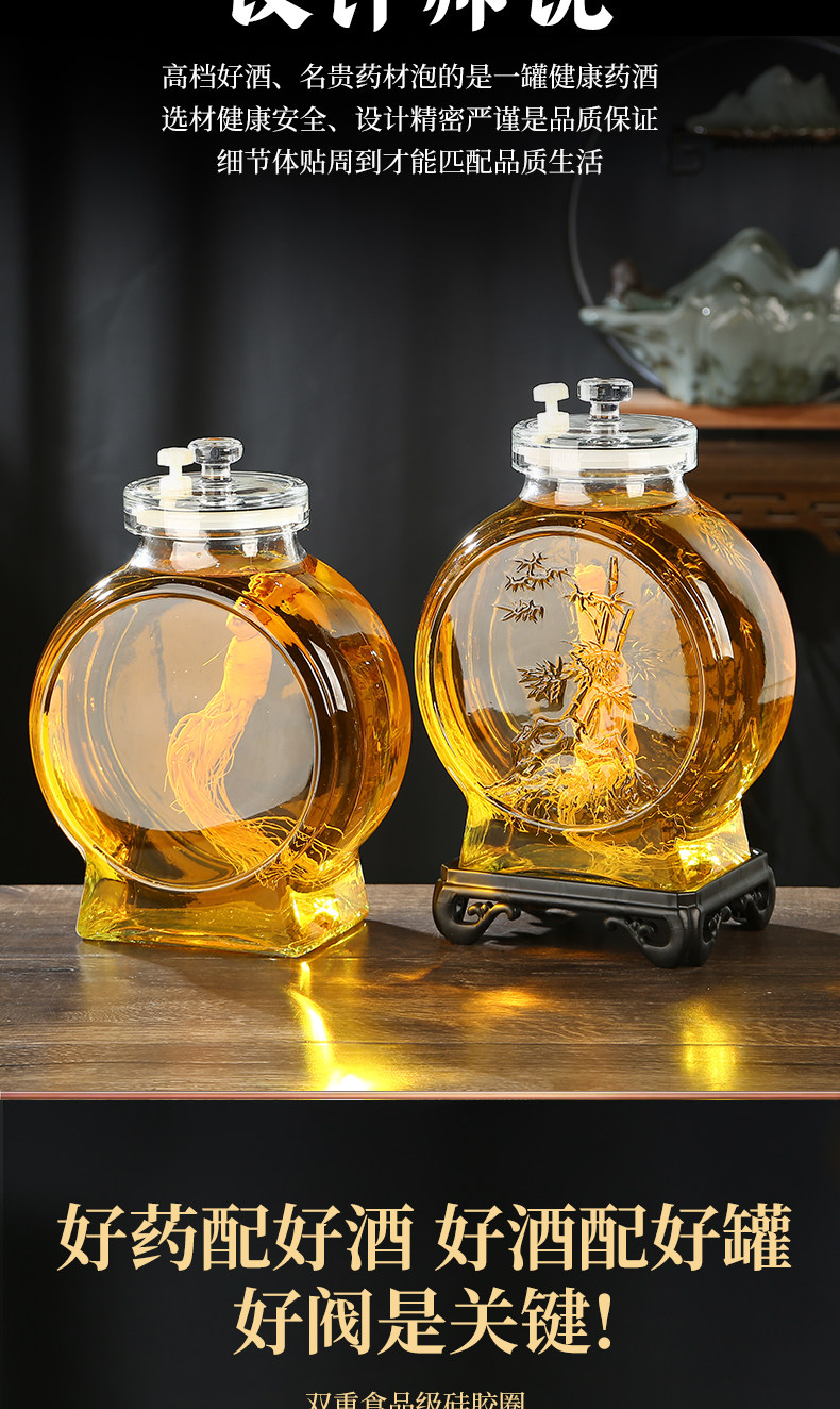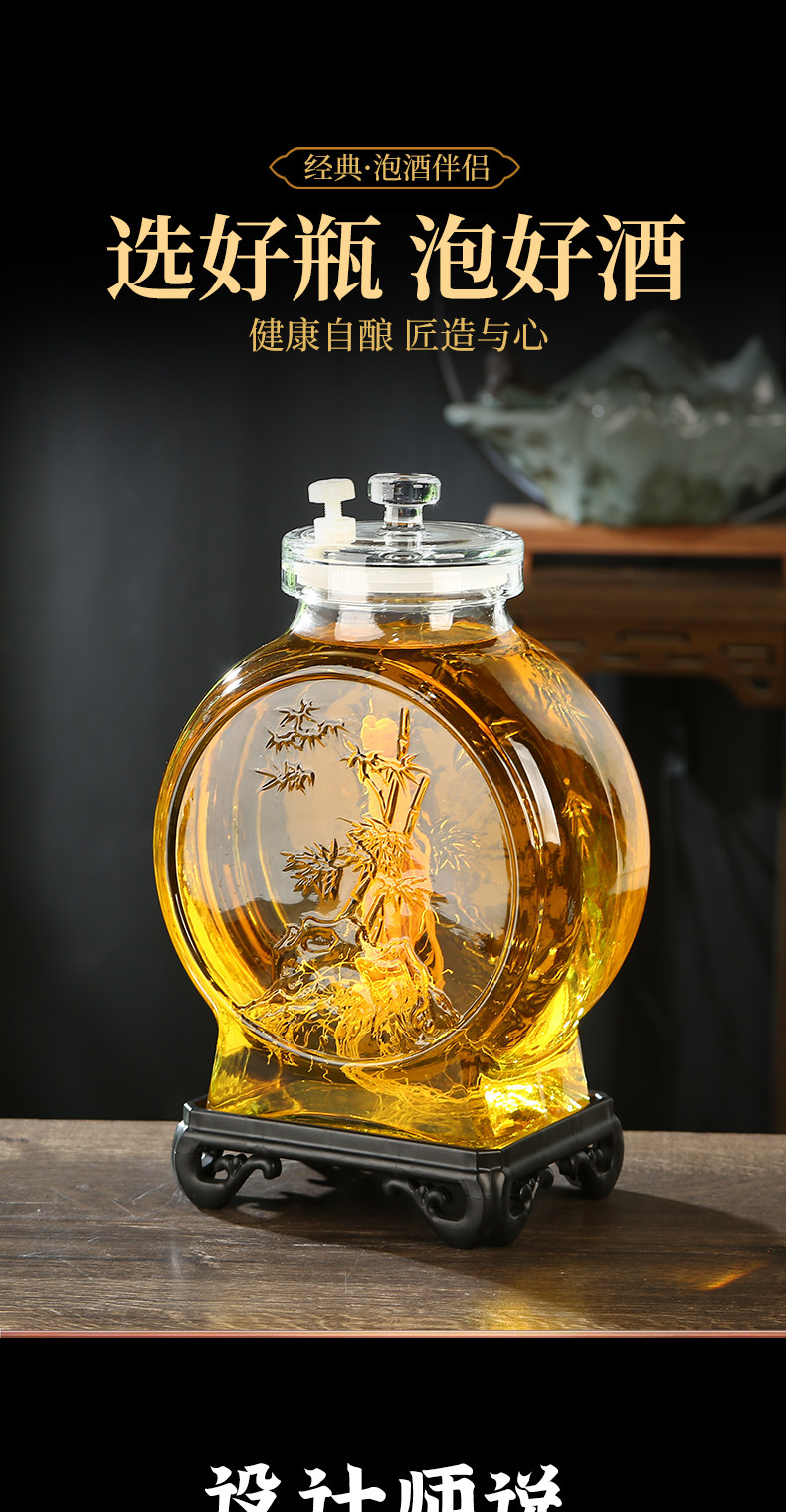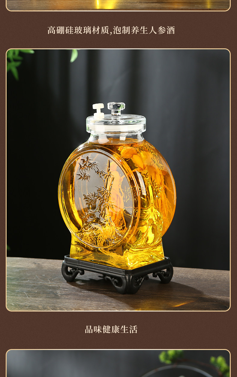 Lead-Free High-End Glass Wine Bottle with a Spigot for Home Use, Simple Wine Bottle for Infusing Alcohol, Medicinal Wine, and Infused Liquor
