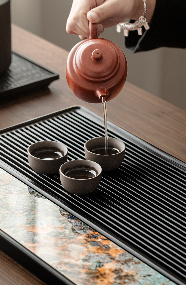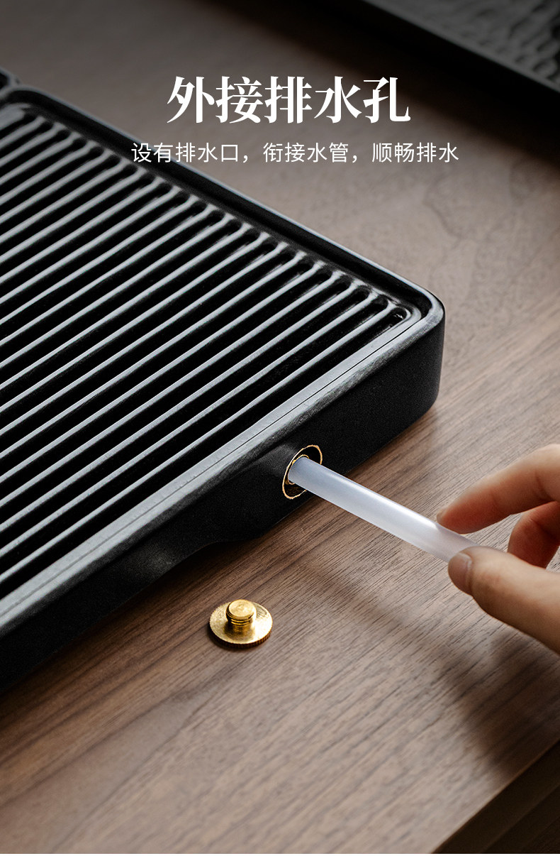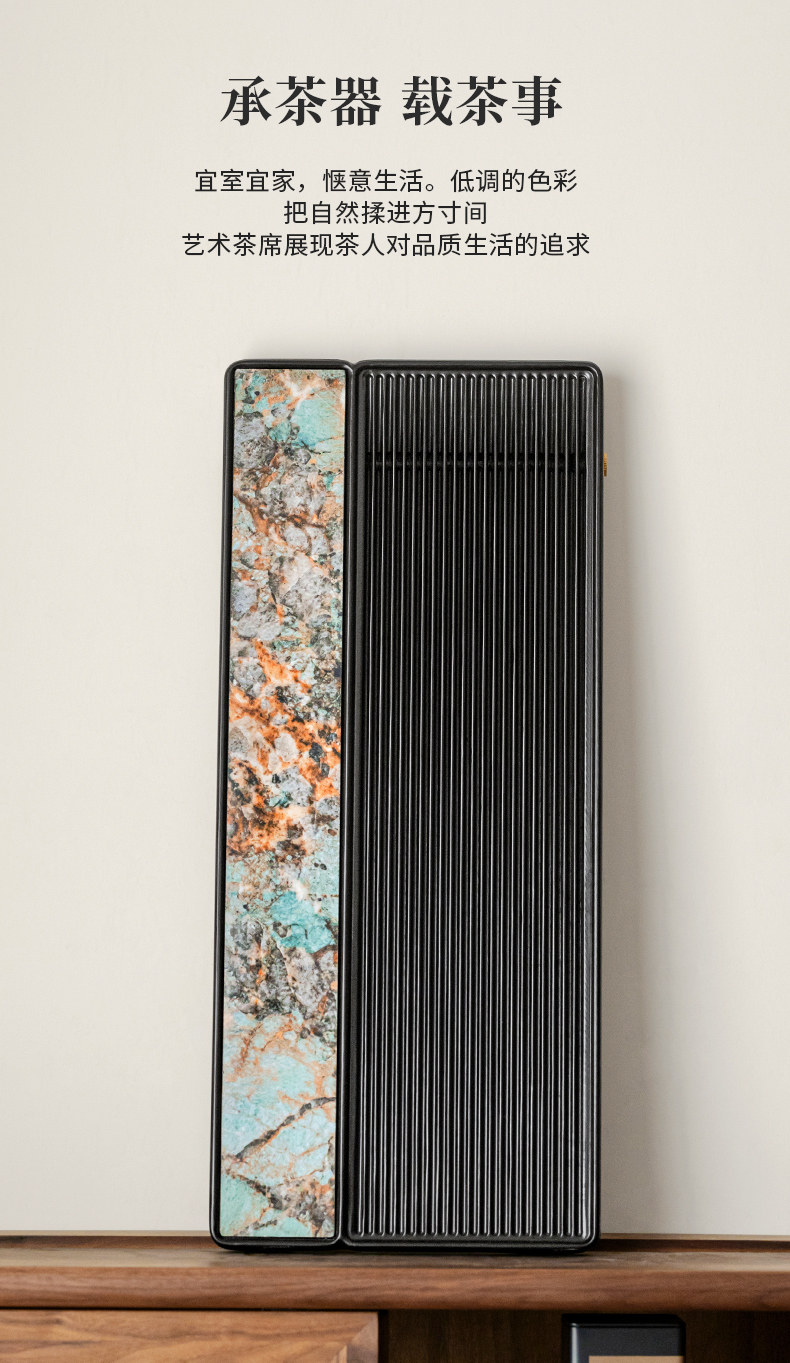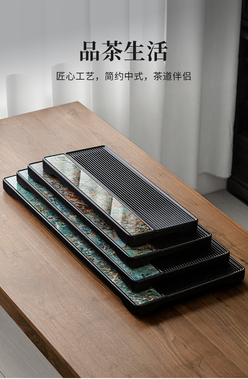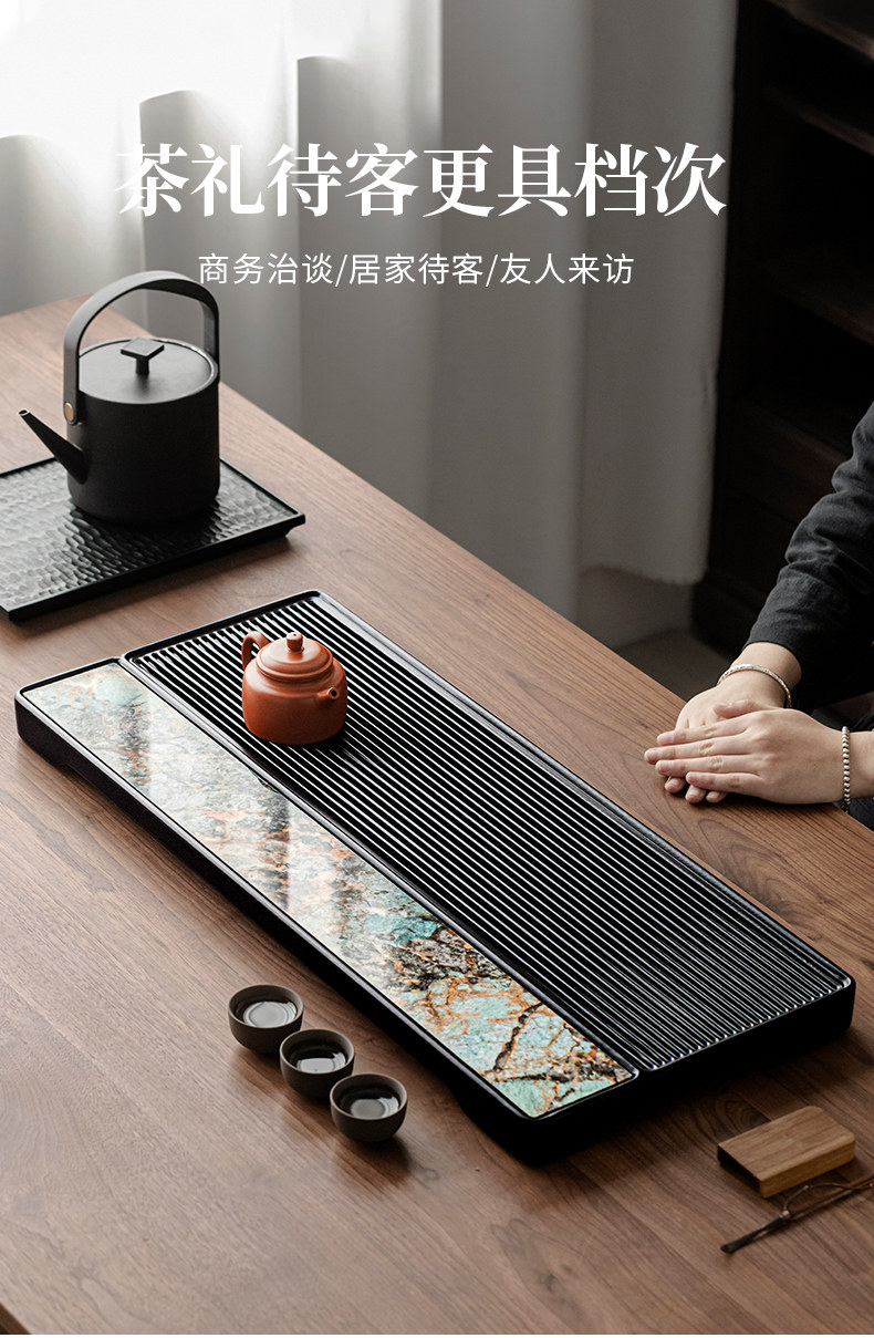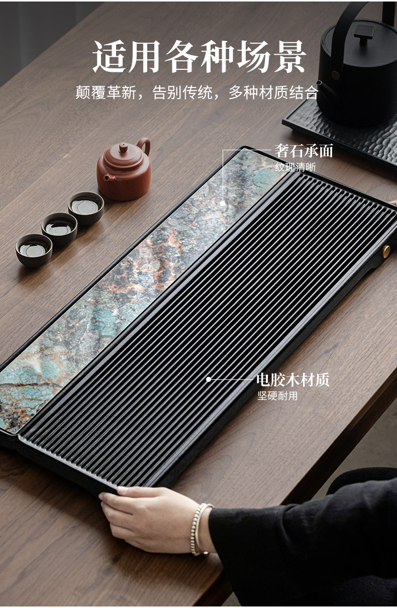 New High-End Bakelite Tea Tray, Light Luxury, Modern and Sophisticated, Wooden Luxury Stone Dry Tea Brewing Table with Drainage for Office Use
