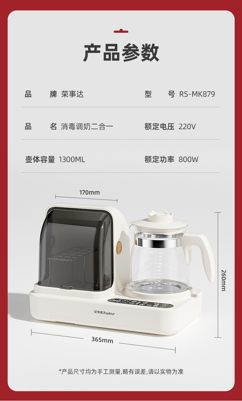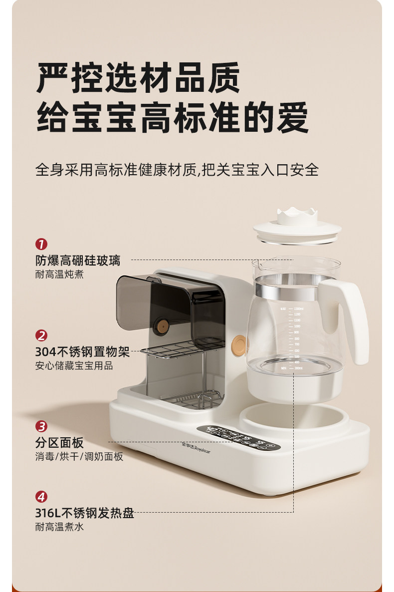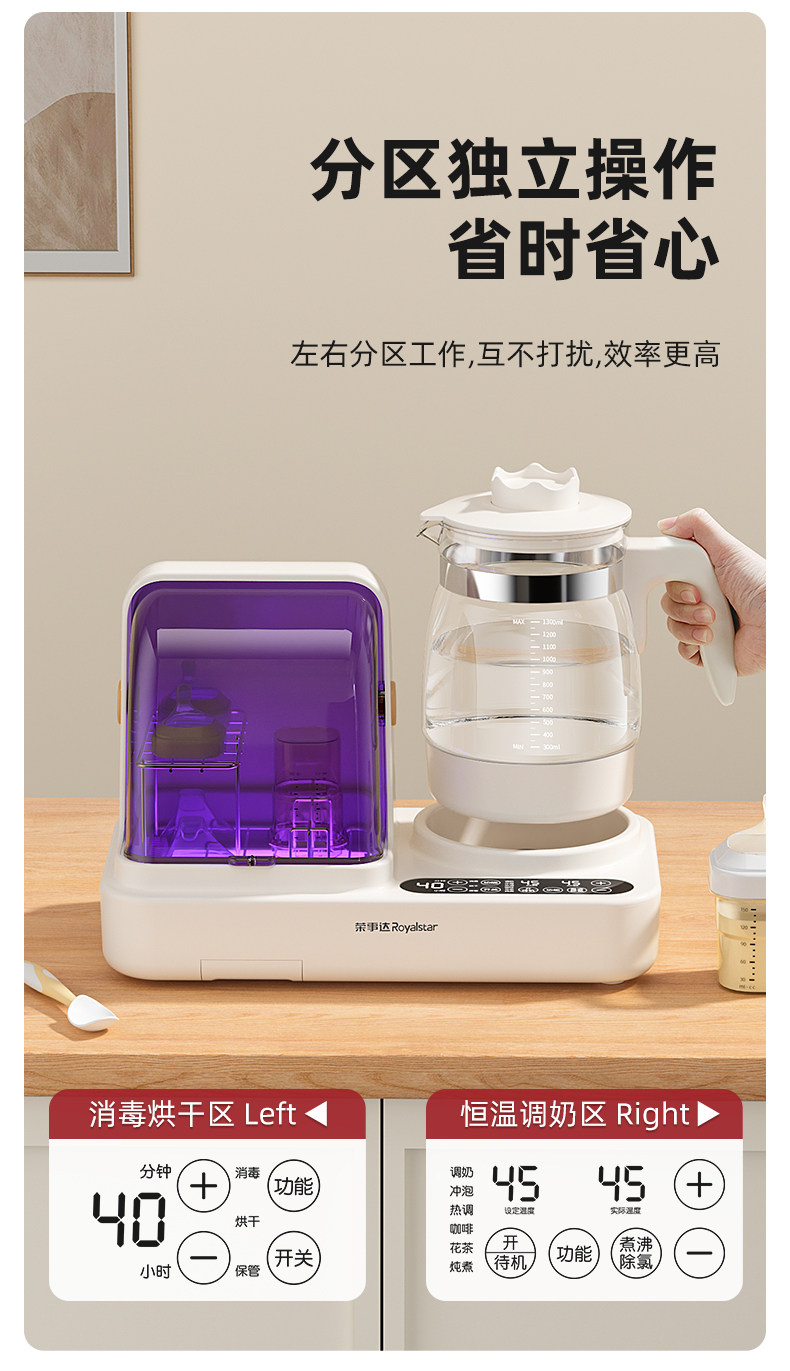 Royalstar Constant Temperature Kettle and Bottle Sterilizer 2-in-1 Baby-Specific Uv Sterilization Cabinet with Dryer and Storage