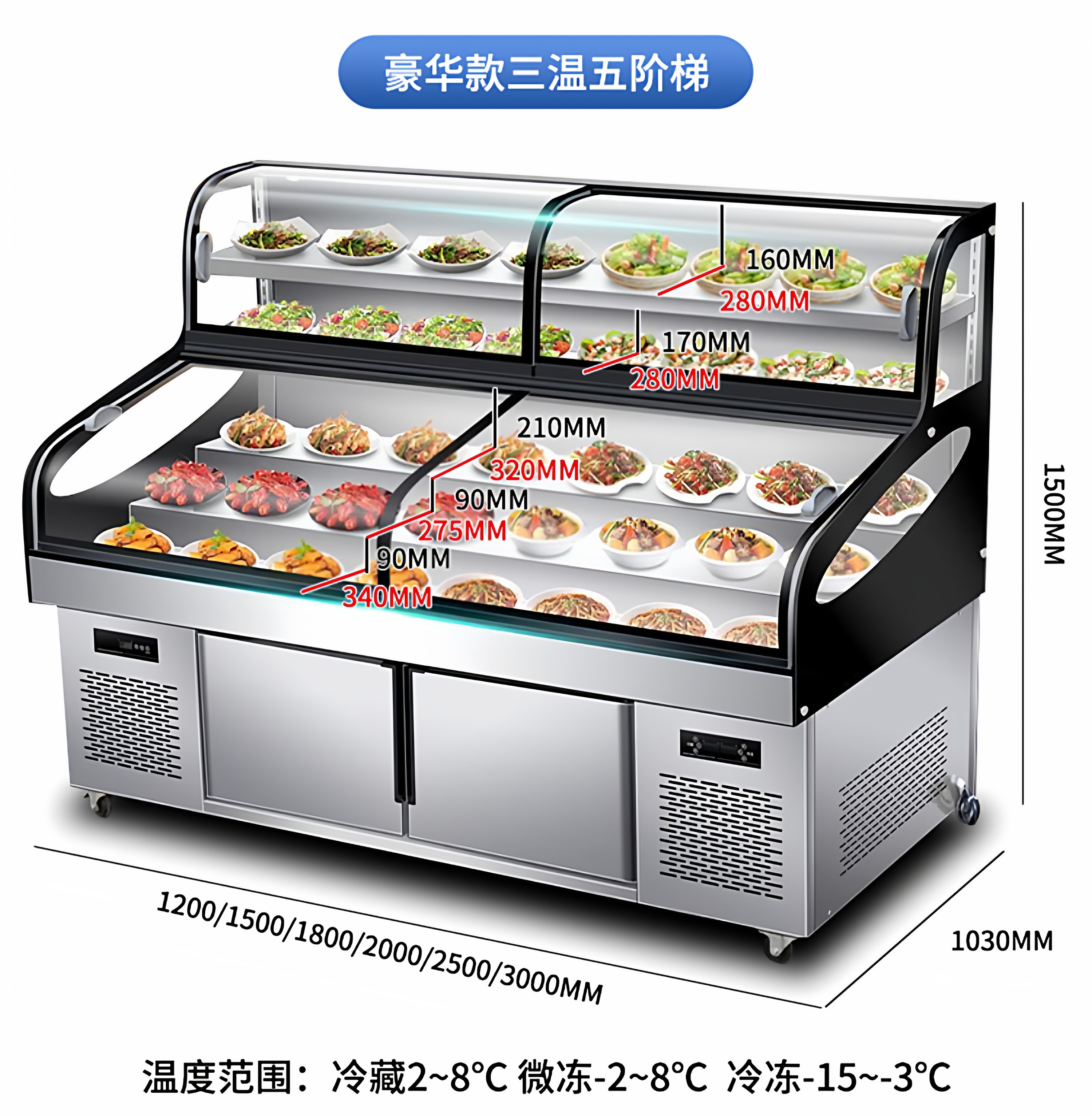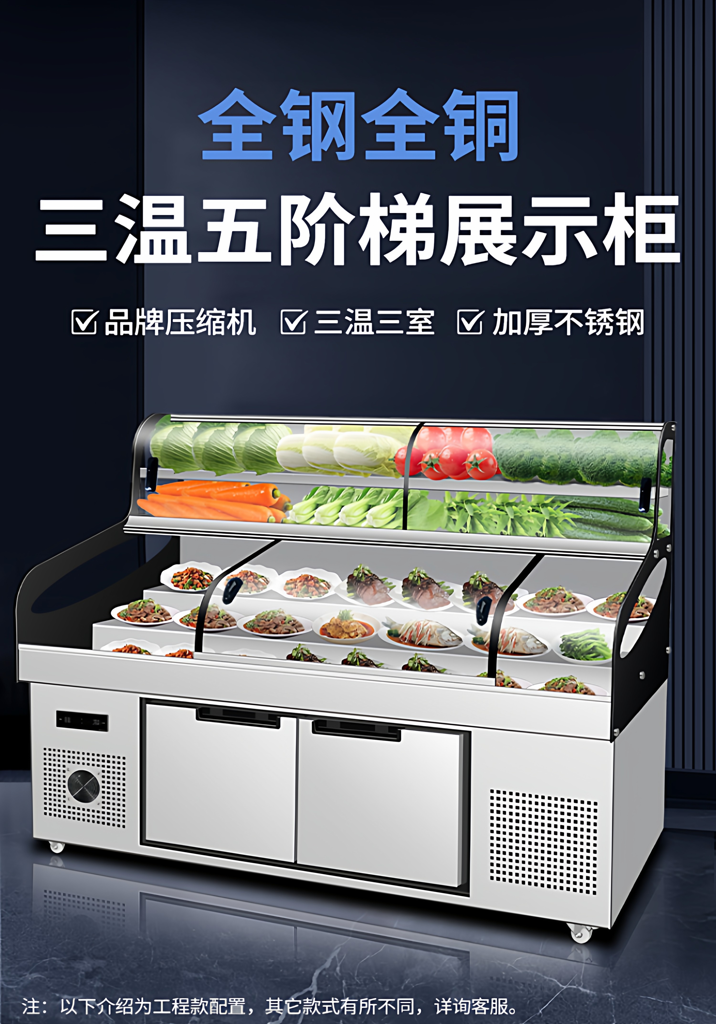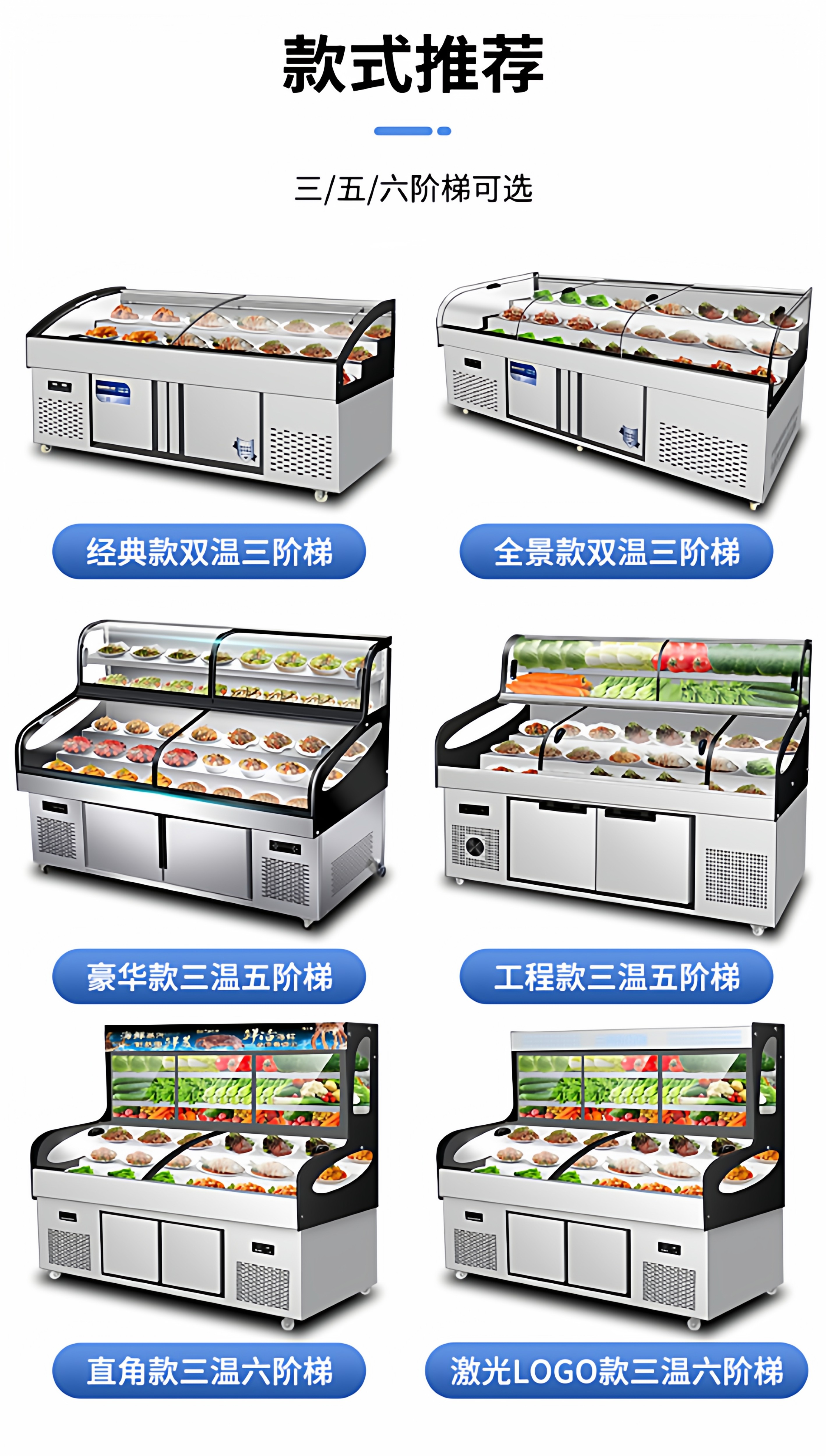 Yangzi Three-Temperature Five-Six-Tier Display Cabinet Ice Counter Commercial Deli Cold Dish Ordering Cabinet Refrigerated Seafood Barbecue Refrigerator