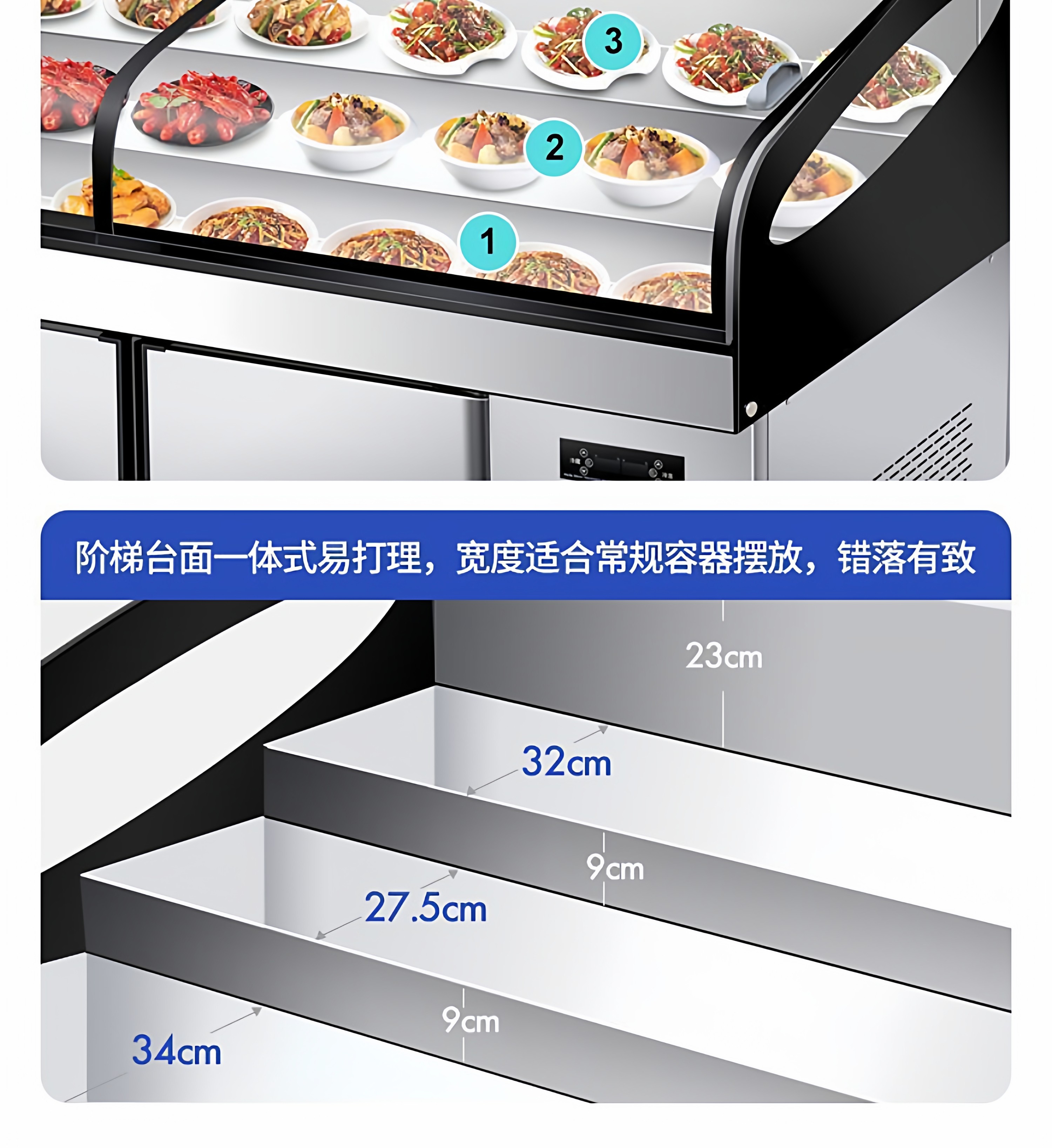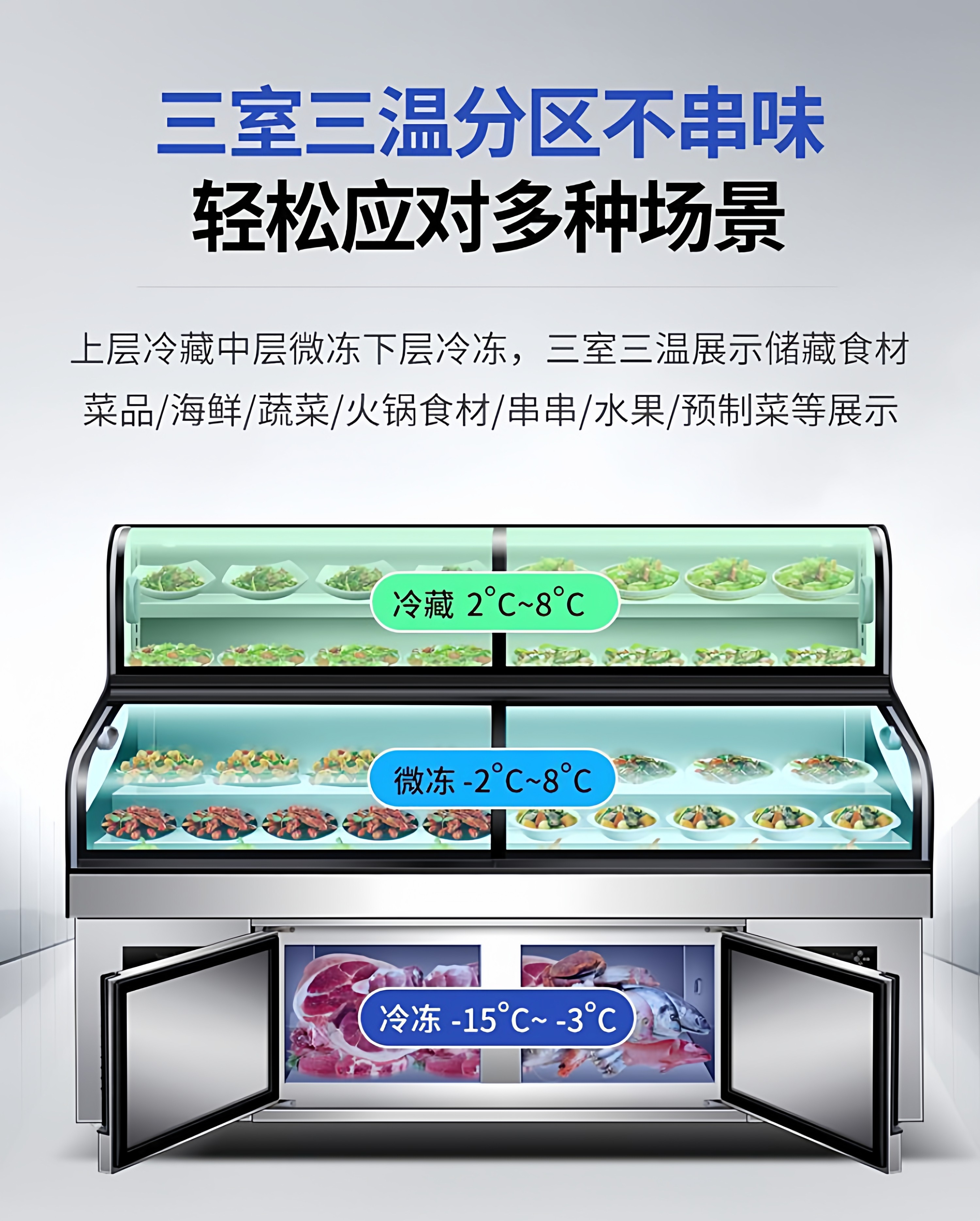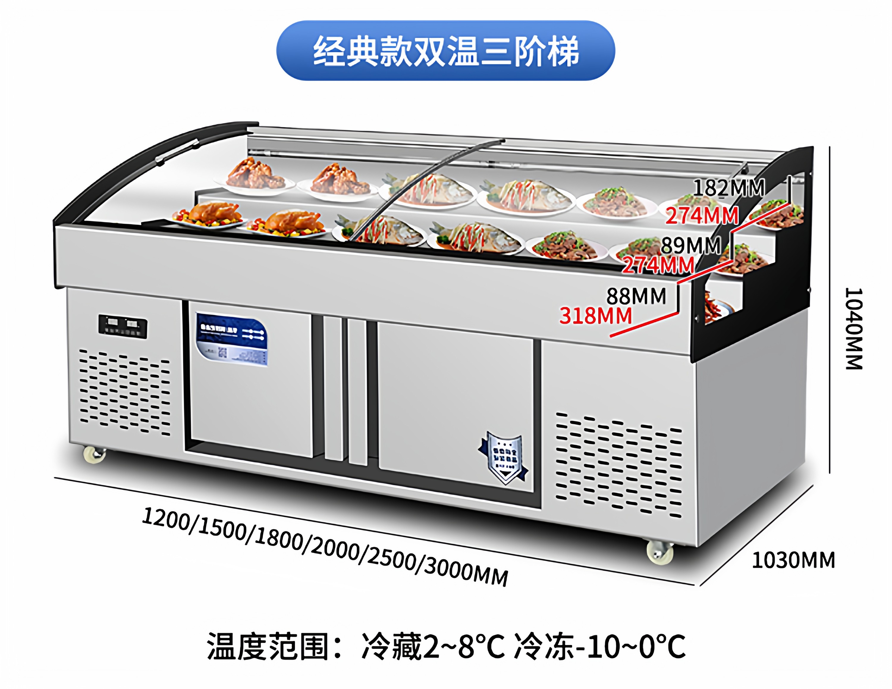 Yangzi Three-Temperature Five-Six-Tier Display Cabinet Ice Counter Commercial Deli Cold Dish Ordering Cabinet Refrigerated Seafood Barbecue Refrigerator