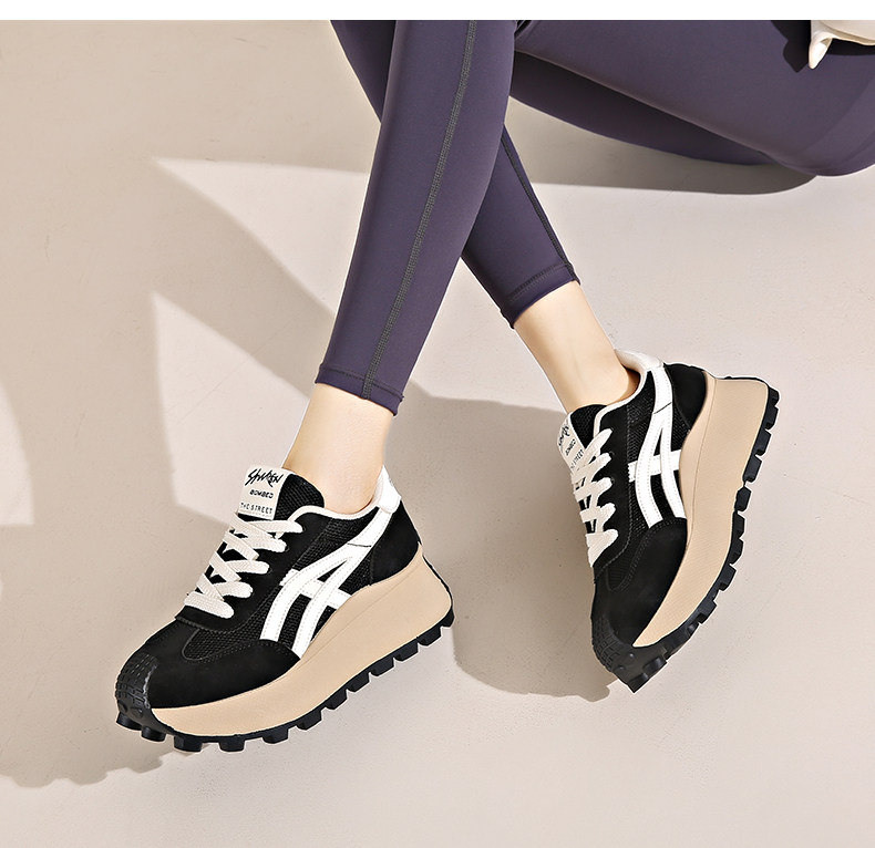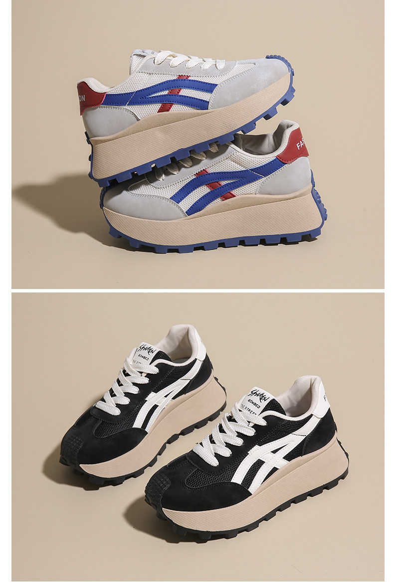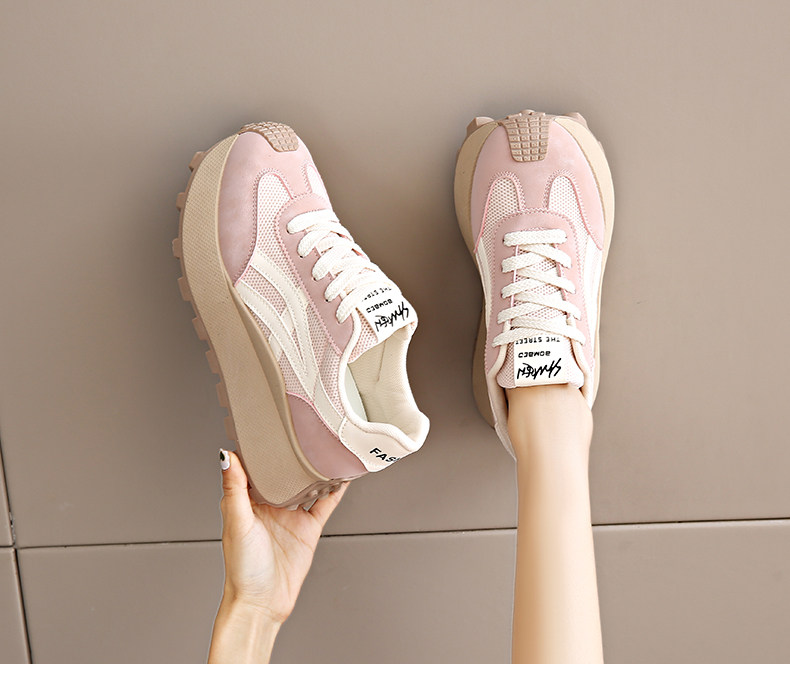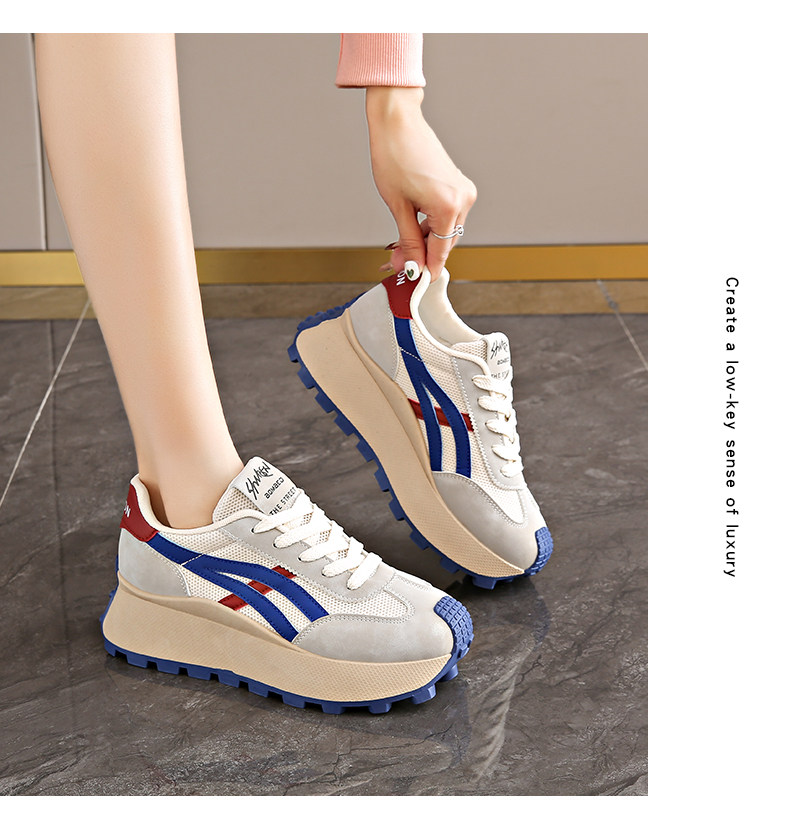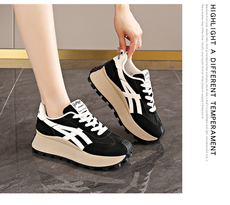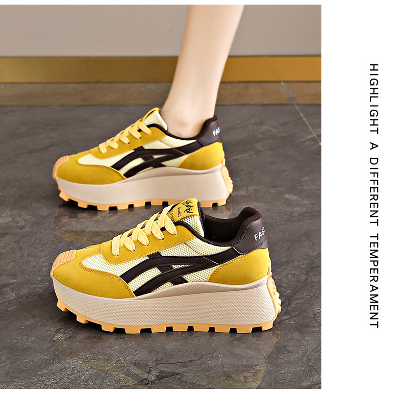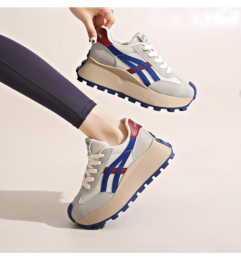 Hong Kong Style Internet Celebrity Waffle Platform Shoes for Women 2025 Spring New Thick-Soled Height-Increasing Retro Casual Sneakers for Women