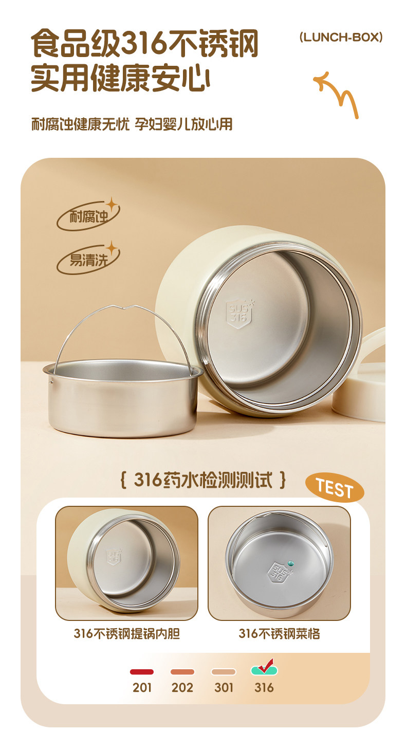 316 Stainless Steel Insulated Lunch Box, Extra Long Insulated Container, Portable Vacuum Insulated Pot for Students and Office Workers, Large Capacity