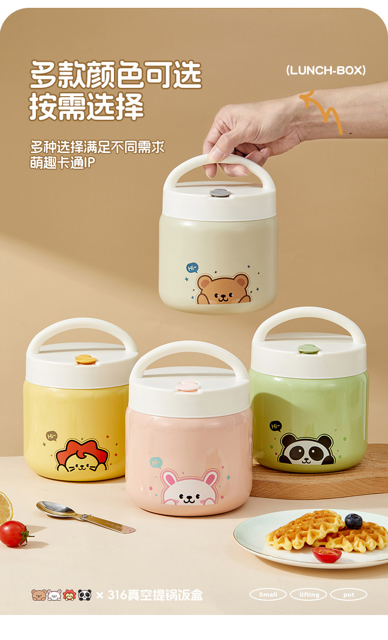 | Color Classification | Pink-Fan Fan Rabbit 1200ml[Comes with Folding Spoon],Beige-Heh Bear 1200ml[Comes with Folding Spoon],Yellow-Dada Lion 1200ml[Comes with Folding Spoon],Green-Doudou Bear 1200ml[Comes with Folding Spoon],Pink-Fan Fan Rabbit 1200ml[Comes with Folding Spoon + Thermal Bag],Beige-Heh Bear 1200ml[Comes with Folding Spoon + Thermal Bag],Yellow-Dada Lion 1200ml[Comes with Folding Spoon + Thermal Bag],Green-Doudou Bear 1200ml[Comes with Folding Spoon + Thermal Bag],Pink-Fan Fan Rabbit 1200ml[Comes with Folding Spoon + Thermal Bag + 316 Tableware Set],Beige-Heh Bear 1200ml[Comes with Folding Spoon + Thermal Bag + 316 Tableware Set],Yellow-Dada Lion 1200ml[Comes with Folding Spoon + Thermal Bag + 316 Tableware Set],Green-Doudou Bear 1200ml[Comes with Folding Spoon + Thermal Bag + 316 Tableware Set] |