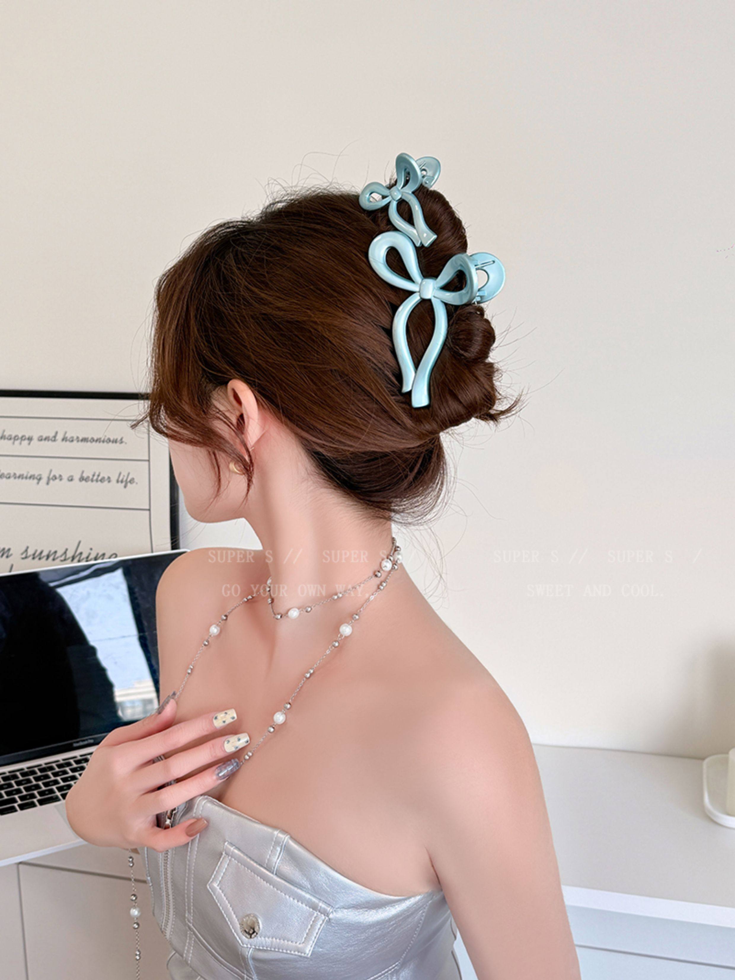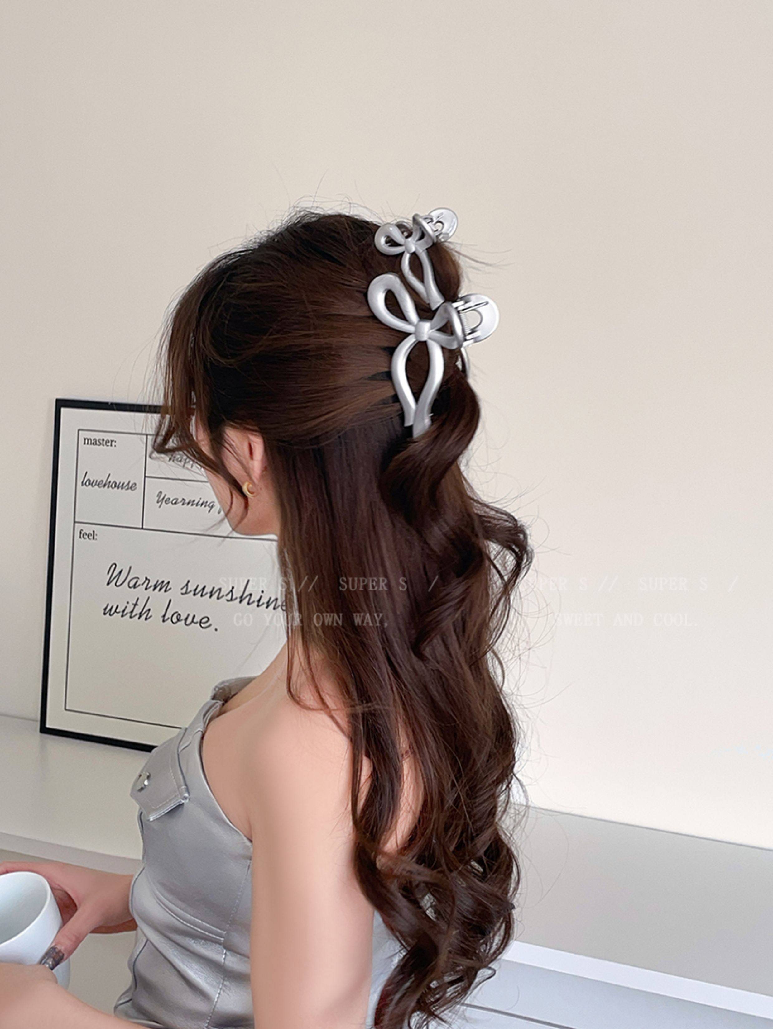 ins Futuristic Bow Hair Clip for Women, Back-Of-Head Updo Shark Clip, Niche Design, Y2K Sweet and Cool Girl Hair Accessory