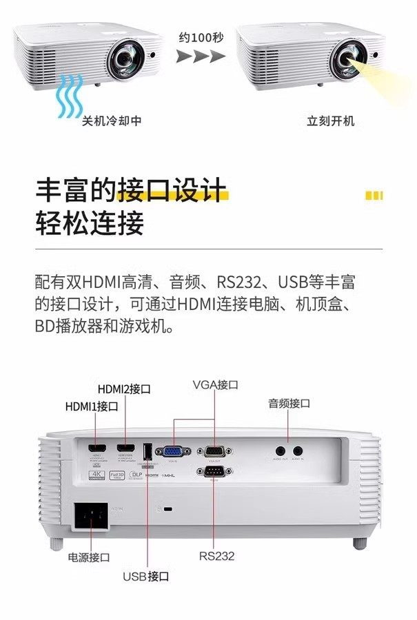 Optoma Eh412St/X3188St/W3188St/Yex6161St/Yew6371St/Lef9107St Short Throw Highlight Business Teaching and Training Large Screen Projector