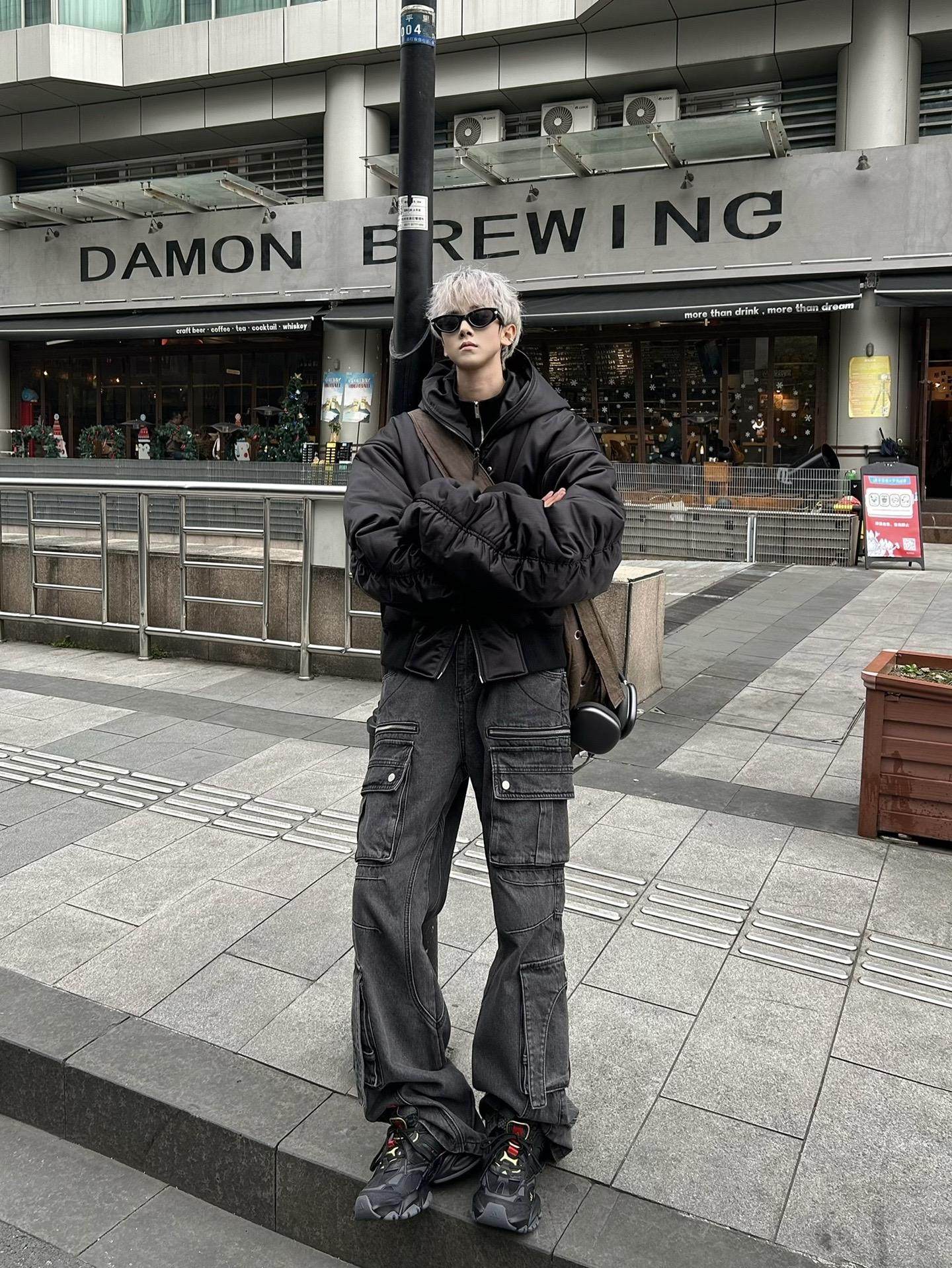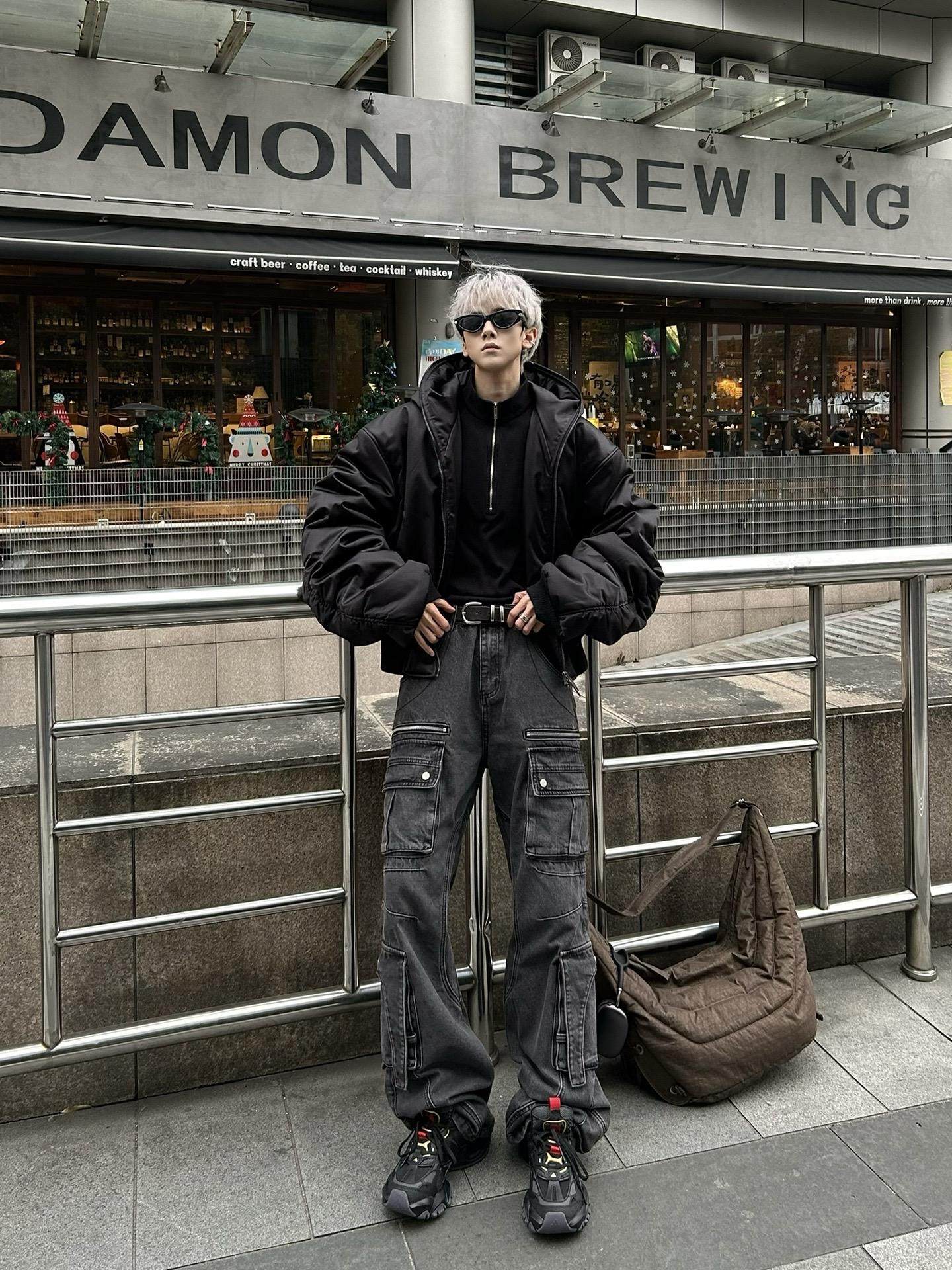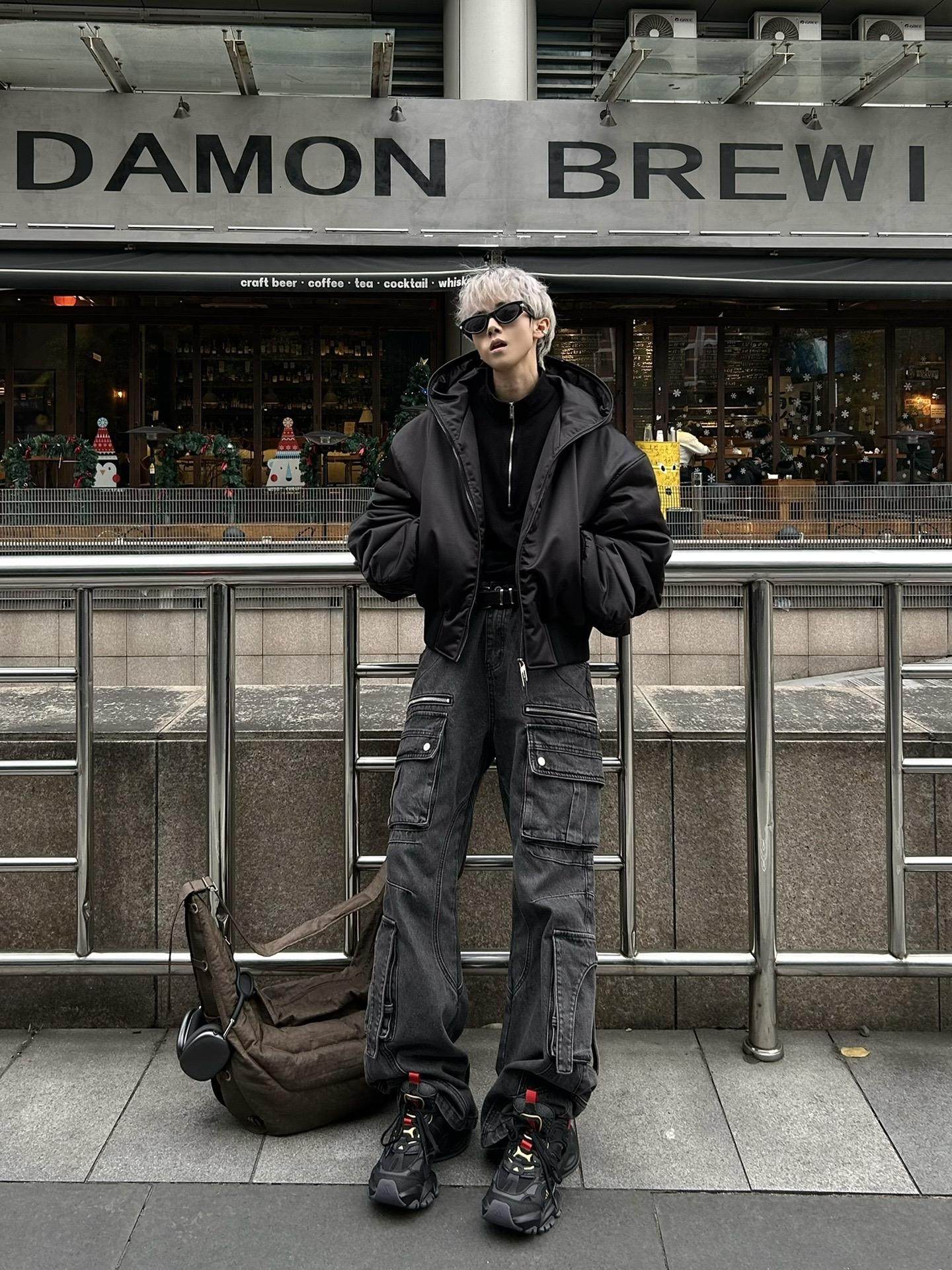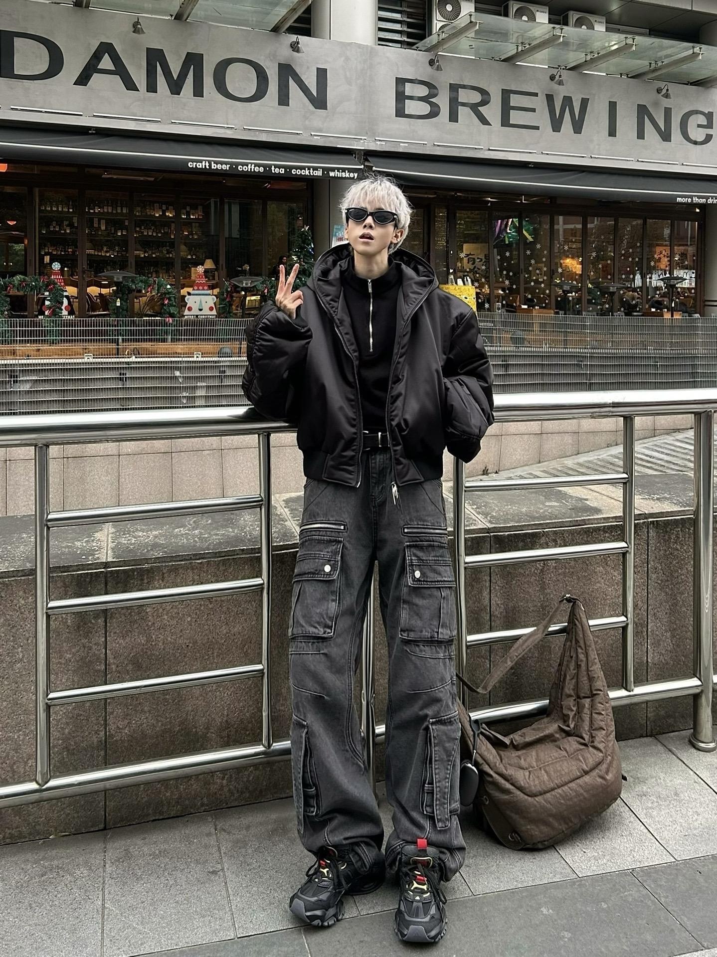 Men's Multi-Pocket Cargo Jeans, American High Street Style, Clean Fit Design, Straight-Leg Flared Pants