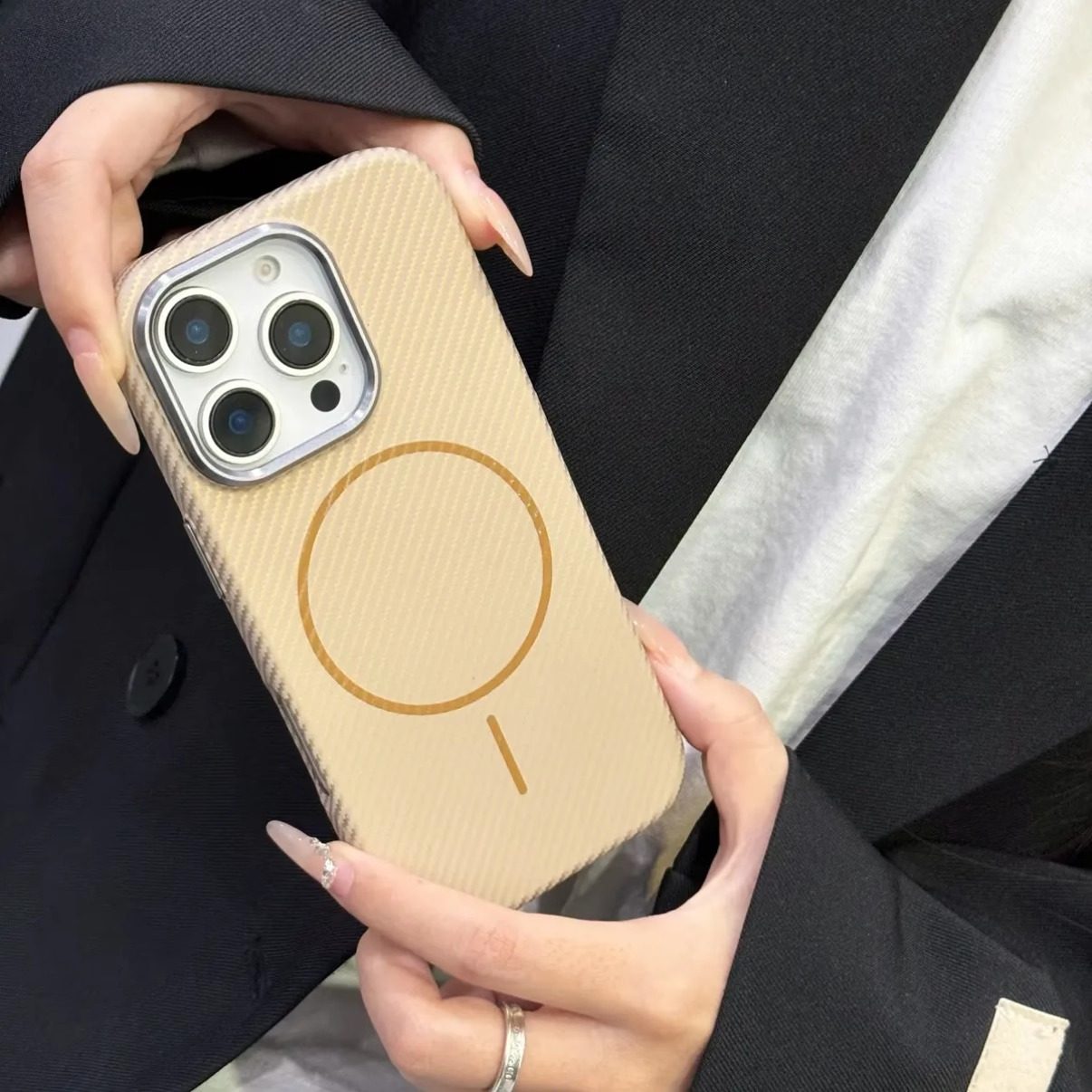 New Carbon Fiber Pattern Suitable for Apple 16 Pro Max Fine Magnetic Ring Phone Case iPhone 15 Pro Kevlar Pattern Skin-Feel Matte 14Pm Full-Body Anti-Drop iPhone 16 Protective Case with Metal Lens