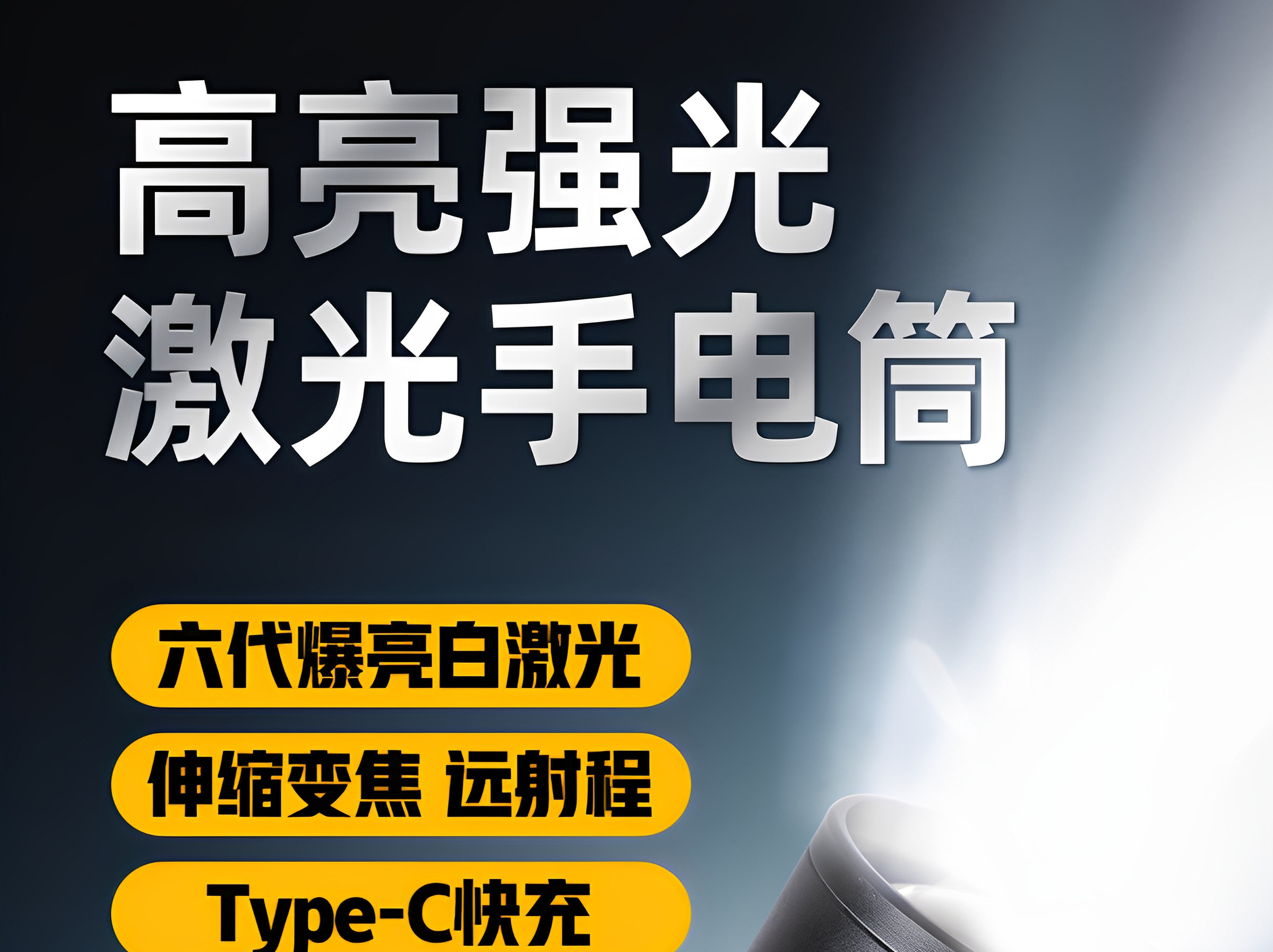 Super Bright Flashlight, Strong Light, Rechargeable, Outdoor White Laser, Household, Small, Portable, Durable, Multi-Functional, Long-Range Patrol