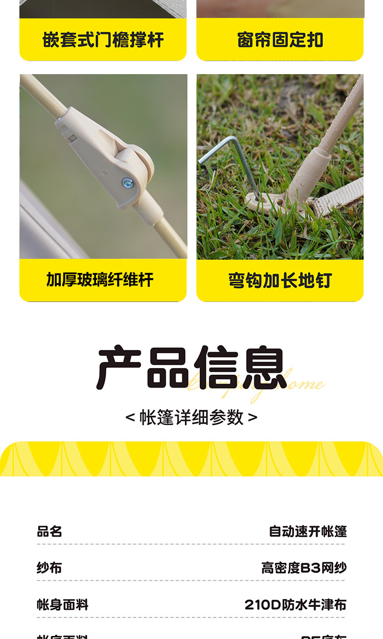 | External Tent Material | Silver Glue,210D Oxford Cloth |