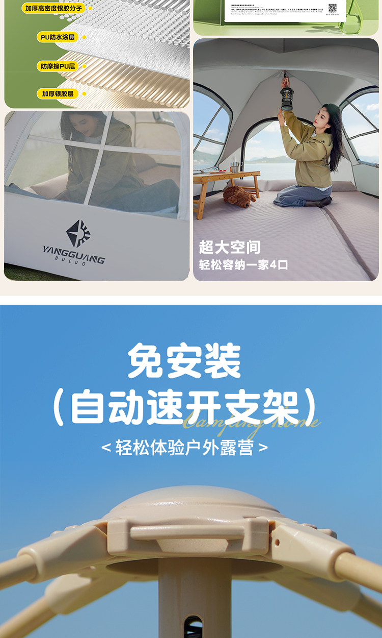 Sunshine Tribe Camping Tent Outdoor Overnight Portable Folding Automatic Quick-Opening Rainproof Thickened Equipment