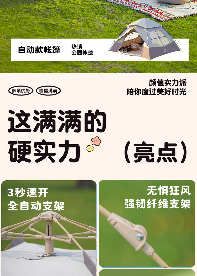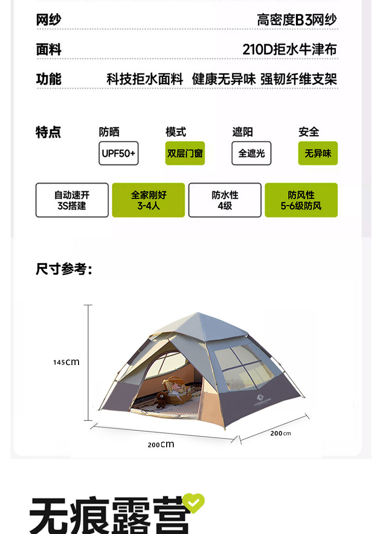 | External Tent Material | 210D Oxford Cloth Coated with Silver Waterproof |
