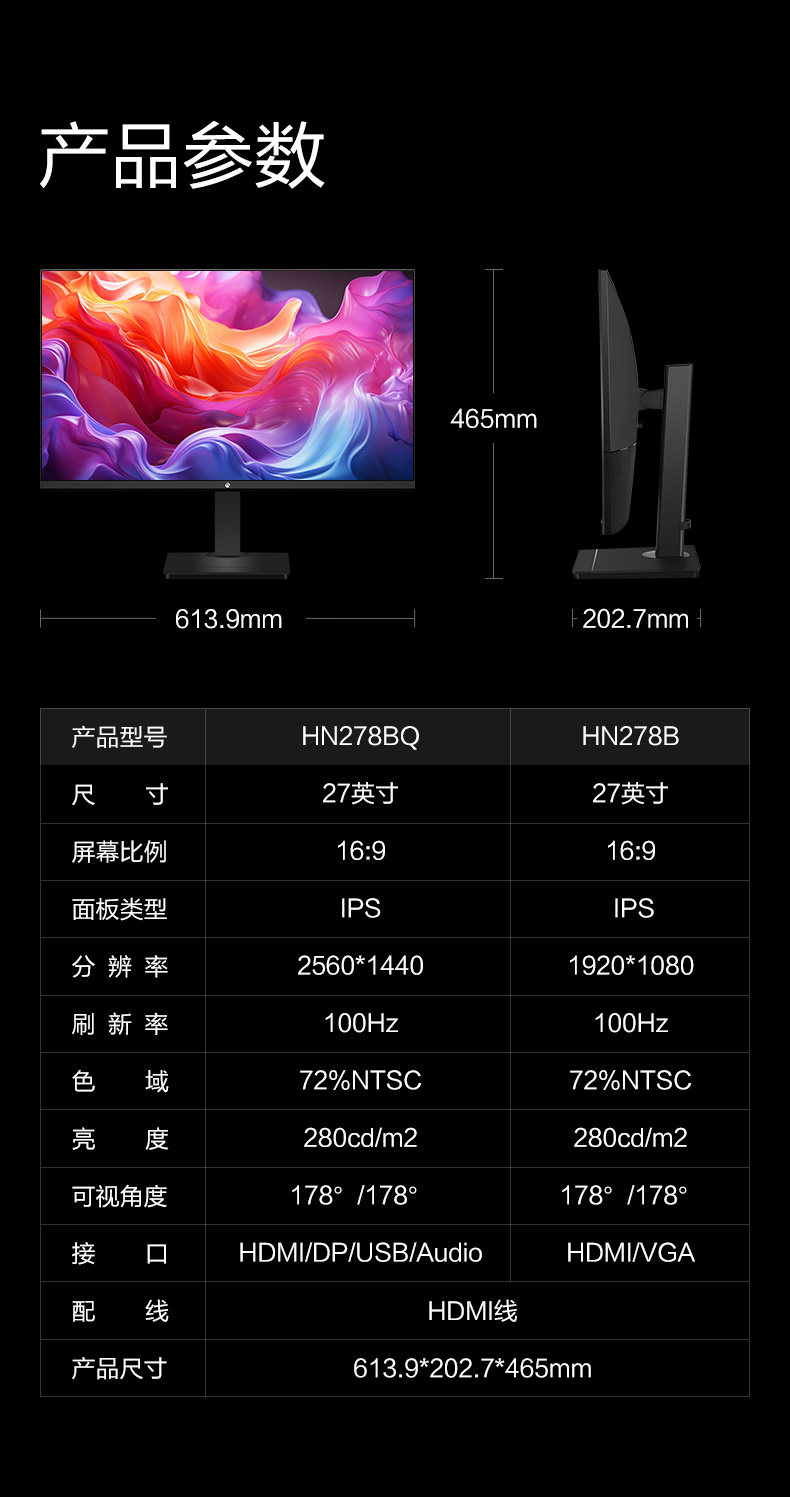 | Color Classification | 1K/100Hz/ 27inch / Ips/Hn278B,2K/100Hz/ 27inch / Ips/Hn278Bq,Gaming Model 1K/180Hz/ 27inch /Ips/Gn278B Built-In Speaker,Gaming Model 2K/180Hz/ 27inch /Ips/Gn278Bq Built-In Speaker |