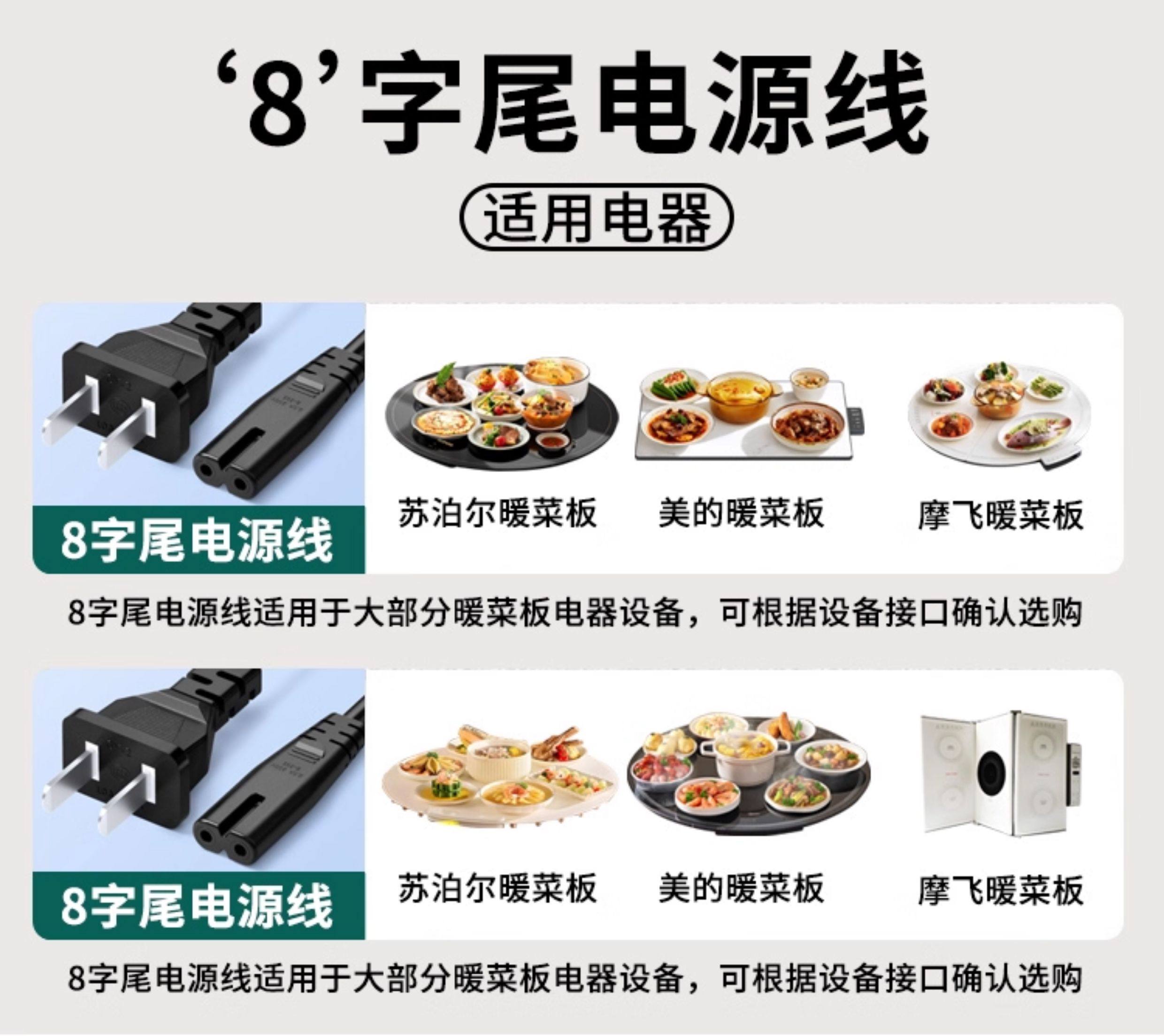 Suitable for Midea, Supor, Mofei Warming Plate, Hot Plate Power Cord, Insulation Plate, Heating Table Mat, Charging Plug Cord