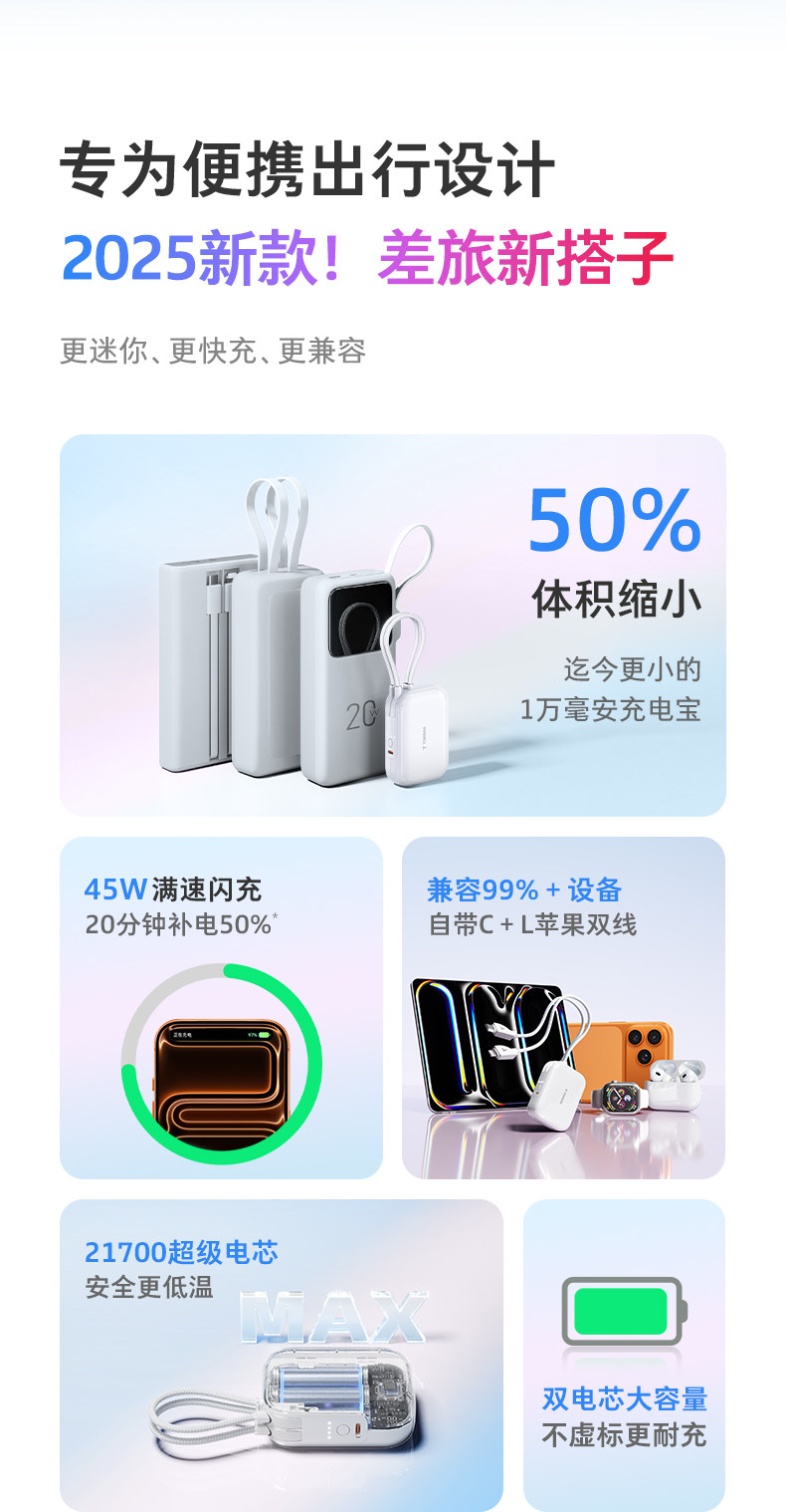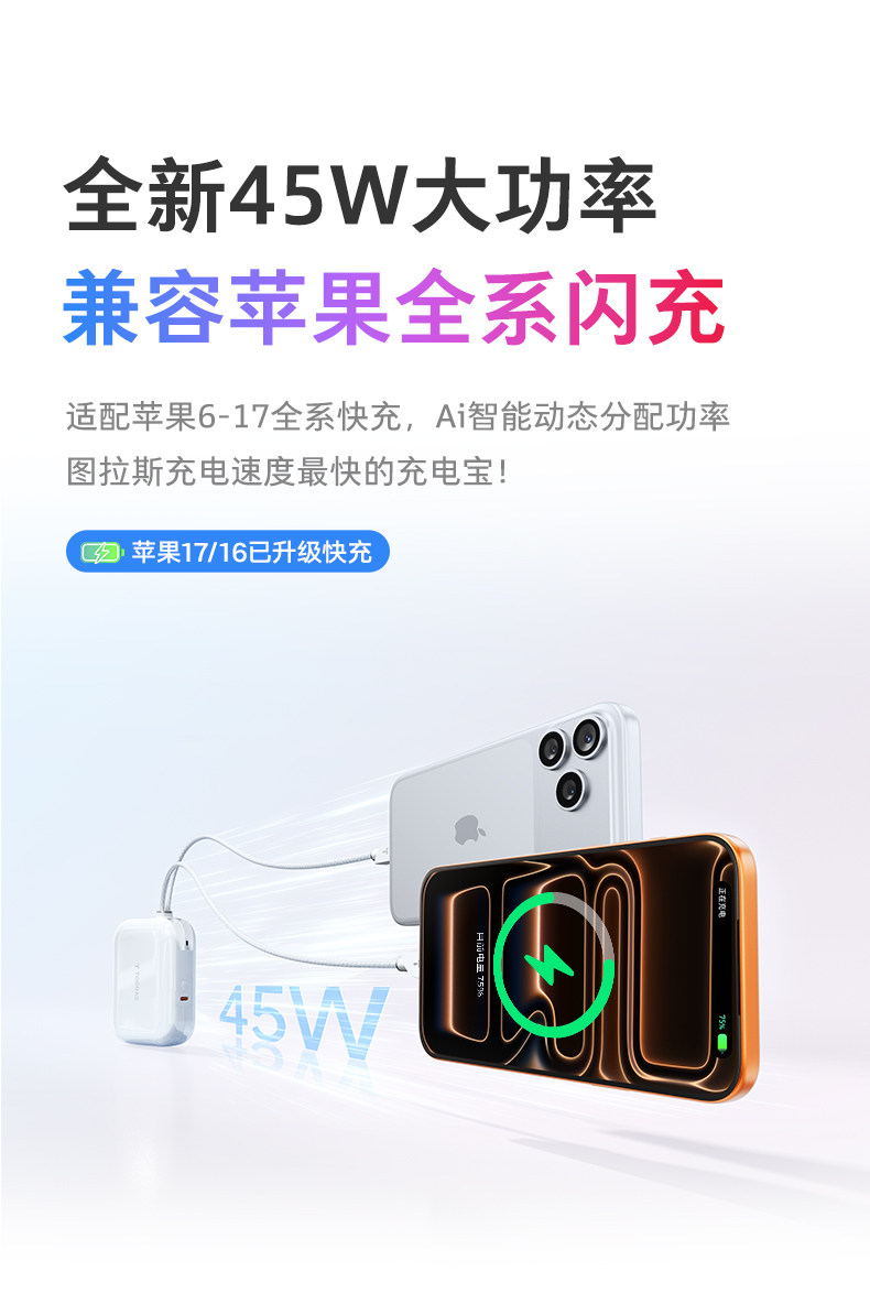 | Color Classification | [New National Standard 3C Certification] Available on the Official Website✅Can Be Taken on the Plane/High-Speed Rail,[Tulas Official New Model] Flash Hair⚡Free DIY Stickers,[Apple Apr Cooperative Brand] Compatible with Apple/Huawei/Android,Clouds White⭐️45W Flash Charge [Comes with Apple + Type-C Dual Cables] Compatible with Apple 6-17/Huawei Android/Computer,Cherry Blossom Powder⭐️45W Flash Charge [Comes with Apple + Type-C Dual Cables] Compatible with Apple 6-17/Huawei Android/Computer,Sky Blue⭐️45W Flash Charge [Comes with Apple + Type-C Dual Cables] Compatible with Apple 6-17/Huawei Android/Computer,Lavender Purple⭐️45W Flash Charge [Comes with Apple + Type-C Dual Cables] Compatible with Apple 6-17/Huawei Android/Computer,Chocolate⭐️45W Flash Charge [Comes with Apple + Type-C Dual Cables] Compatible with Apple 6-17/Huawei Android/Computer,The Following Comes with 2 Typec Cables ★ Compatible with Apple 15-17/Huawei/Android,Clouds White⭐️45W Flash Charge [Comes with 2 Type-C Dual Cables] Compatible with Apple 15-17/Huawei Android/Computer,Cherry Blossom Powder⭐️45W Flash Charge [Comes with 2 Type-C Dual Cables] Compatible with Apple 15-17/Huawei Android/Computer,[Apple Watch Wireless Charging + Power Bank Set] Suitable for All Apple 6-17/Airpods/Watch Series |