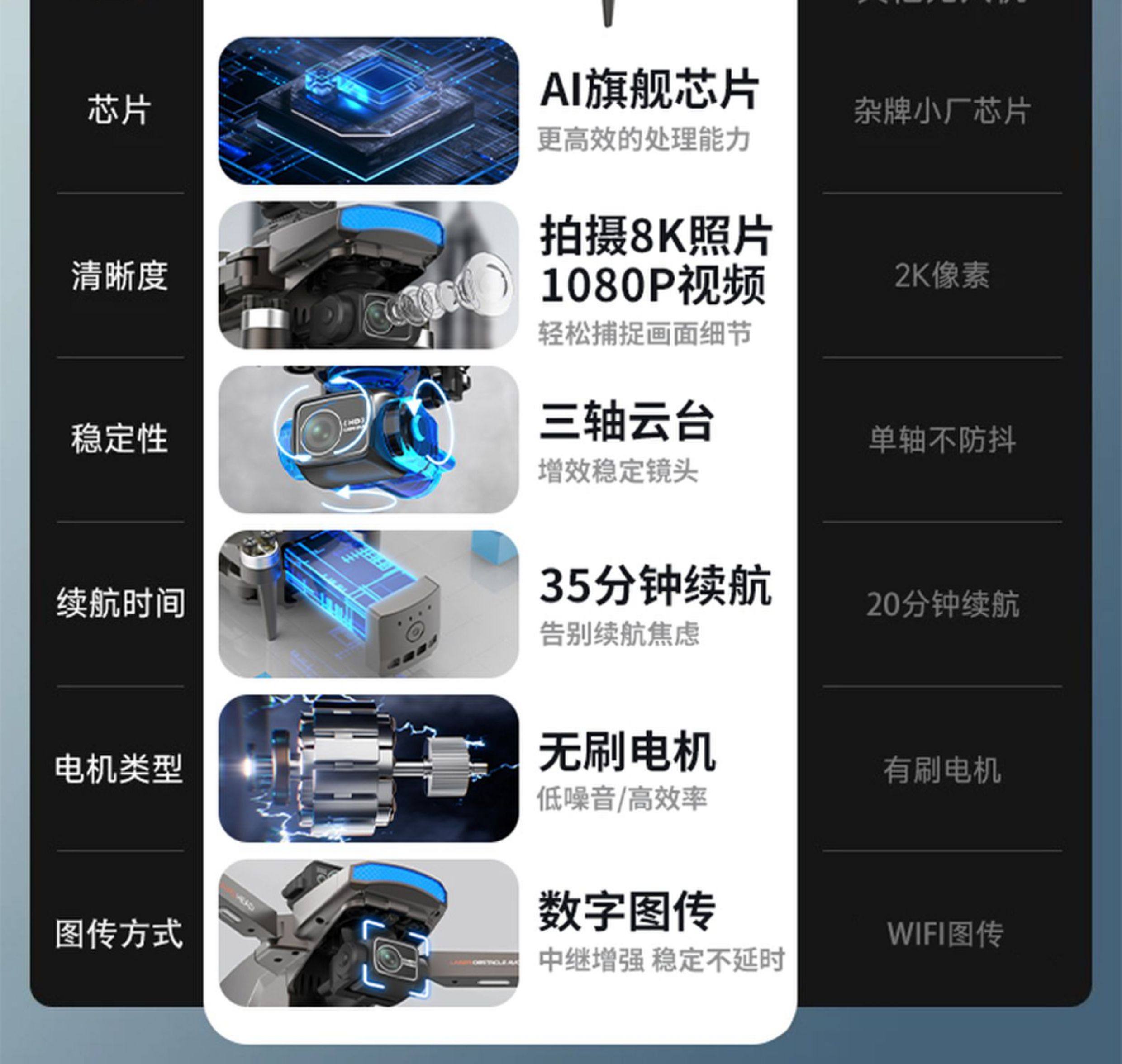 | Color Classification | Holographic Smart Screen[Three-Axis Gimbal + Digital Image Transmission]Relay Overclocking Gps - Lossless Aerial Photography + Ai Algorithm Optimization / Super-Sensitive Laser Obstacle Avoidance / Surging Brushless / Optical Flow Self-Stabilization / Surround Following / Electronic Fence Protection / All-Round Return |