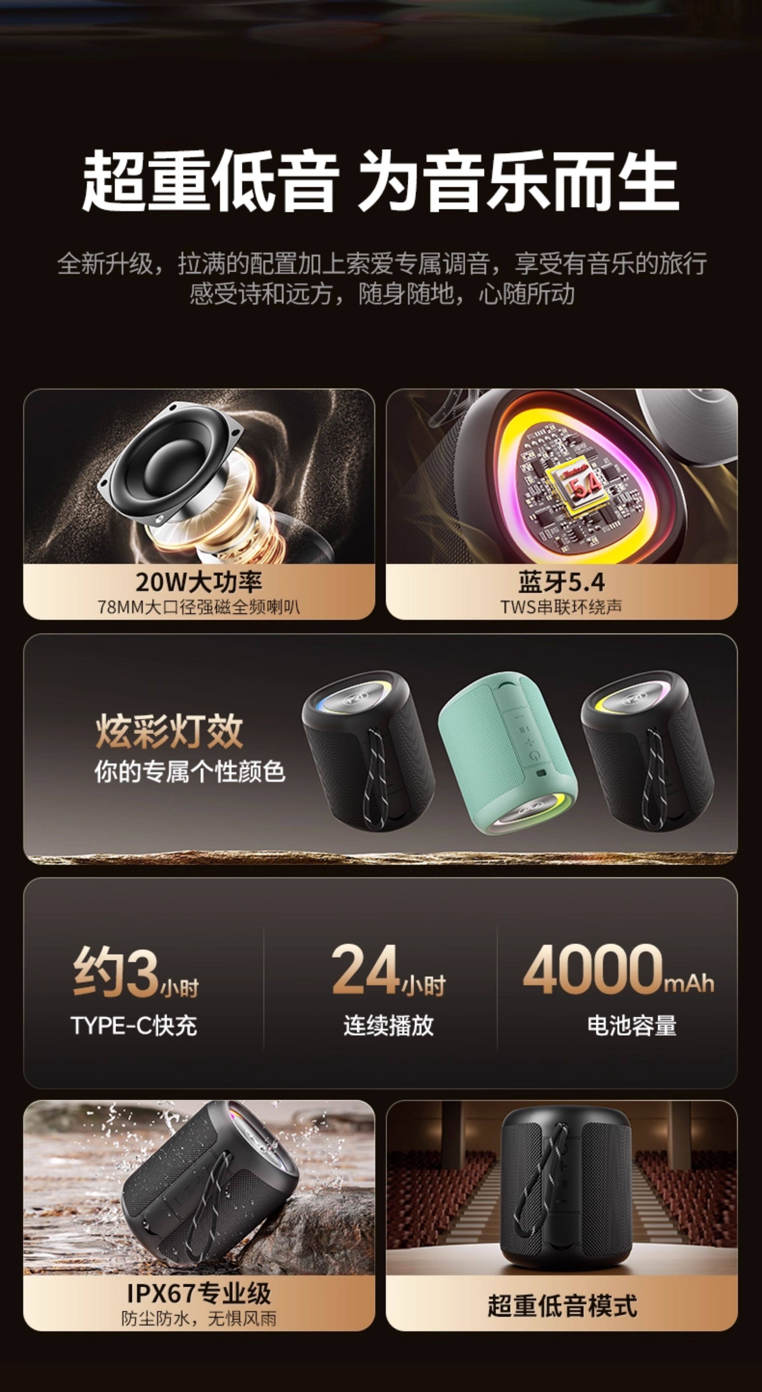 | Color Classification | [Add to Favorites + Cart]Enjoy 1-Year Replacement, Fast Delivery, Post Pictures and Get a 10 Yuan Cash Red Envelope,Wise Black (20W High Power, Xiaodu Ai, Waterproof & Dustproof),Mint Green (20W High Power, Xiaodu Ai, Waterproof & Dustproof),Wise Black + 32g Memory Card (1800 Songs Included),Mint Green + 32g Memory Card (1800 Songs Included) |