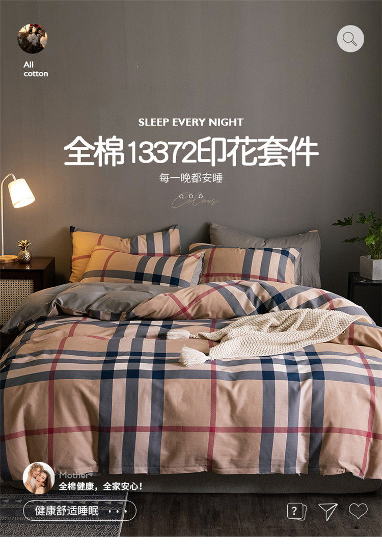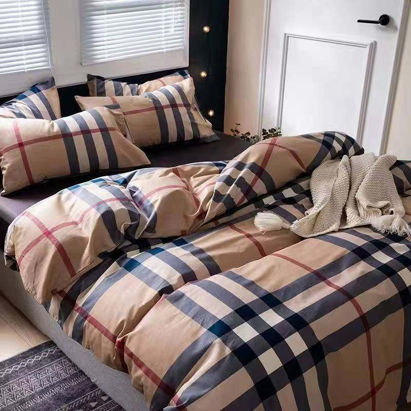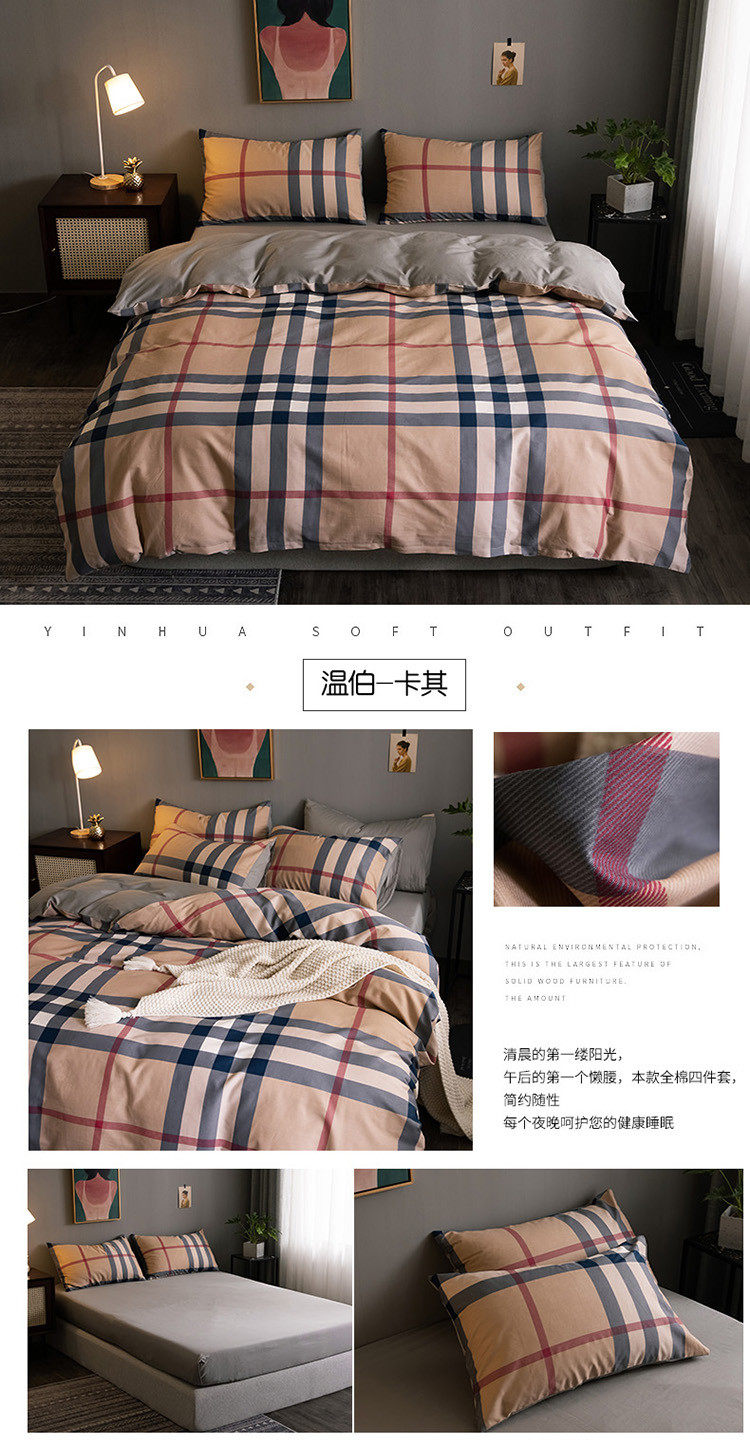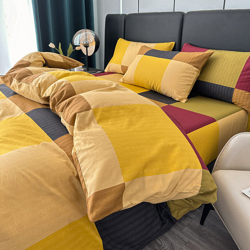 Internet-Famous All-Cotton Four-Piece Set, Pure Cotton Bedding, Bed Sheet, Nordic Simple Plaid, Light Luxury Duvet Cover, Fitted Sheet, Three-Piece Set