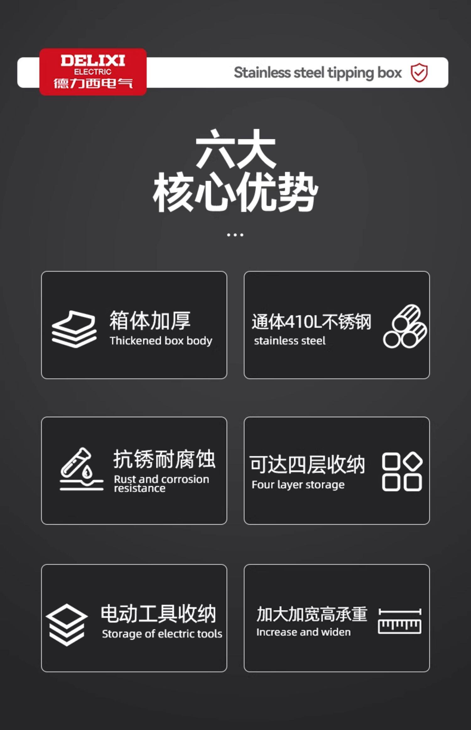 | Color Classification | Delixi Electric: a Trusted Brand with a Long Legacy – China Fortune 500 – Quality Guaranteed,Double Layer [Small Size] Stainless Steel [Thickened 0.5mm],Double Layer [Medium Size] Stainless Steel [Thickened 0.5mm],Double Layer [Large Size] Stainless Steel [Thickened 0.5mm],Double Layer [Extra Large] Stainless Steel [Thickened 0.5mm],Three Layers [Small Size] Stainless Steel [Extra Thick 0.6mm],Three Layers [Medium Size] Stainless Steel [Extra Thick 0.6mm],Three Layers [Large Size] Stainless Steel [Extra Thick 0.6mm],Three Layers [Extra Large] Stainless Steel [Extra Thick 0.6mm],Four Layers [Large Size] Stainless Steel [Extra Thick 0.6mm],Four Layers [Extra Large] Stainless Steel [Extra Thick 0.6mm],[Free Combination Lock + Parts Box] Medium/Double-Layer Stainless Steel Tool Box,[Free Combination Lock + Parts Box] Large/Double-Layer Stainless Steel Tool Box,[Free Combination Lock*2+Parts Box] Extra Large/Double-Layer Stainless Steel Tool Box,[Free Combination Lock + Parts Box] Medium/Double-Layer Upgraded Thickened Stainless Steel Tool Box,[Free Combination Lock + Parts Box] Large/Double-Layer Upgraded Thickened Stainless Steel Tool Box,[Free Combination Lock*2+Parts Box] Extra Large/Double-Layer Upgraded Thickened Stainless Steel Tool Box |
