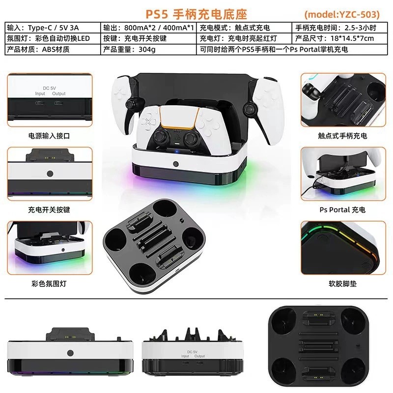 Ps5Protal Handheld Charging Stand Ps5 Game Controller Three-In-One Dual Charger Ps5 Handheld Storage Colorful Base