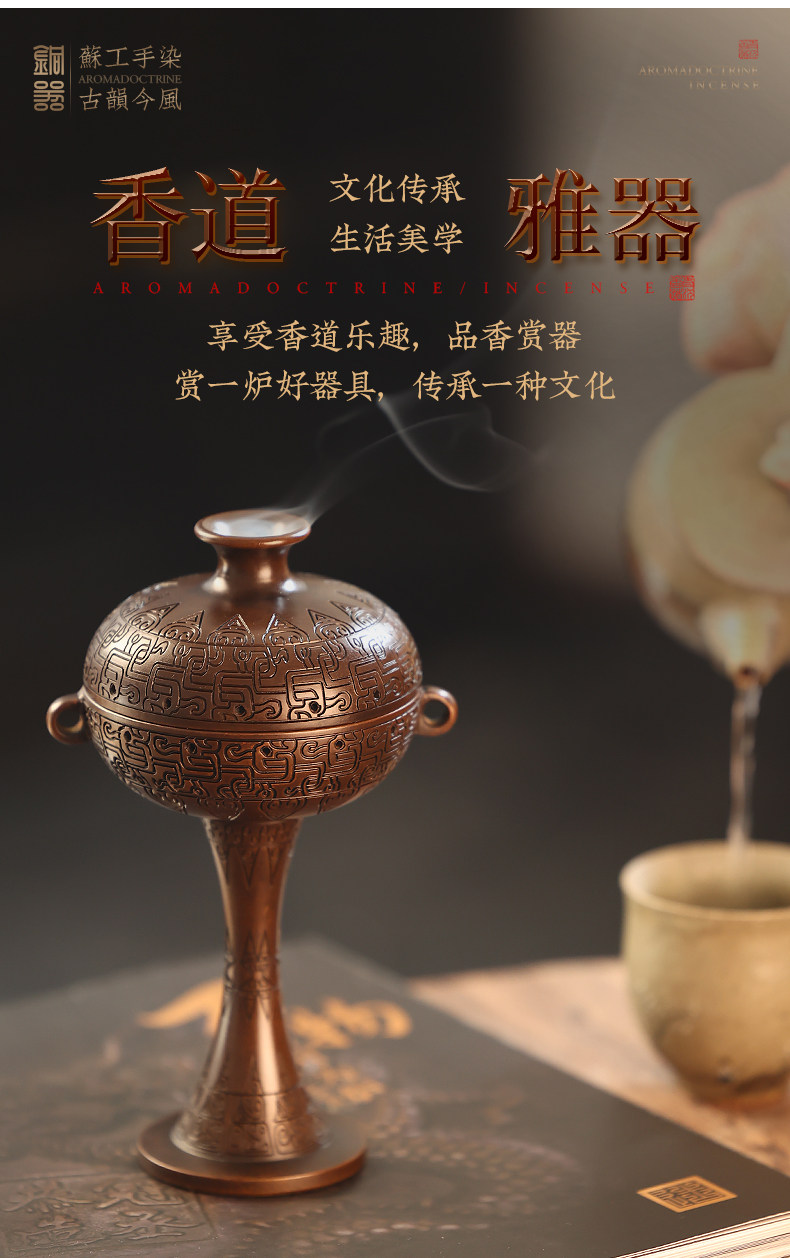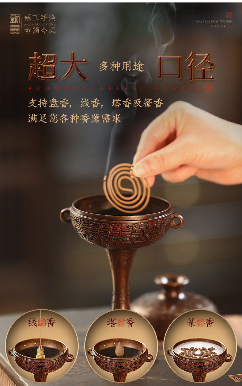 Warring States Period Incense Burner for Home Use, Indoor Incense Burner for Sandalwood and Agarwood, Xuan De Style Incense Burner, Decorative Incense Burner, Pure Copper
