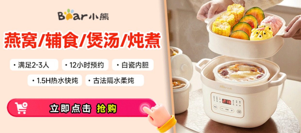 Bear Brand Electric Stew Pot, Water-Sealed Stewing, Multifunctional Household Automatic Ceramic White Porcelain Cooking Machine, Porridge Maker, Soup Pot
