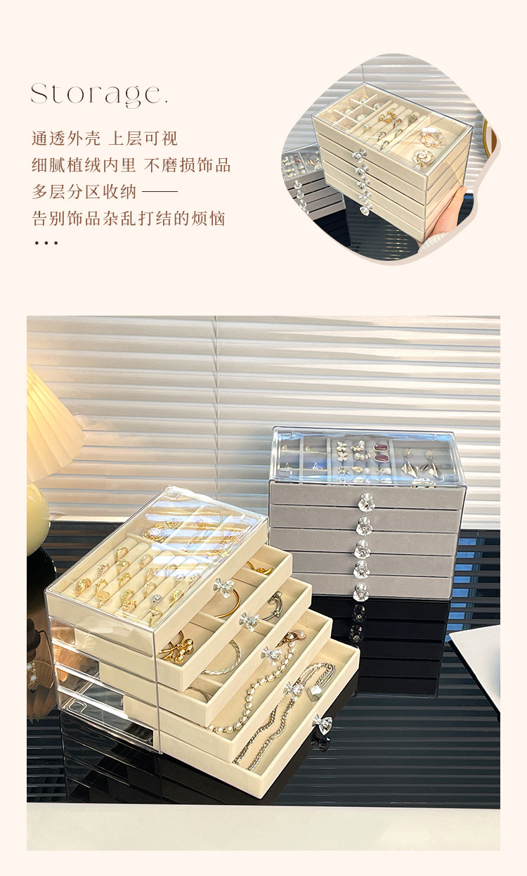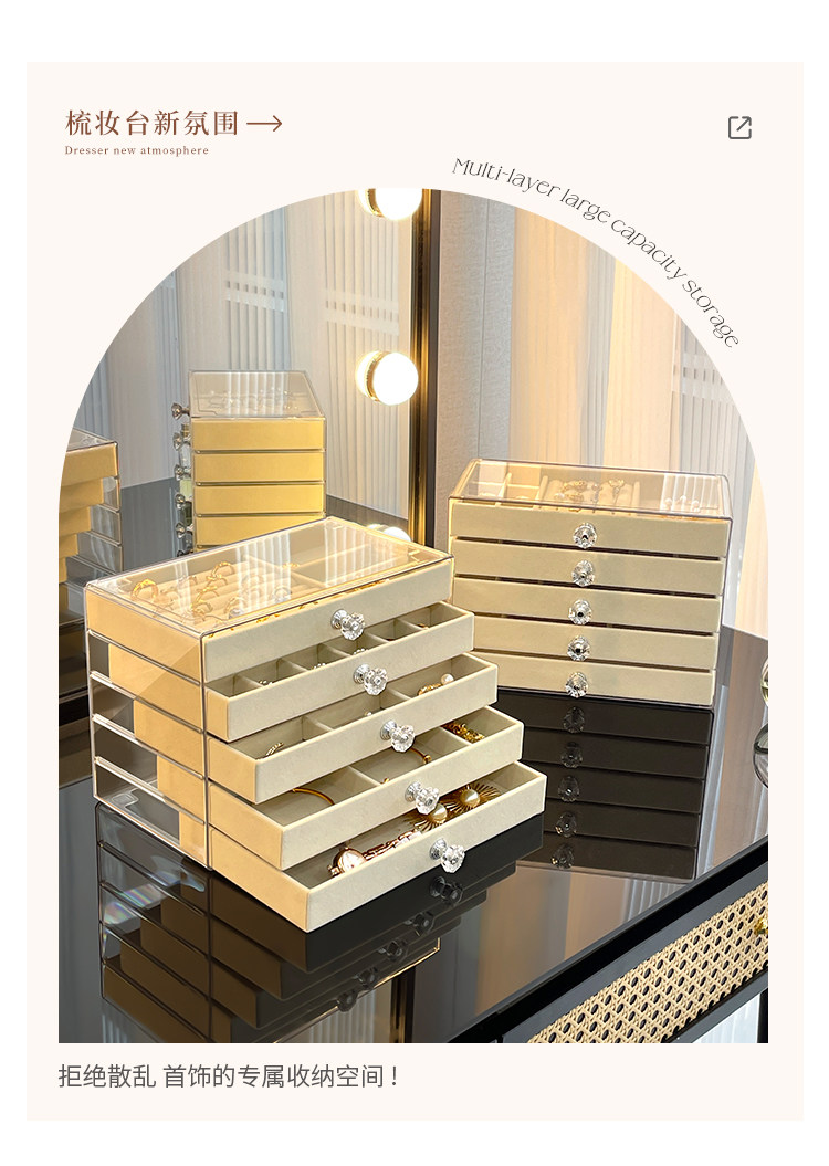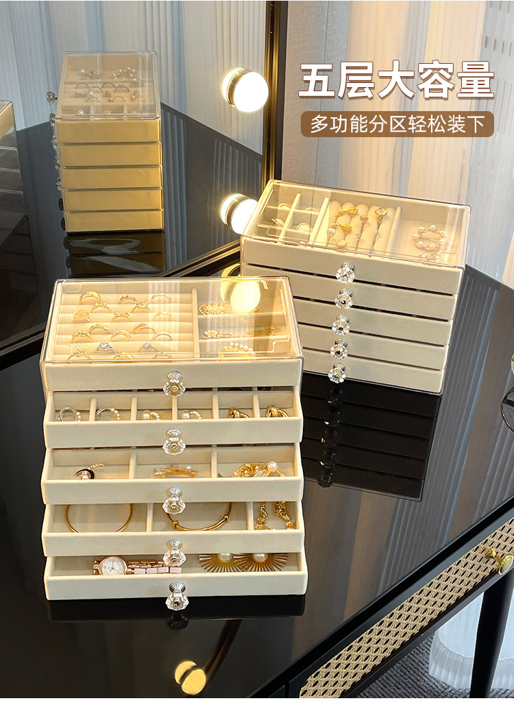 Jewelry Storage Box, High-End and Exquisite, New Drawer-Type Necklace and Earring Multi-Layer Large-Capacity Earring and Hand Jewelry Box