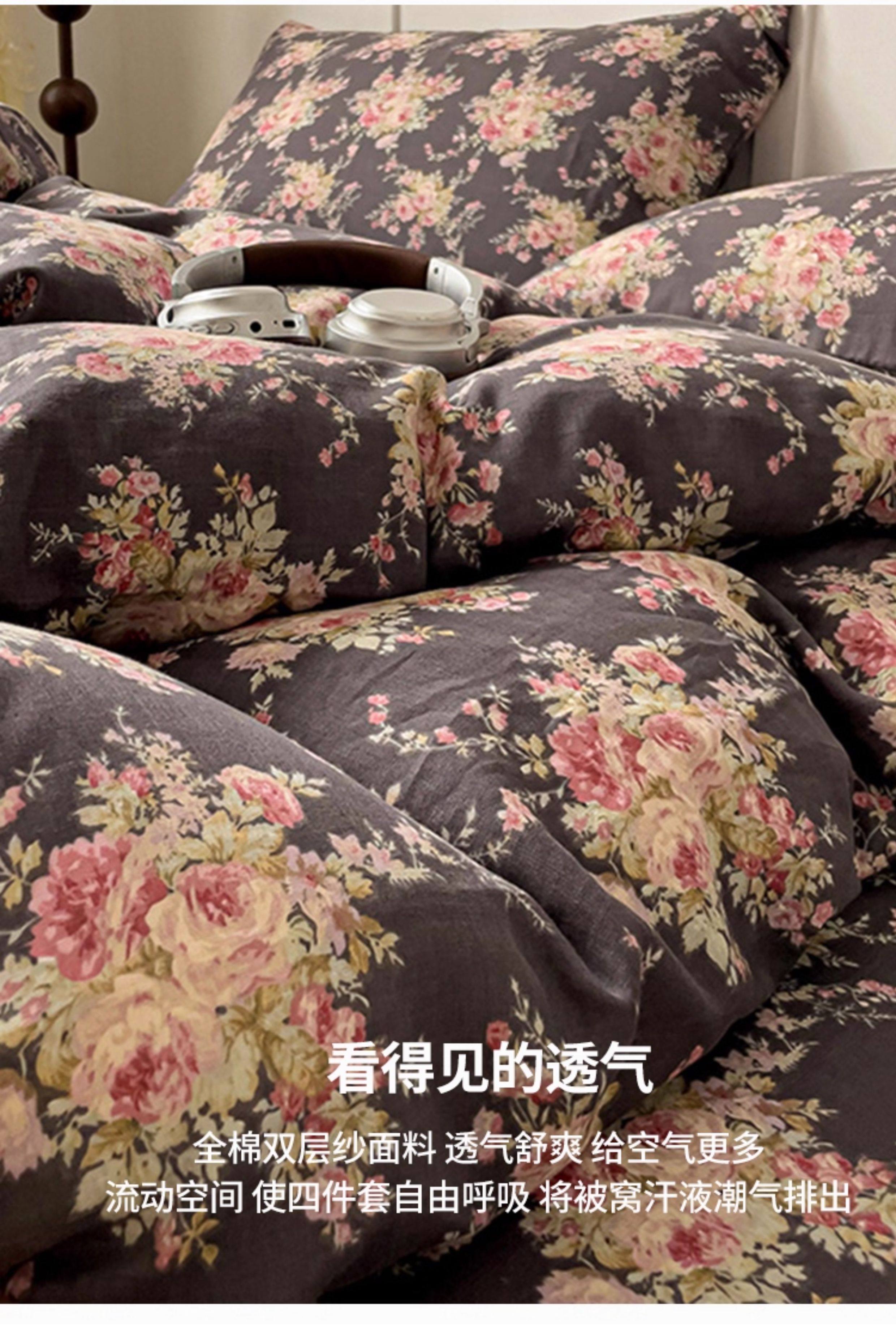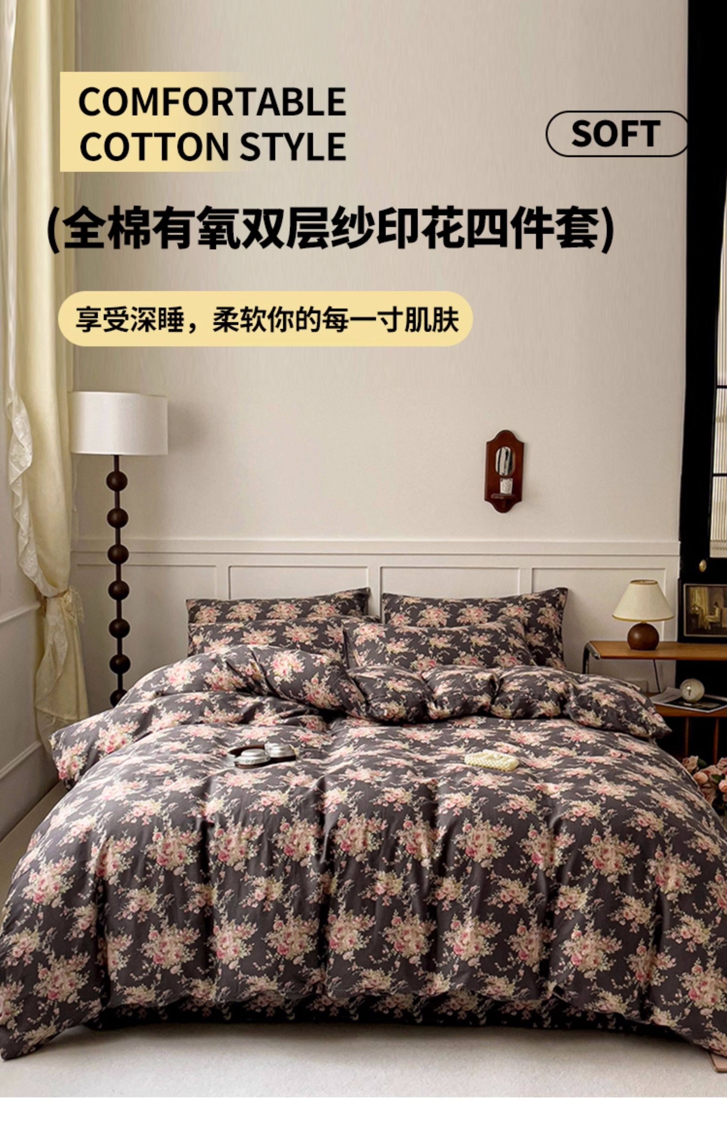 2026 New Product, Pure Cotton Double-Layer Yarn Four-Piece Bedding Set, Simple Bed Sheet, Duvet Cover, Fitted Sheet, 4-Piece Set for Spring