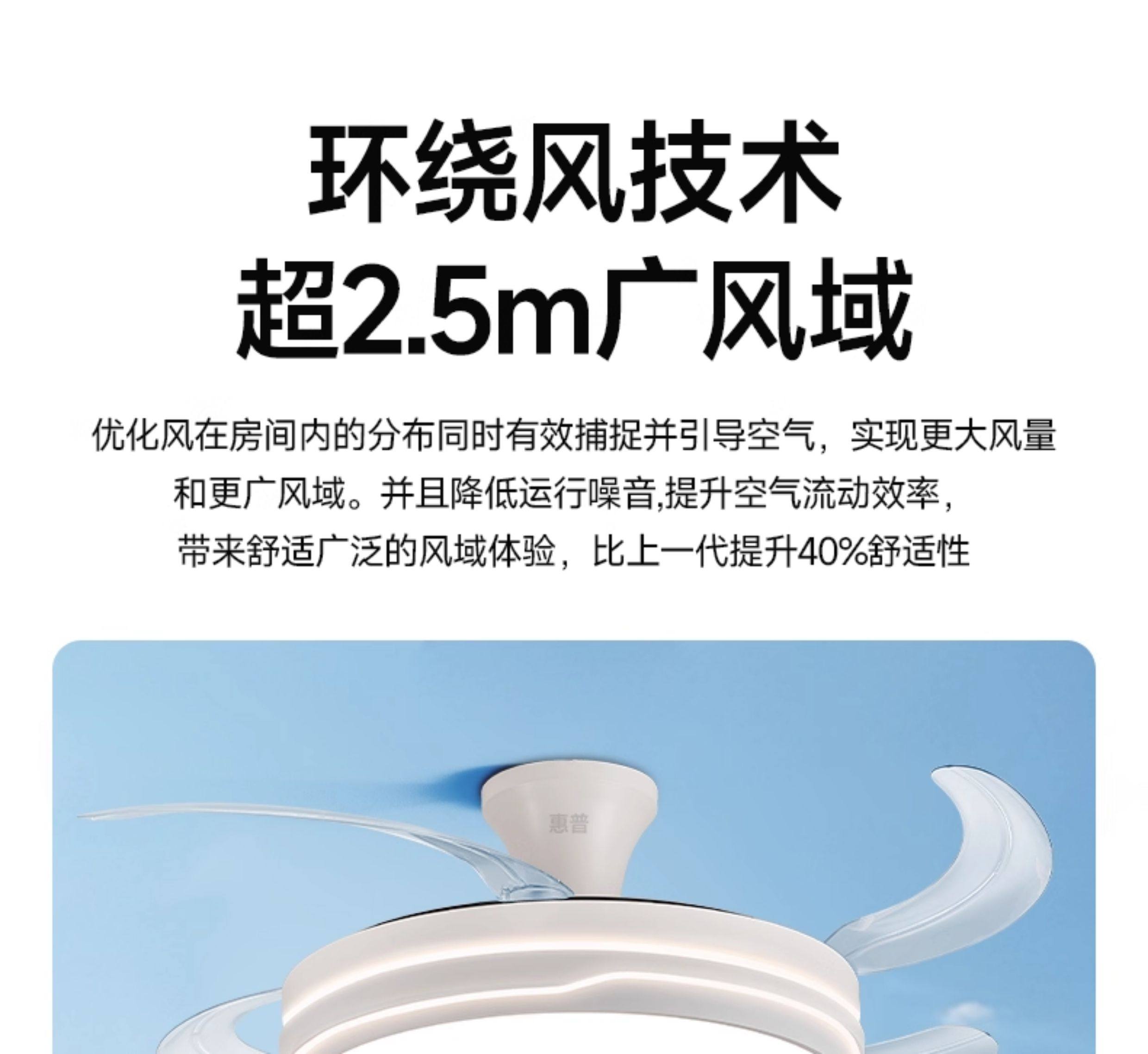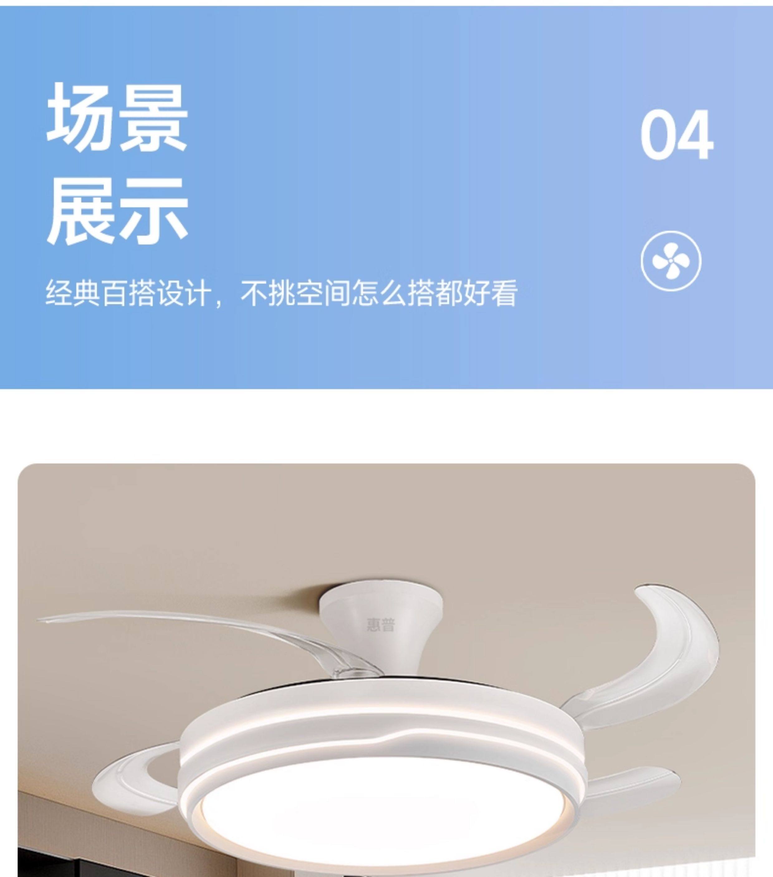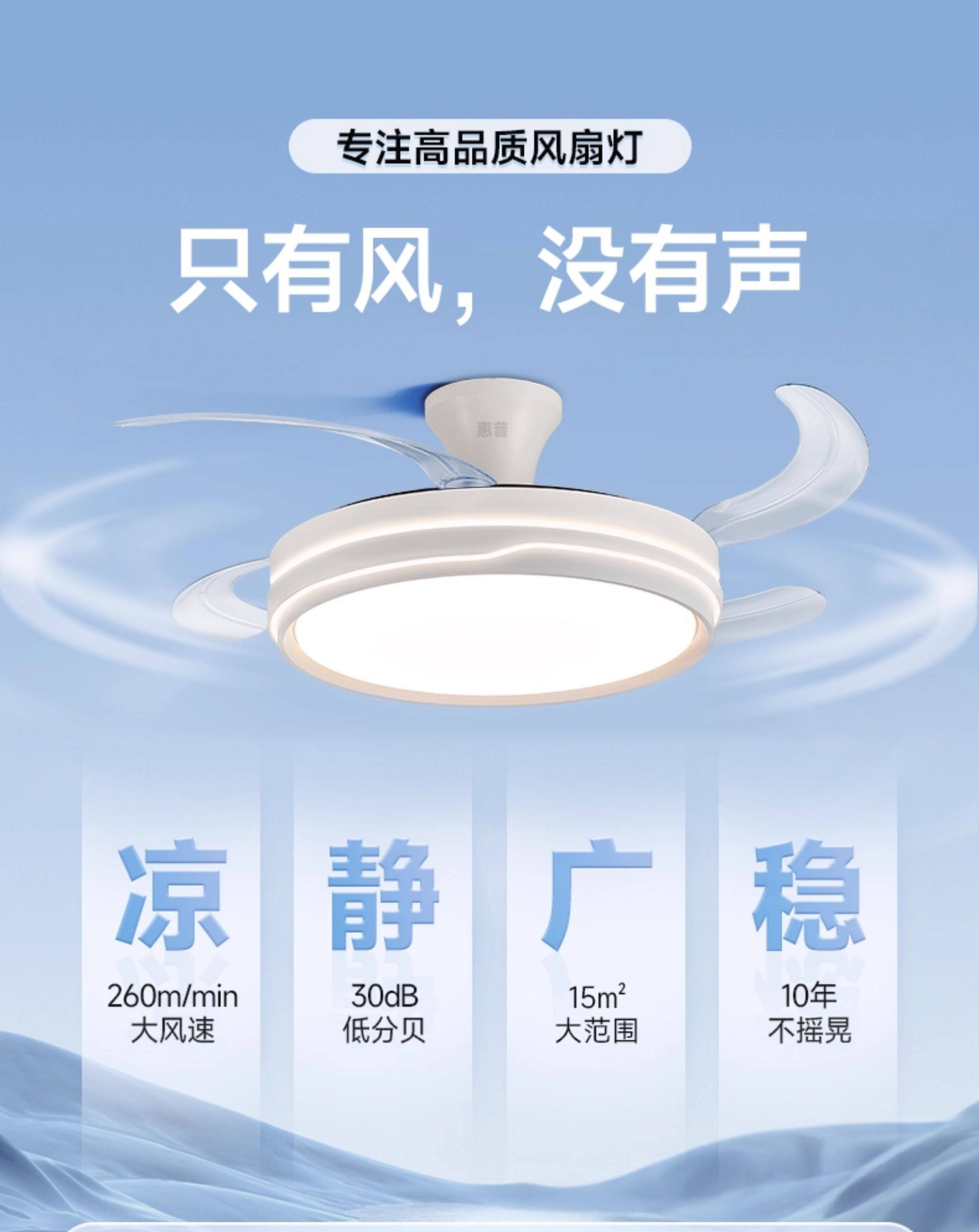Hp Lighting Invisible Fan Light 2025 New Model Ceiling Fan Light for Home Living Room Dining Room Bedroom Electric Fan Chandelier
