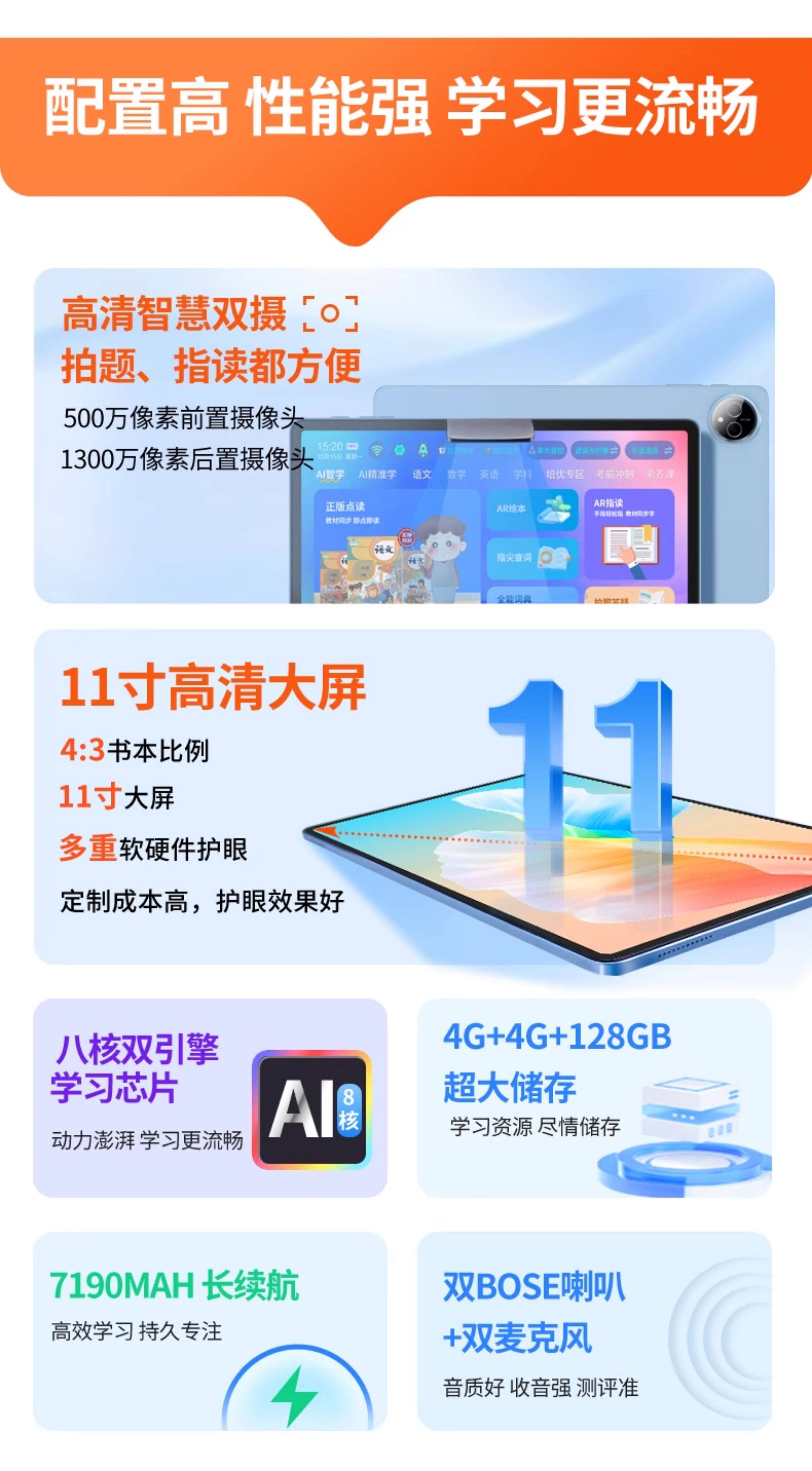 Quick Translate Ai Precision Learning Eye-Protecting Student Tablet Tutoring Machine for Children from Primary School Grade 1 to Middle and High School, Synchronized English Reading Machine, Iflytek Artificial Intelligence Q&A Learning Machine