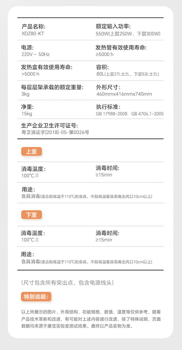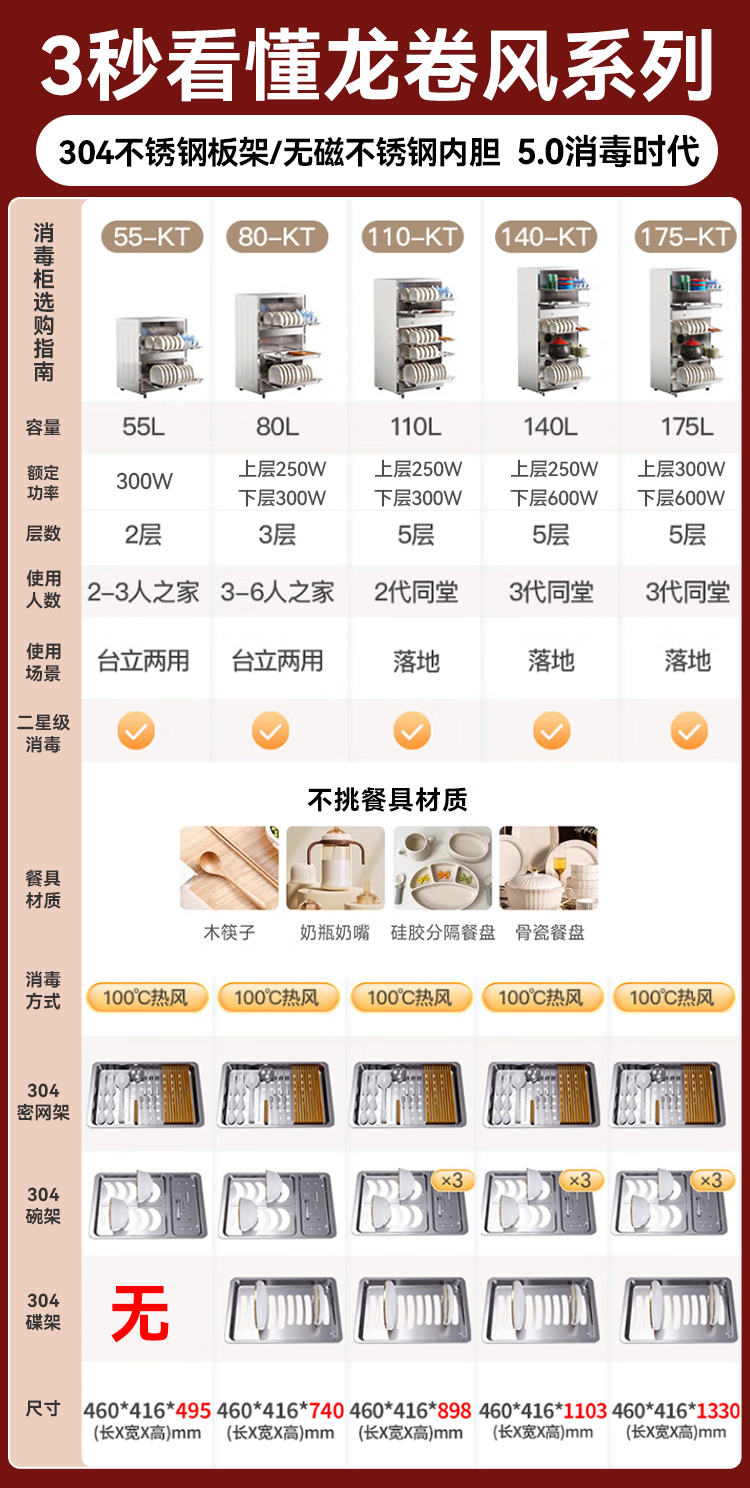 Kangbao Vertical Disinfection Cabinet, 304 Stainless Steel, Small Household Model for Tableware and Baby Bottles, Two-Star New Model Disinfection Cupboard Kt