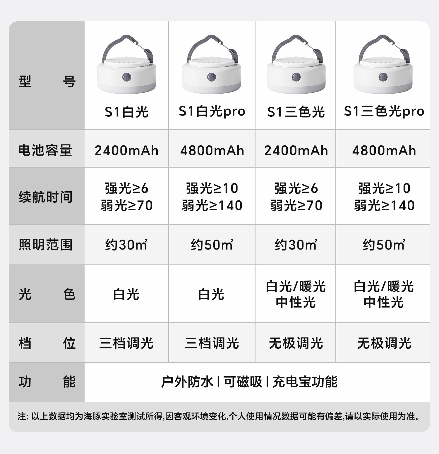| Color Classification | S1 Camping Light Monochrome [6-70H],S1 Camping Light Monochrome-Pro [10-140H],S1 Super Bright Monochrome-Pro+【12-160H】,S1 Camping Light Three Colors [6-70H],S1 Camping Light Three Colors-Pro [10-140H],S1 Camping Light Three Colors-Pro+ [12-160H],S1 Camping Light Monochrome [6-70H] + Charger,S1 Camping Light Monochrome-Pro [10-140H] + Charger,S1 Super Bright Monochrome-Pro+ [12-160H] + Charger,S1 Camping Light Three Colors [6-70H] + Charger,S1 Super Bright Three Colors-Pro [10-140H] + Charger,S1 Super Bright Three Colors-Pro+【12-160H】+Charger |