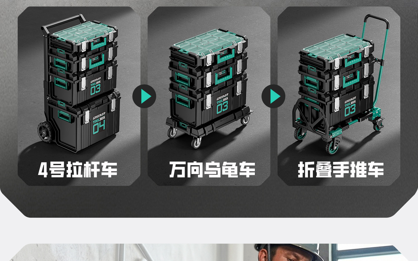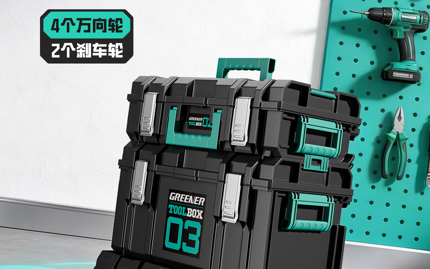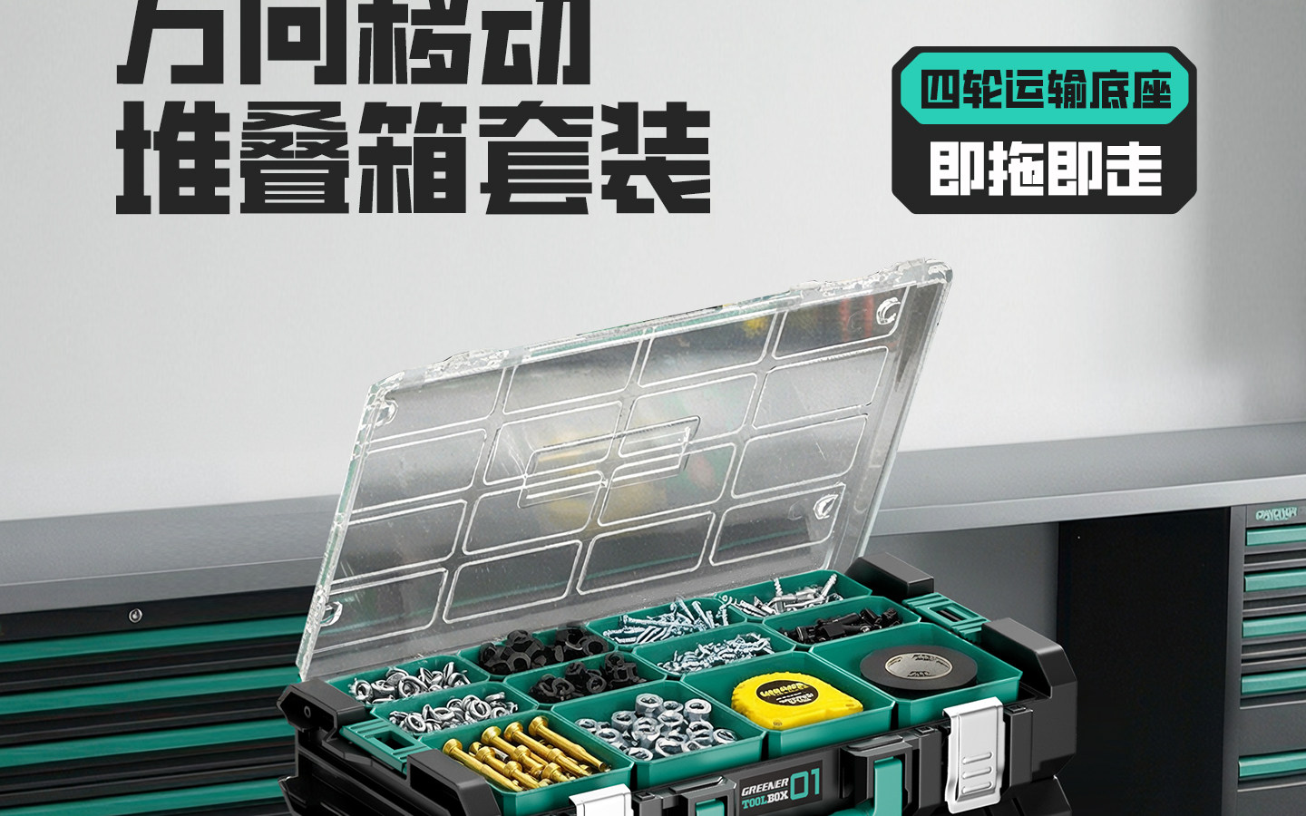 Green Forest Stacking Toolbox Trolley Case Multifunctional Hardware Storage Box Large Capacity Set Wheeled Tool Cart Combination