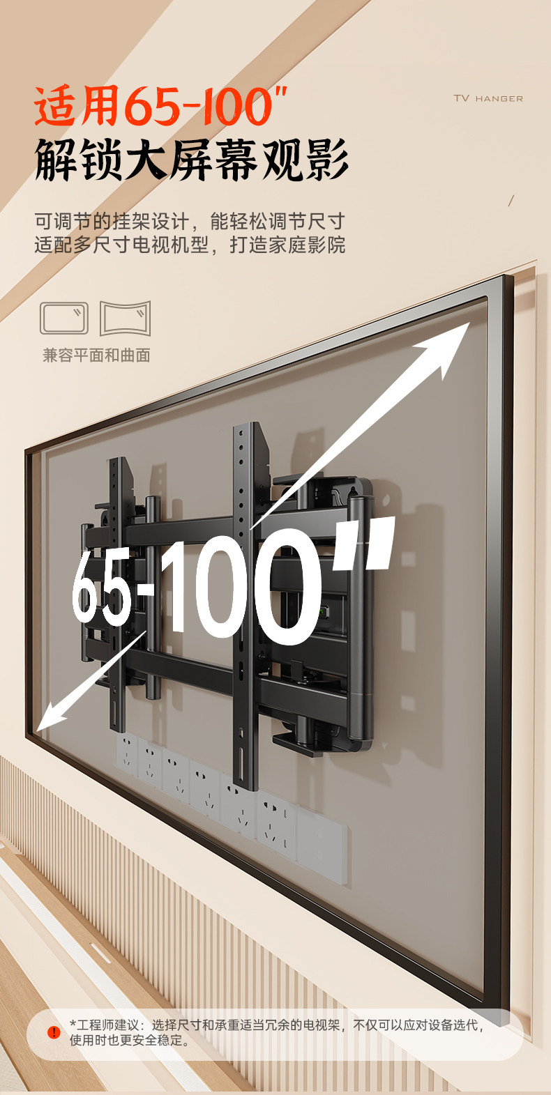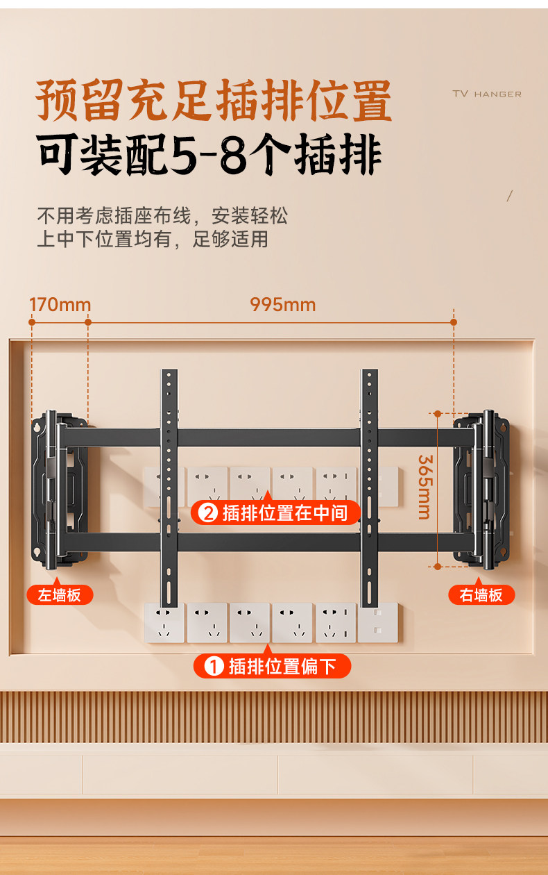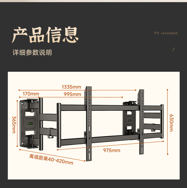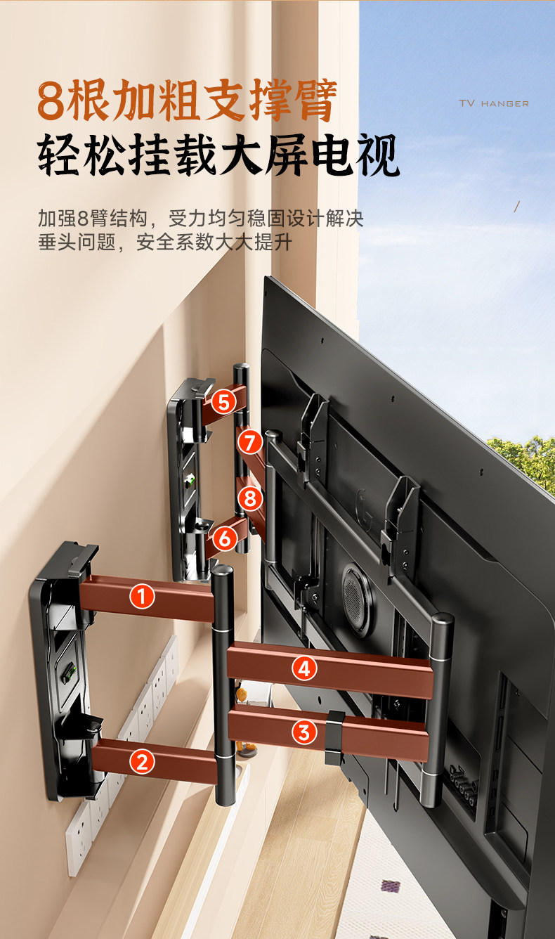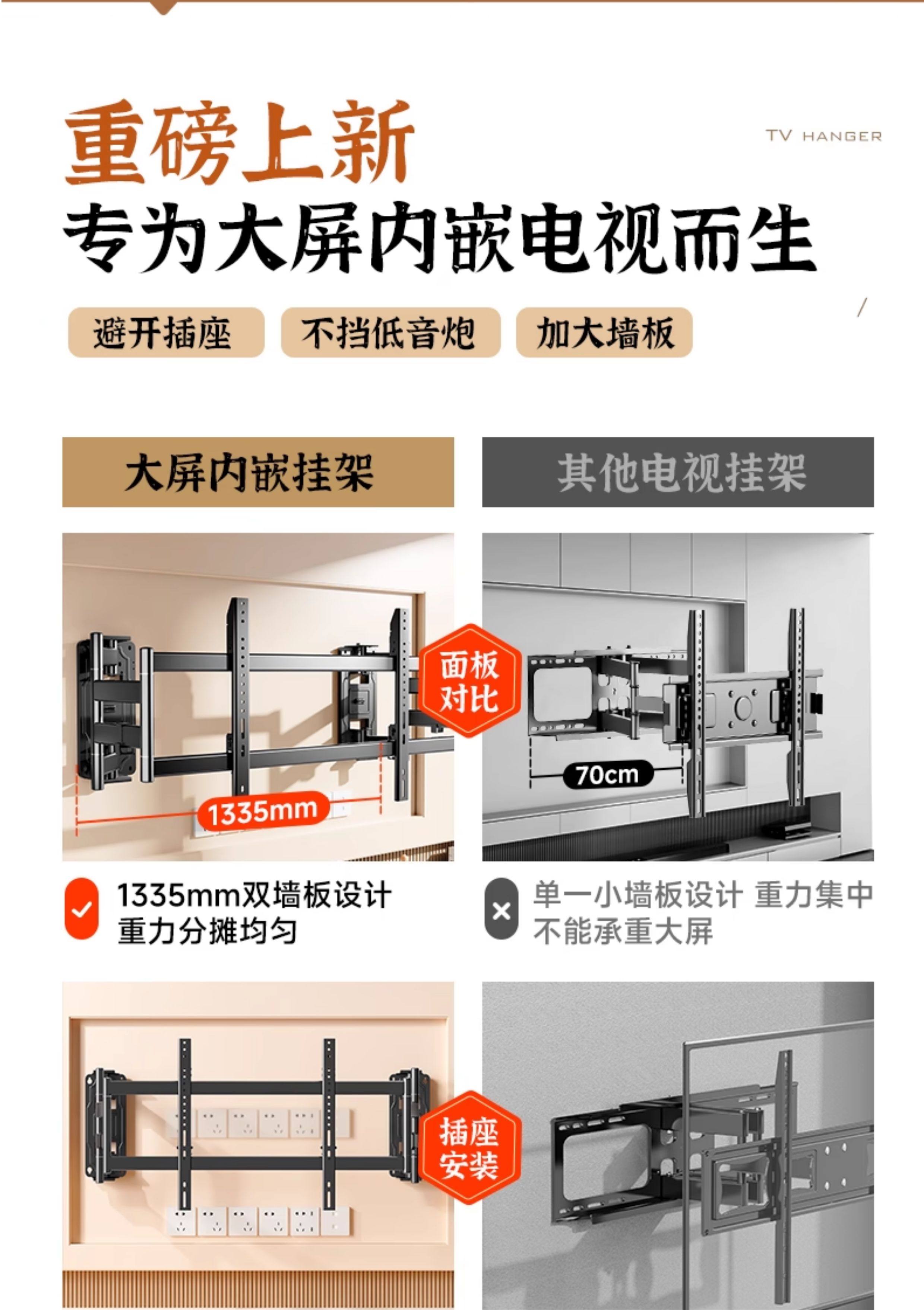 Beishi Ultra-Thin Telescopic Tv Mount Is Suitable for Tcl Thunderbird, Hisense and Other 75, 85, and 98-Inch Built-In Brackets