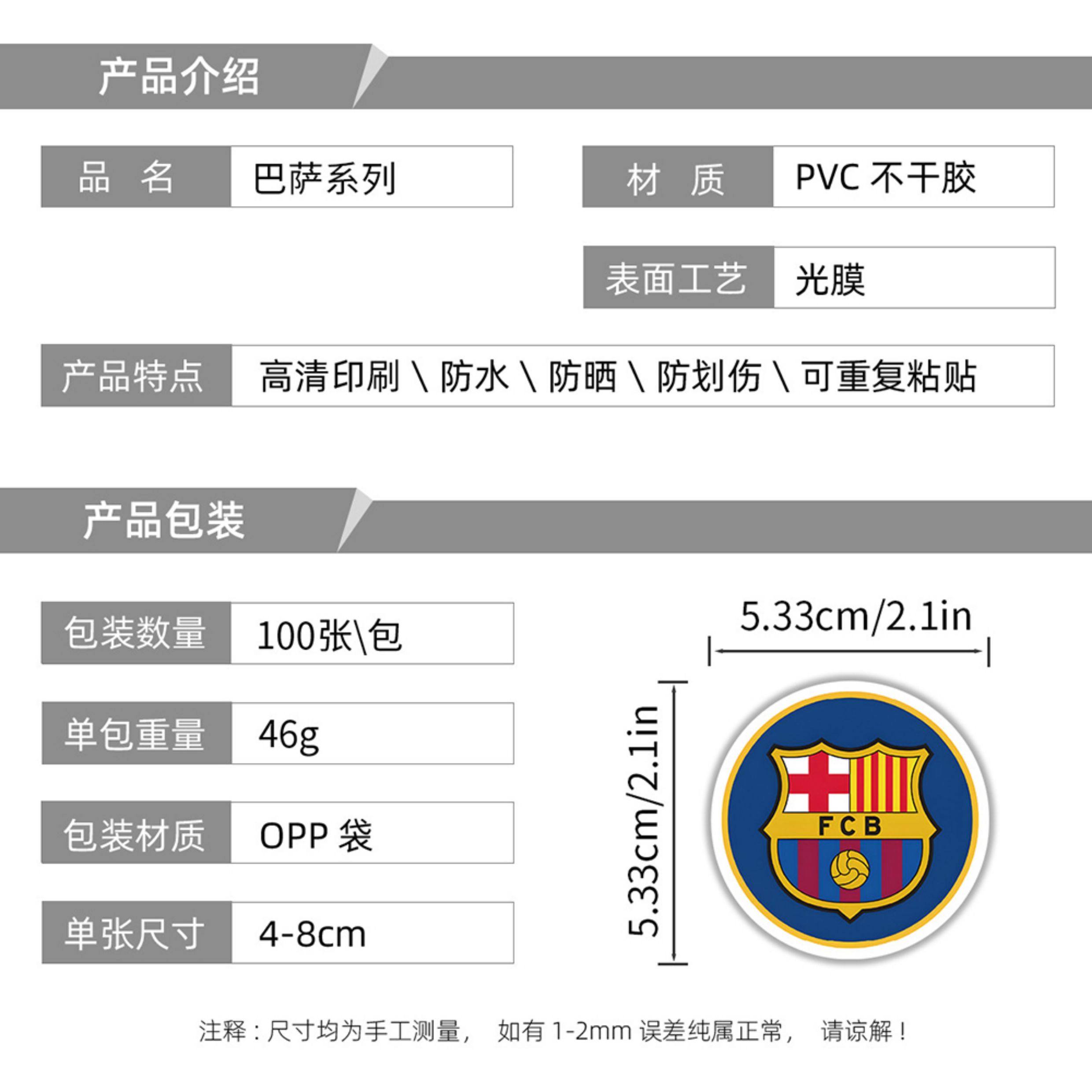 | Color Classification | Hd/Waterproof/100 Pieces of Barcelona Stickers with Adhesive Backing,Hd/Waterproof/With Adhesive 100 Pieces of Barcelona Stickers + Sticker Box,High-Definition/Waterproof/100 Pieces of Barcelona Stickers with Adhesive Backing + 50 Pieces of Random Stickers |