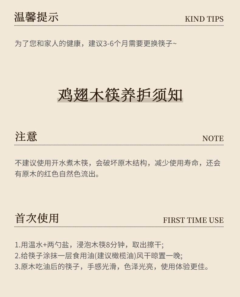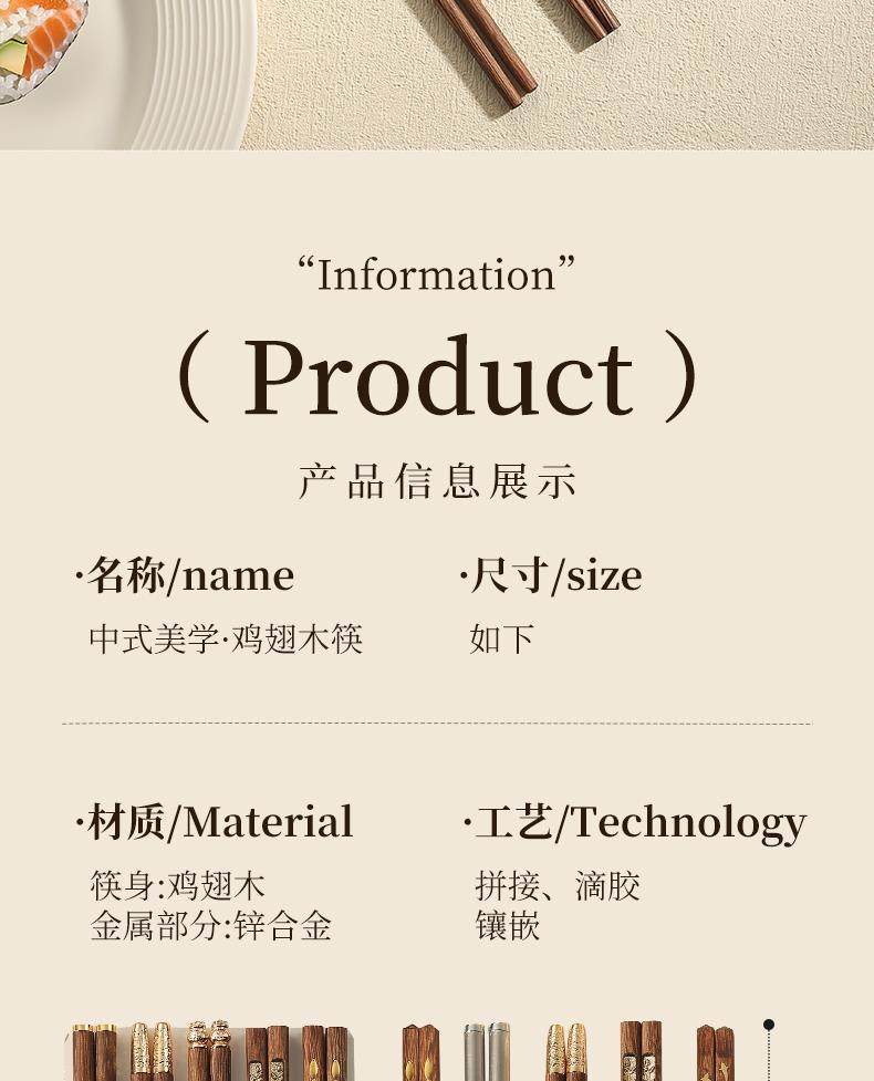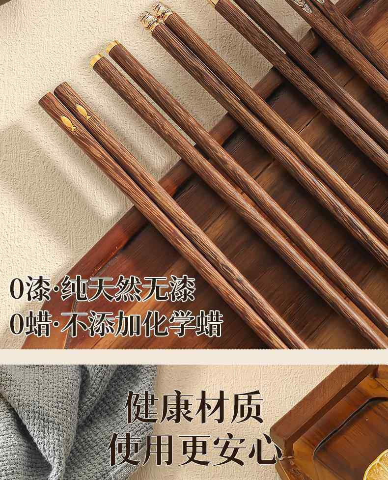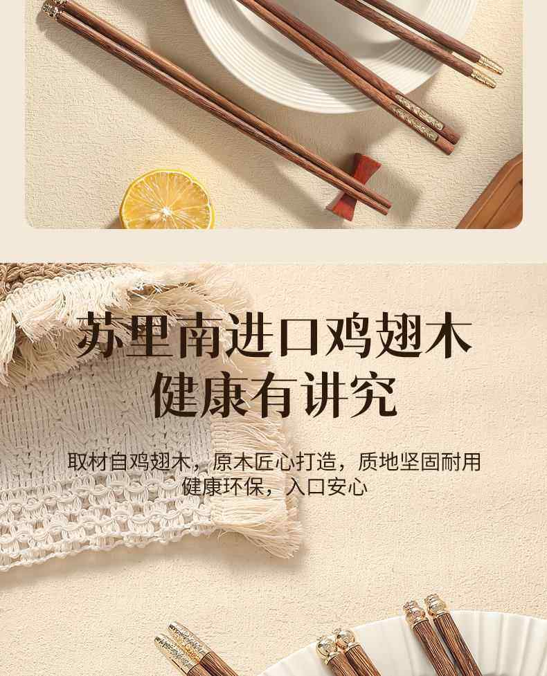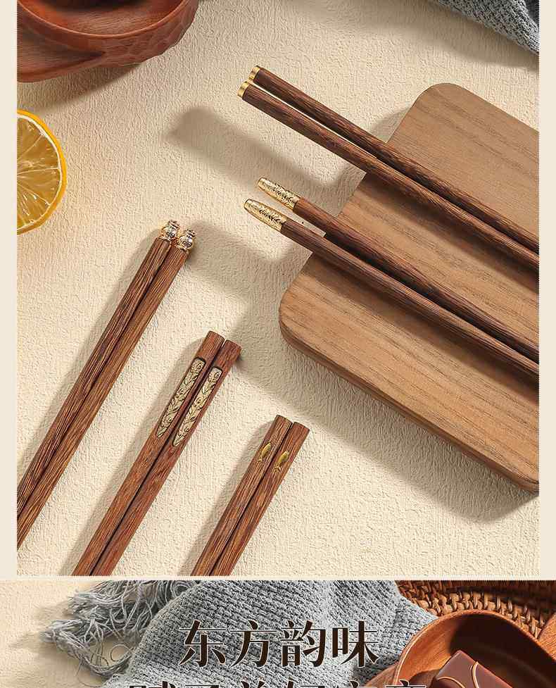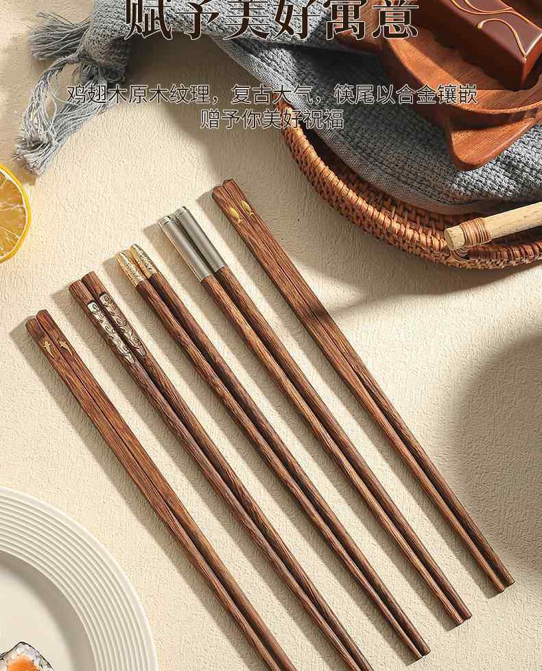 New Chinese-Style Chicken Wing Wood Chopsticks for Home Use, High-End Individual Chopsticks for Family Use, Parent-Child Chopsticks, Solid Wood Family Set