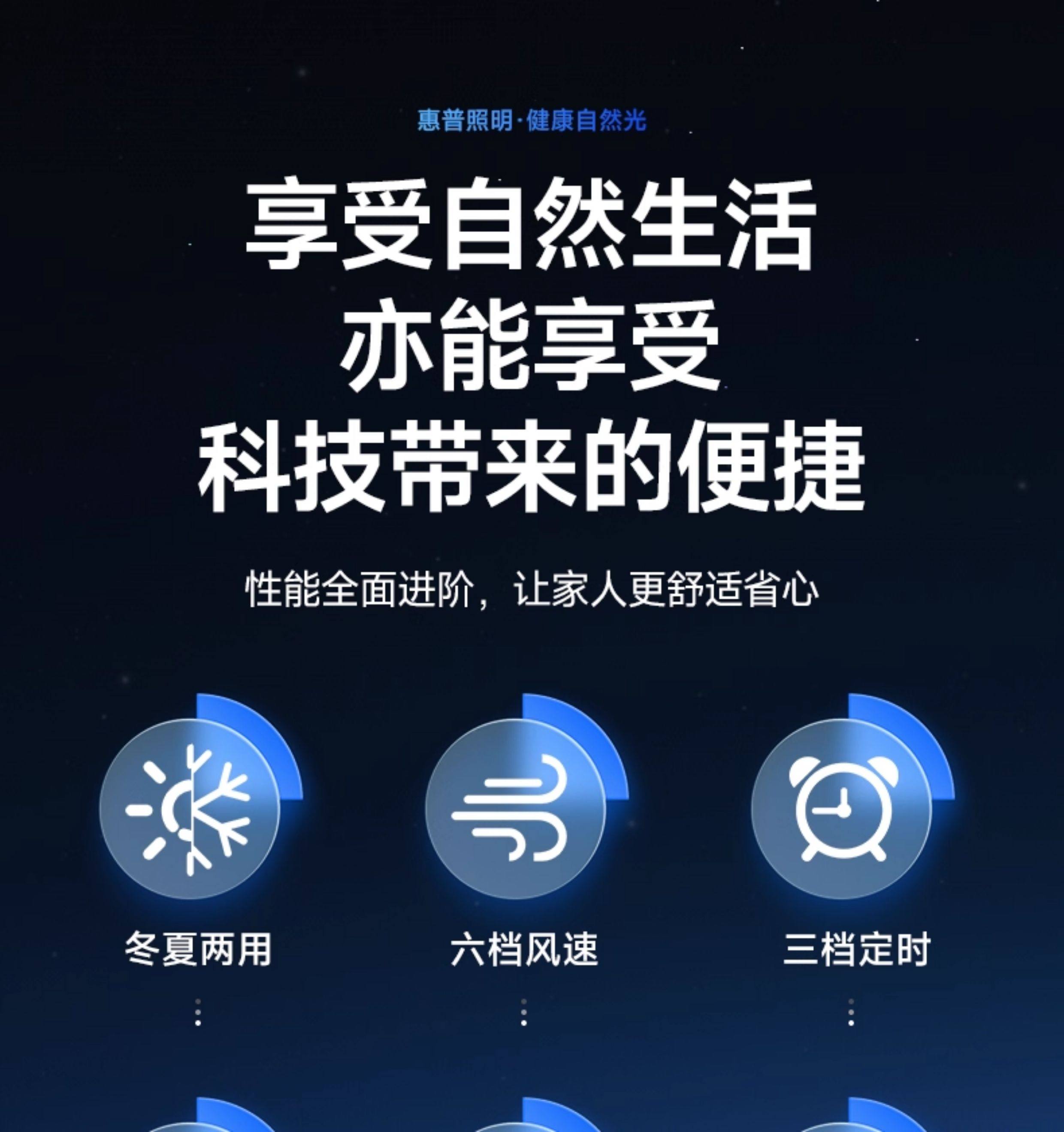 Hp Lighting Fan Lamp 2025 New Model Restaurant Ceiling Lamp Full-Spectrum Eye Protection Lamp Bedroom Lamp Ceiling Fan Lighting