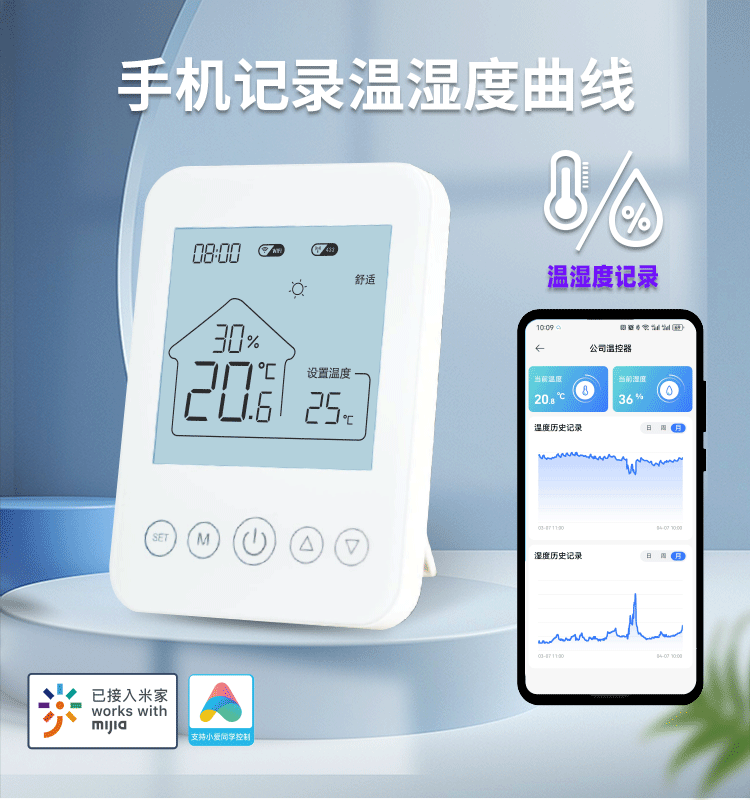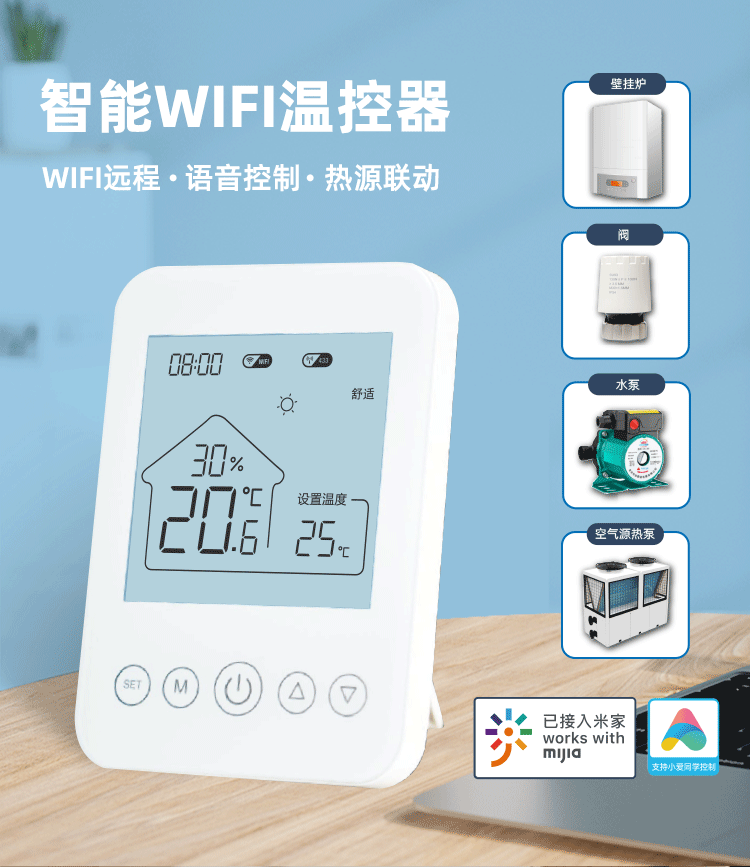 2026 Upgraded Model Gas Wall-Mounted Boiler Thermostat with Mobile Phone Switch and Wifi Control for Underfloor Heating, Already Connected to the Mijia App