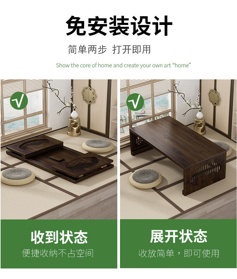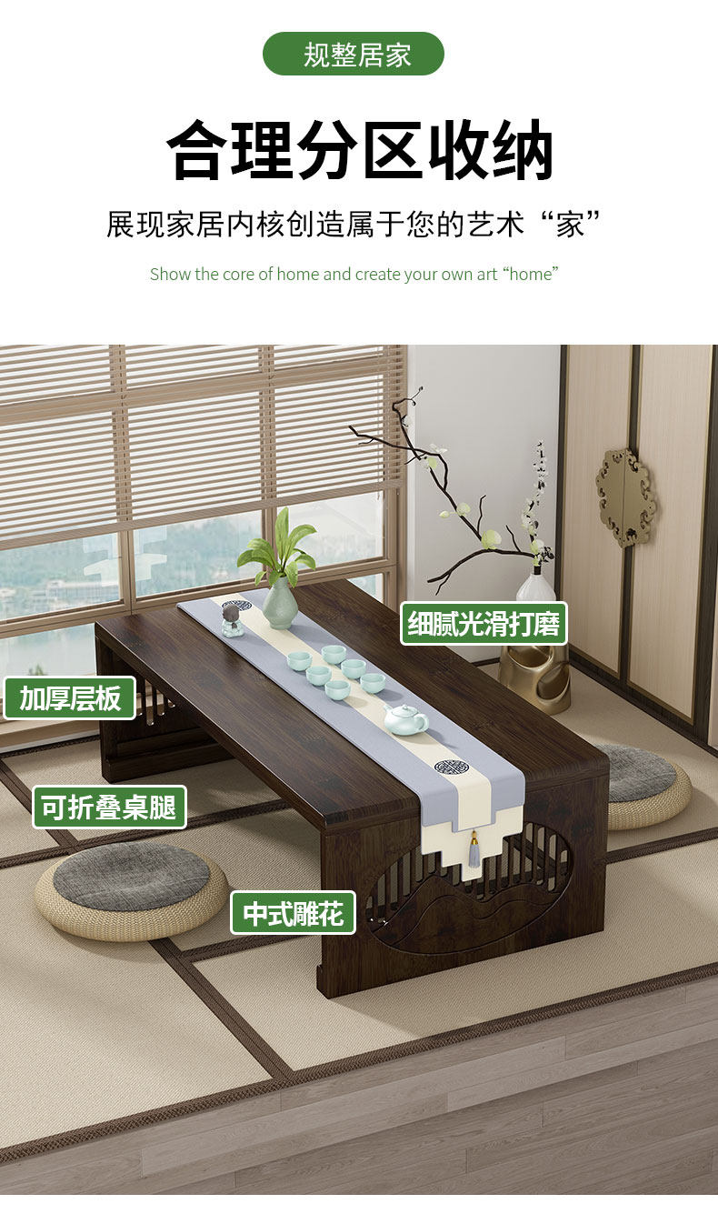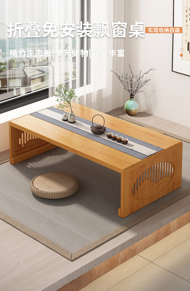 Bay Window Small Table Household Tatami Kang Table High-End Foldableable Small Coffee Table Chinoiserie Non-Solid Wood Floor-Standing Low Table