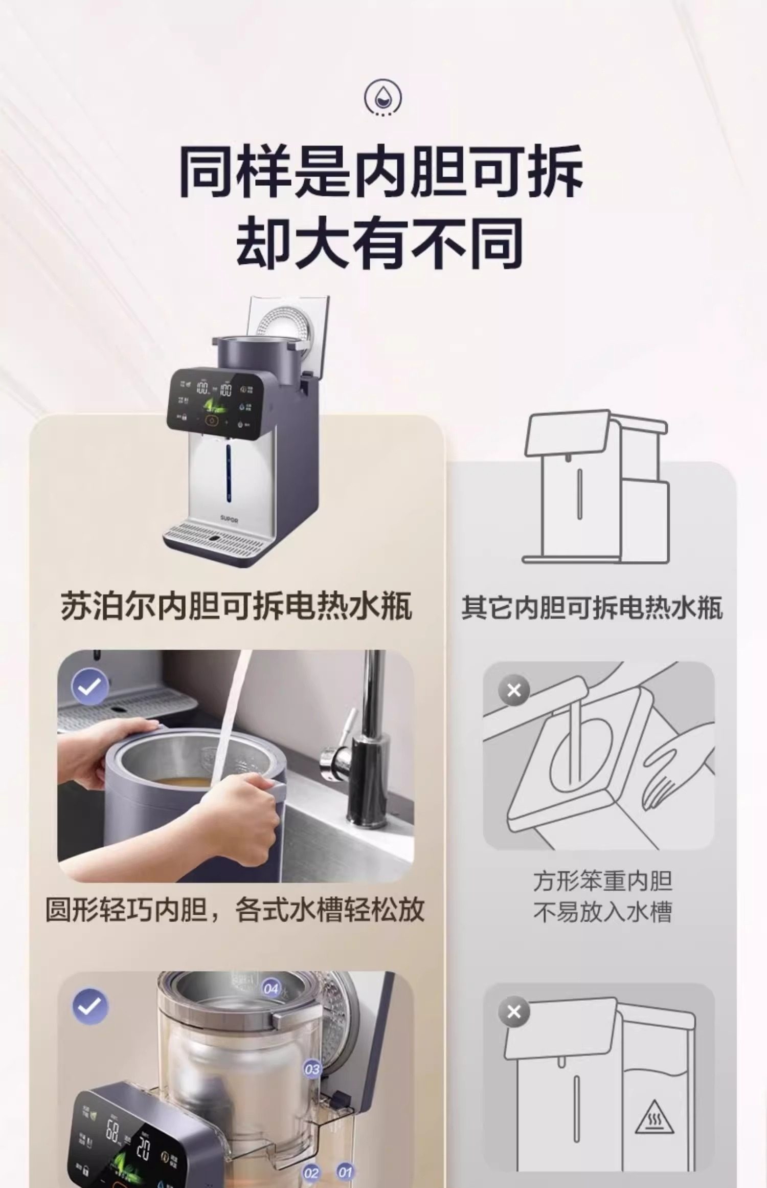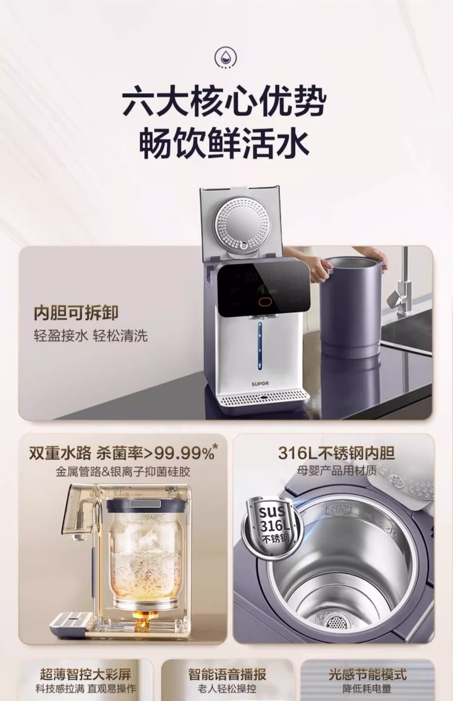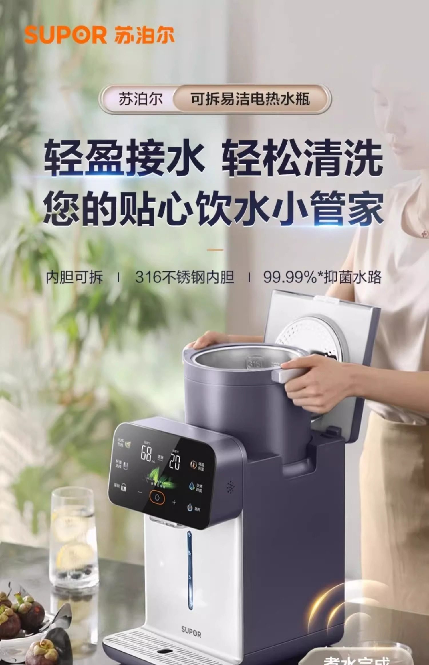 Supor Electric Water Kettle for Home Use, Removable and Washable 316L Stainless Steel Inner Tank, Large Capacity, Antibacterial, Smart Electric Kettle