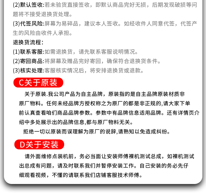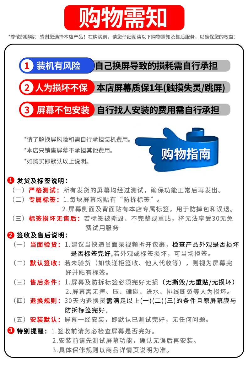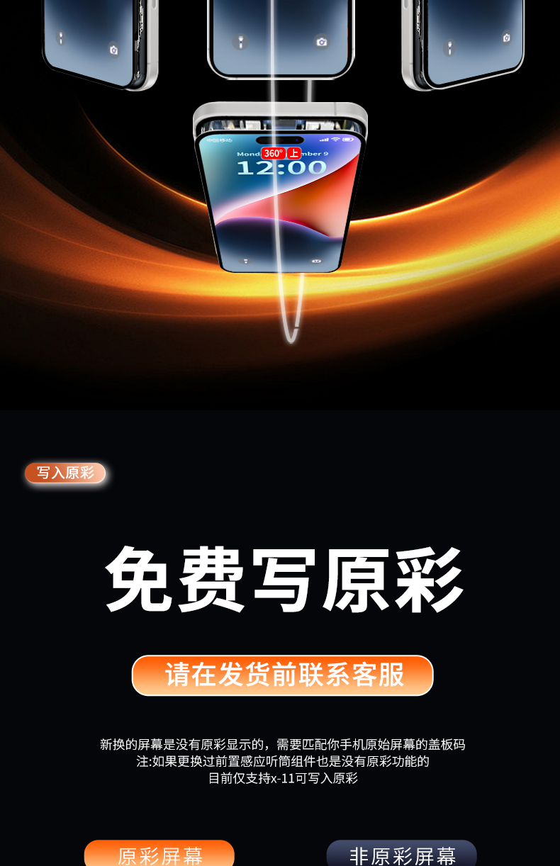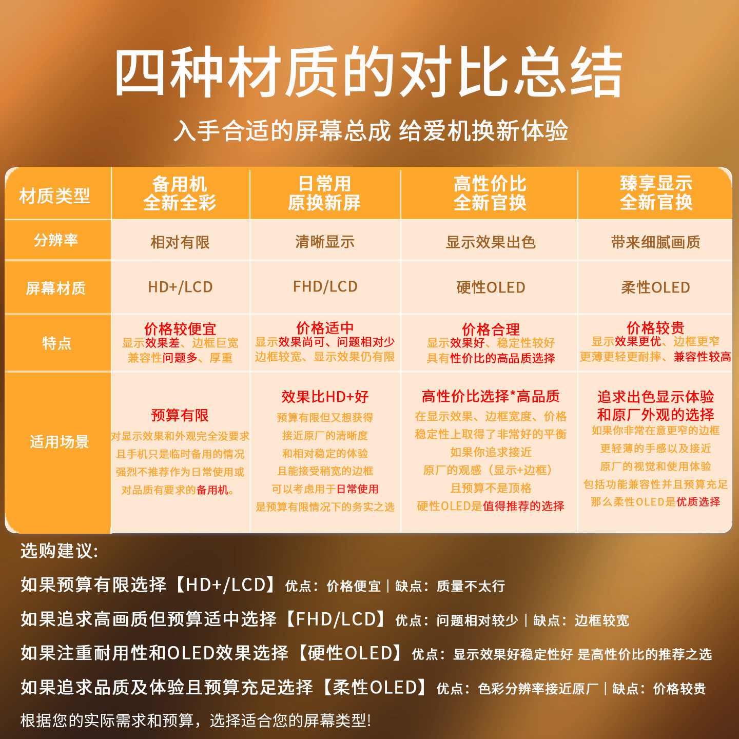 Applicable Mobile Phone Models [Worry-Free After-Sales] Broken Insurance + Tempered Film + Disassembly and Assembly Tool Kit + Tutorial Guidance + 30-Day Trial + 5-Year Warranty,【Important Notice】For True Tone Display Replacements, Please Contact Our Online Customer Service to Provide the Cover Plate Code before Shipment,[Popular Science] Lcd|Oled Screen Material Differences,[Version Selection Guide] Must Read before Purchasing✔90% of Users Choose to Replace the Oled Screen,[Add to Favorites + Add to Cart] Enjoy Fast Delivery✈Consult Customer Service to Enjoy Dual Charging Heads,[Add to Favorites + Add to Cart] Contact Customer Service★Enjoy the Four-In-One Super Fast Charging Data Cable★1m or so,X Screen [New Full Color Hd+/Lcd] Guaranteed if Broken + Tempered Film + Disassembly and Assembly Tool Kit + Tutorial Guidance + 5-Year Warranty,X Screen [New Original Replacement Screen Fhd/Lcd] Guaranteed if Broken + Tempered Film + Disassembly and Assembly Tool Kit + Tutorial Guidance + 5-Year Warranty,X Screen [New Official Replacement Hard Oled] Guaranteed if Broken + Tempered Film + Disassembly and Assembly Tool Kit + Tutorial Guidance + 5-Year Warranty,Xr Screen [New Full-Color Hd+/Lcd] Guaranteed if Broken + Tempered Film + Disassembly and Assembly Tool Kit + Tutorial Guidance + 5-Year Warranty,Xr Screen [New Original Replacement Screen Fhd/Lcd] Guaranteed if Broken + Tempered Film + Disassembly and Assembly Tool Kit + Tutorial Guidance + 5-Year Warranty,XS Screen [New Full Color Hd+/Lcd] Guaranteed if Broken + Tempered Film + Disassembly and Assembly Tool Kit + Tutorial Guidance + 5-Year Warranty,XS Screen [New Original Replacement Screen Fhd/Lcd] Guaranteed if Broken + Tempered Film + Disassembly and Assembly Tool Kit + Tutorial Guidance + 5-Year Warranty,XS Screen [New Official Replacement Hard Oled] Guaranteed if Broken + Tempered Film + Disassembly and Assembly Tool Kit + Tutorial Guidance + 5-Year Warranty,XS Max Screen [New Full Color Hd+/Lcd] Guaranteed if Broken + Tempered Film + Disassembly and Assembly Tool Kit + Tutorial Guidance + 5-Year Warranty,XS Max Screen [New Original Replacement Screen Fhd/Lcd] Guaranteed if Broken + Tempered Film + Disassembly and Assembly Tool Kit + Tutorial Guidance + 5-Year Warranty,XS Max Screen [New Official Replacement Rigid Oled] Guaranteed if Broken + Tempered Film + Disassembly and Assembly Tool Kit + Tutorial Guidance + 5-Year Warranty,11-Inch Screen [Brand New Full Color Hd+/Lcd] Shatterproof Coverage + Tempered Glass Screen Protector + Disassembly Kit + Installation Guide + 5-Year Warranty,11-Inch Screen [Brand New, Original Replacement Fhd/Lcd] - Drop Protection Guaranteed + Tempered Glass Screen Protector + Disassembly Kit + Installation Guide + 5-Year Warranty,11Pro Screen [New Full Color Hd+/Lcd] Guaranteed if Broken + Tempered Film + Disassembly and Assembly Tool Kit + Tutorial Guidance + 5-Year Warranty,11Pro Screen [New Original Replacement Screen Fhd/Lcd] Guaranteed if Broken + Tempered Film + Disassembly and Assembly Tool Kit + Tutorial Guidance + 5-Year Warranty,11Pro Screen [New Official Replacement Rigid Oled] Guaranteed if Broken + Tempered Film + Disassembly and Assembly Tool Kit + Tutorial Guidance + 5-Year Warranty,11Pro Screen [New Official Replacement Flexible Oled] Guaranteed if Broken + Tempered Film + Disassembly and Assembly Tool Kit + Tutorial Guidance + 5-Year Warranty,11Pro Max Screen [New Full Color Hd+/Lcd] Guaranteed if Broken + Tempered Film + Disassembly and Assembly Tool Kit + Tutorial Guidance + 5-Year Warranty,11Pro Max Screen [New Original Replacement Screen Fhd/Lcd] Guaranteed if Broken + Tempered Film + Disassembly and Assembly Tool Kit + Tutorial Guidance + 5-Year Warranty,11 Pro Max Screen [Brand New Official Replacement, Rigid Oled] - Drop Protection Guaranteed + Tempered Glass Screen Protector + Disassembly Kit + Installation Guide + 5-Year Warranty,11 Pro Max Screen [Brand New Official Replacement Flexible Oled] Drop Protection + Tempered Glass Screen Protector + Disassembly Kit + Installation Guide + 5-Year Warranty,12-Inch Screen [Brand New Full Hd+/Lcd] Shatterproof Coverage + Tempered Glass Screen Protector + Disassembly Kit + Installation Guide + 5-Year Warranty,12-Inch Screen [Brand New, Original Replacement Fhd/Lcd] - Drop Protection Guaranteed + Tempered Glass Screen Protector + Disassembly Kit + Installation Guide + 5-Year Warranty,12-Inch Screen [Brand New Official Replacement, Rigid Oled] Drop Protection + Tempered Glass Screen Protector + Disassembly Kit + Installation Guide + 5-Year Warranty,12-Inch Screen [Brand New Official Replacement Flexible Oled] Drop Protection + Tempered Glass Screen Protector + Disassembly Kit + Installation Guide + 5-Year Warranty,12Pro Screen [New Full Color Hd+/Lcd] Guaranteed if Broken + Tempered Film + Disassembly and Assembly Tool Kit + Tutorial Guidance + 5-Year Warranty,12Pro Screen [New Original Replacement Screen Fhd/Lcd] Guaranteed if Broken + Tempered Film + Disassembly and Assembly Tool Kit + Tutorial Guidance + 5-Year Warranty,12 Pro Screen [Brand New Official Replacement, Rigid Oled] Drop Protection + Tempered Glass Screen Protector + Disassembly Kit + Installation Guide + 5-Year Warranty,12Pro Screen [New Official Replacement Flexible Oled] Guaranteed if Broken + Tempered Film + Disassembly and Assembly Tool Kit + Tutorial Guidance + 5-Year Warranty,12Pro Max Screen [New Full Color Hd+/Lcd] Guaranteed if Broken + Tempered Film + Disassembly and Assembly Tool Kit + Tutorial Guidance + 5-Year Warranty,12 Pro Max Screen [Brand New Original Replacement Fhd/Lcd] - Drop Protection Guaranteed + Tempered Glass Screen Protector + Disassembly Kit + Installation Guide + 5-Year Warranty,12 Pro Max Screen [Brand New Official Replacement, Rigid Oled] - Drop Protection Guaranteed + Tempered Glass Screen Protector + Disassembly Kit + Installation Guide + 5-Year Warranty,12 Pro Max Screen [Brand New Official Replacement Flexible Oled] Drop Protectio