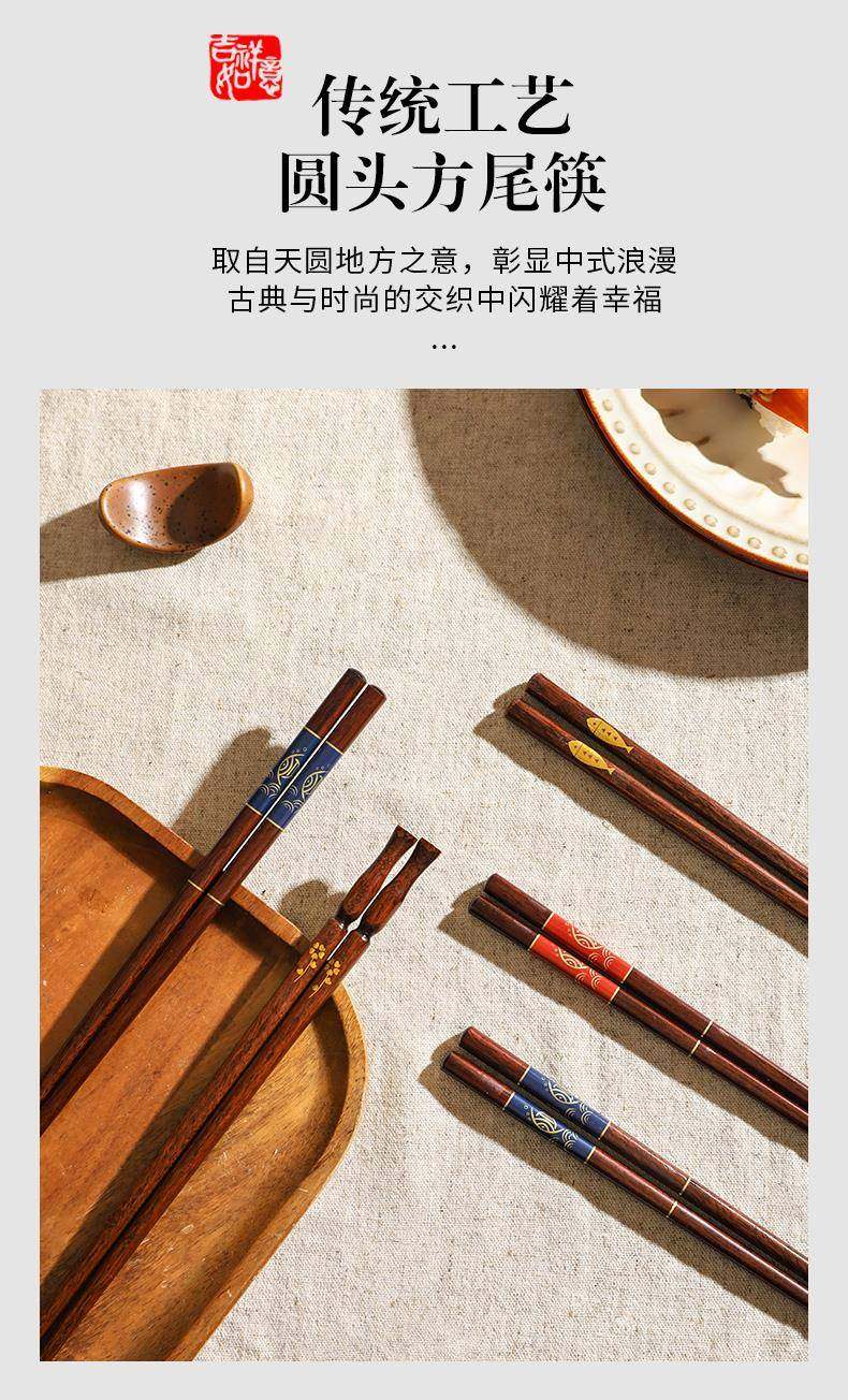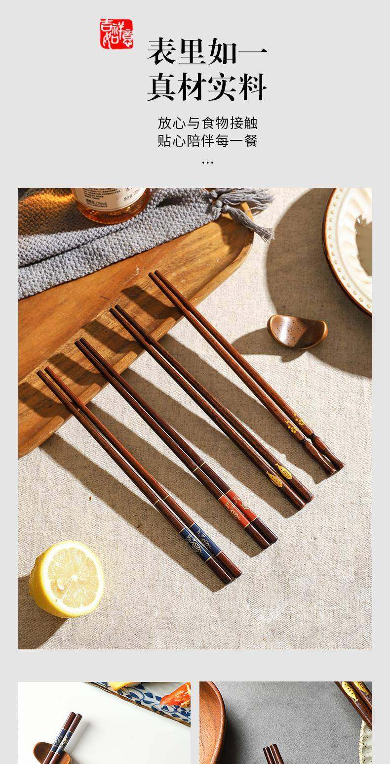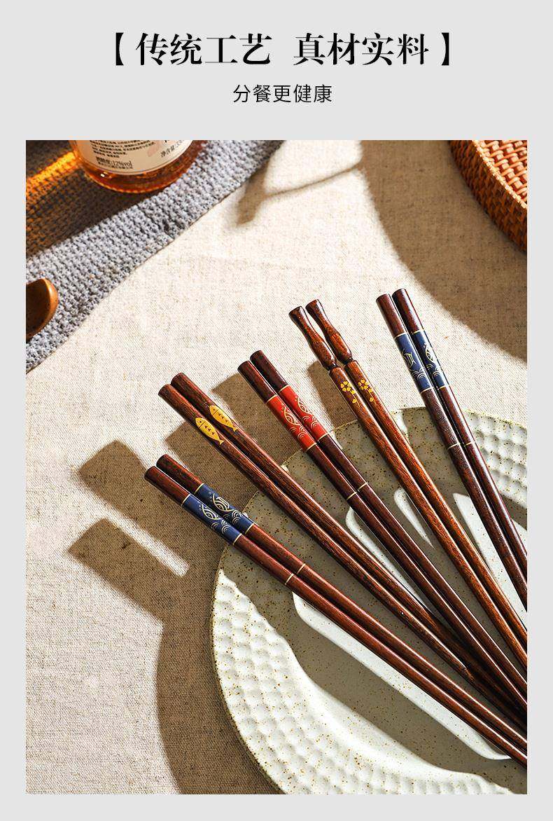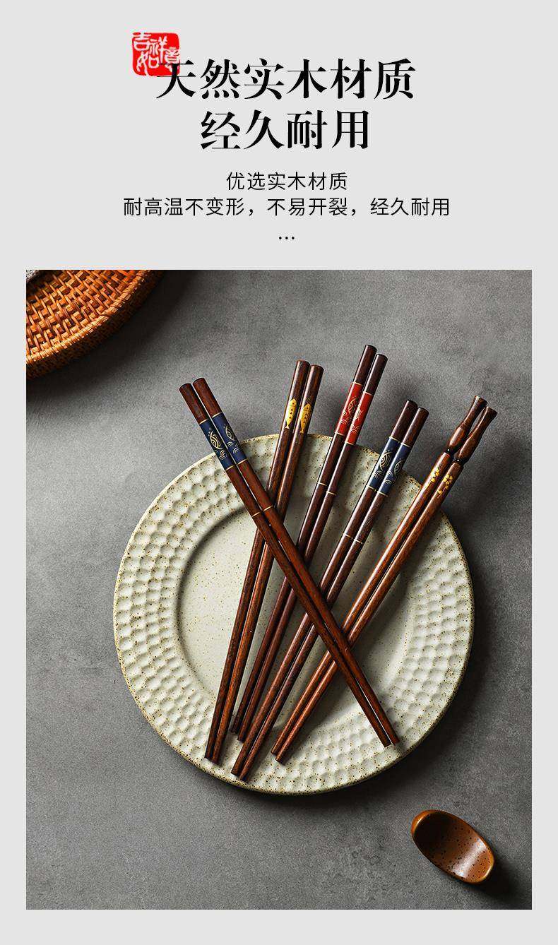 Red Sandalwood Chopsticks for Home Use, High-End Solid Wood Chopsticks, Non-Slip, Communal Chopsticks, One Chopstick Per Person