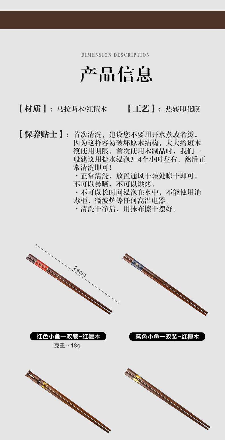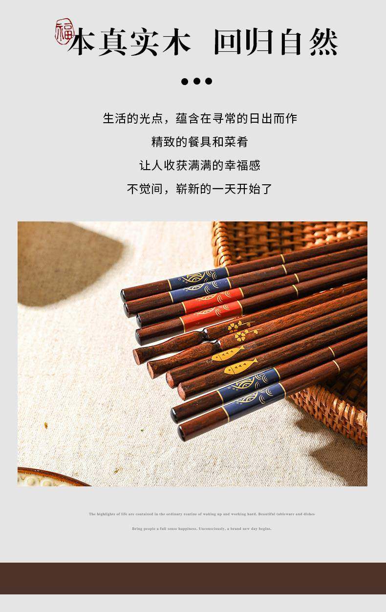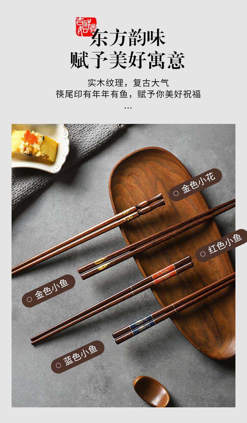 Red Sandalwood Chopsticks for Home Use, High-End Solid Wood Chopsticks, Non-Slip, Communal Chopsticks, One Chopstick Per Person