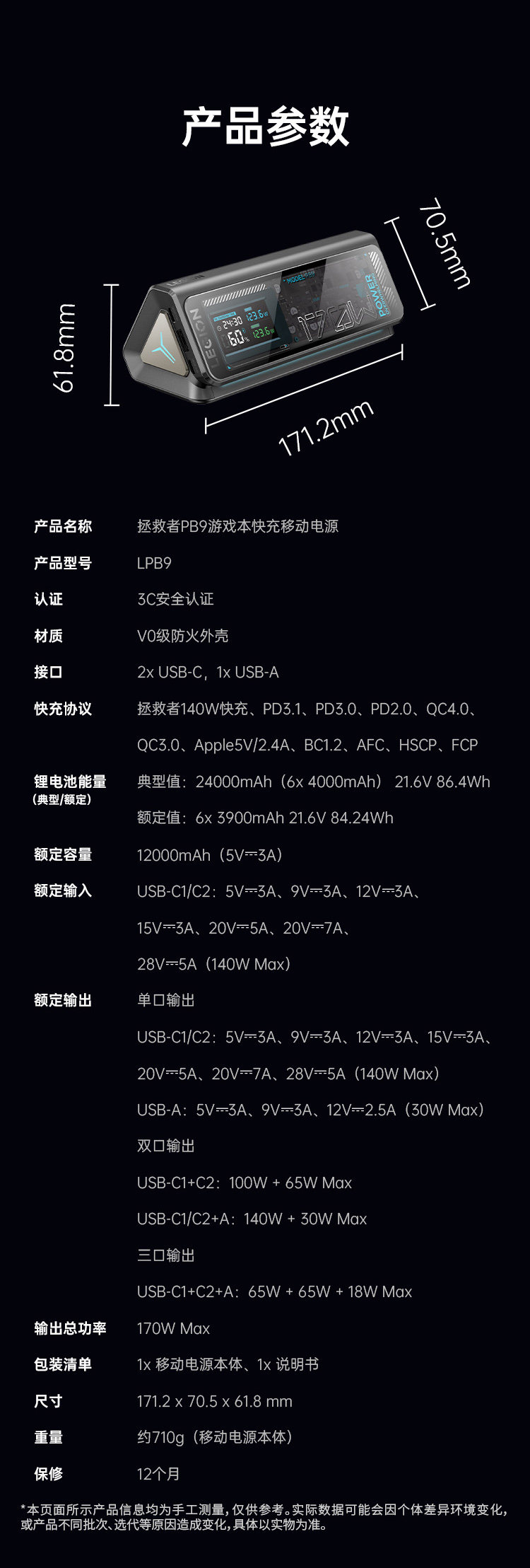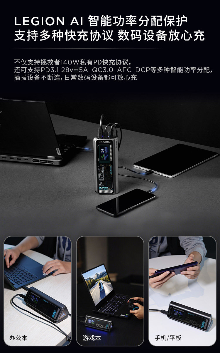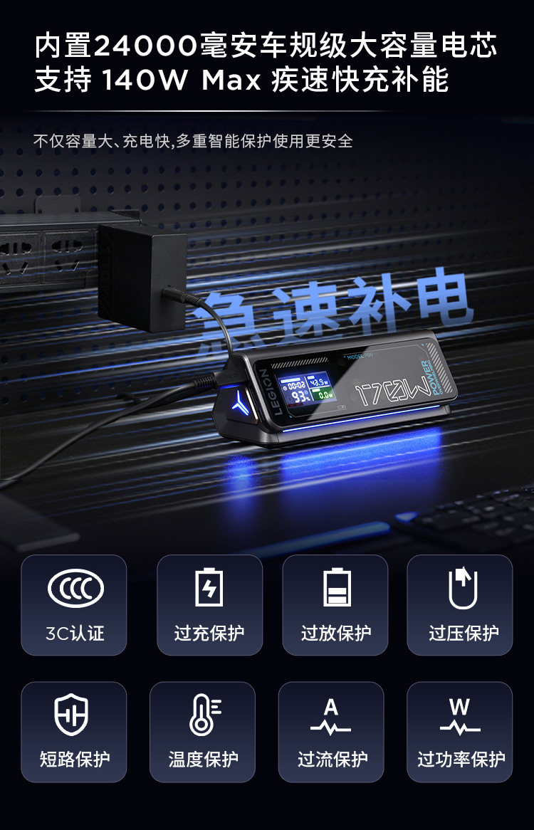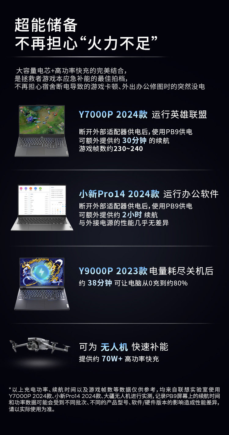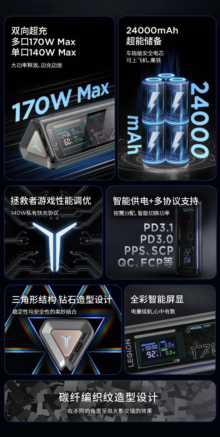 [National 3C Certification, Suitable for Air Travel] Lenovo Savior Pb9 Power Bank 24000Mah 170W Mobile Power Supply for Gaming Laptops, Two-Way Fast Charging, Suitable for Outdoor Use, Compatible with Huawei and Apple Laptops