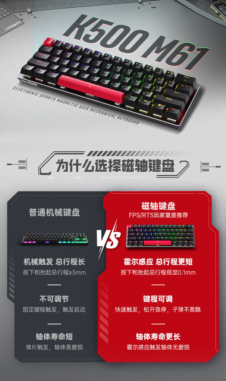 Mechanic K500 Magnetic Axis Wired Mechanical Keyboard Rgb Hot-Swappable Hall Trigger Pbt Keycap Customized E-Sports